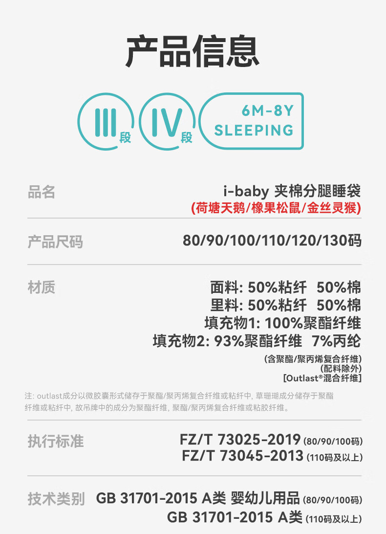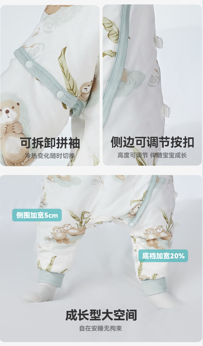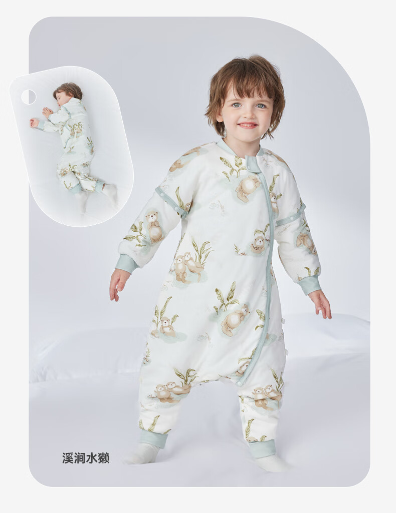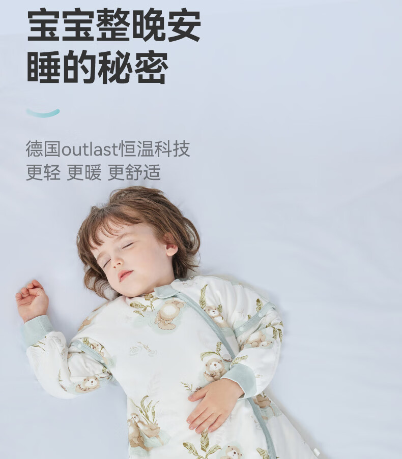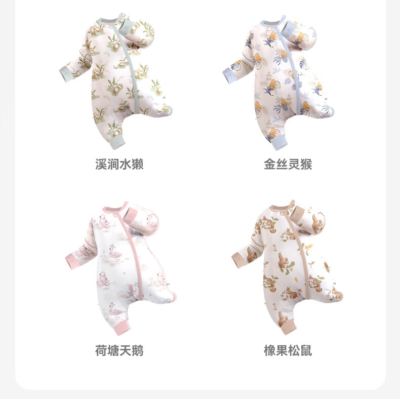 ibaby睡袋恒温婴儿睡袋宝宝分腿式连体睡衣抑菌防踢被【秋冬夹棉】DD 【暖冬夹棉120g】金丝灵猴(室温16-20℃) 100码【推荐身高90-100cm】