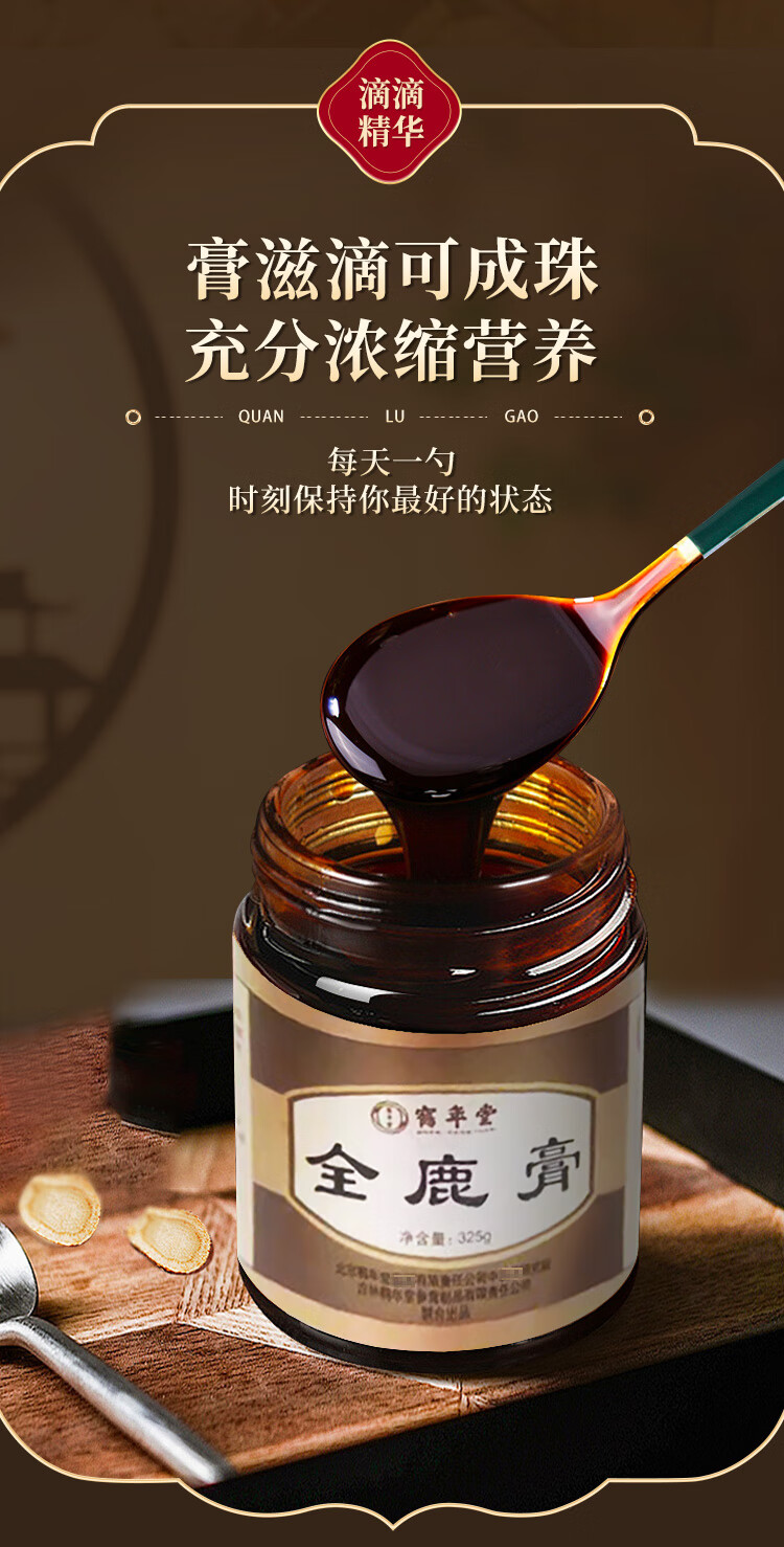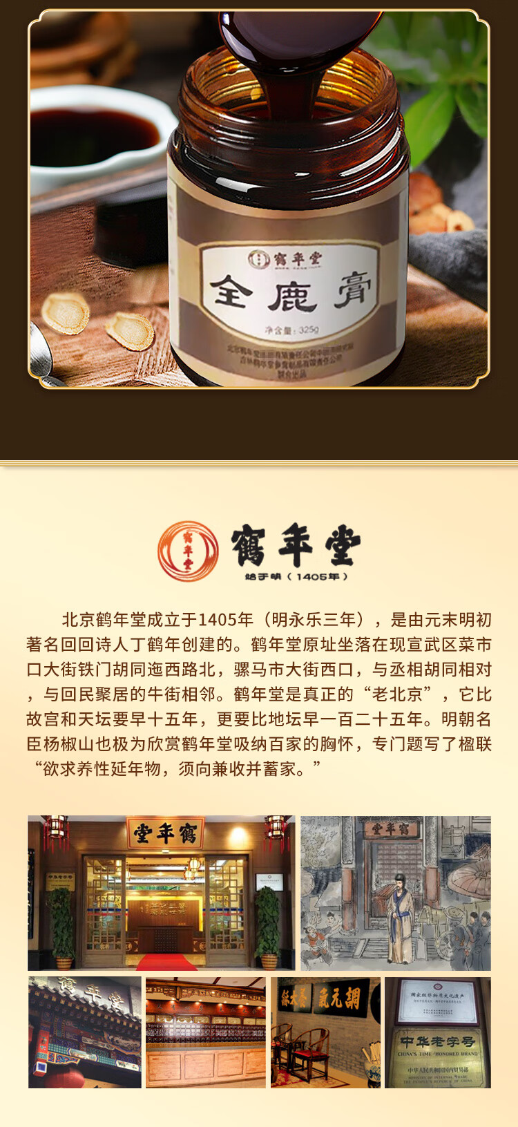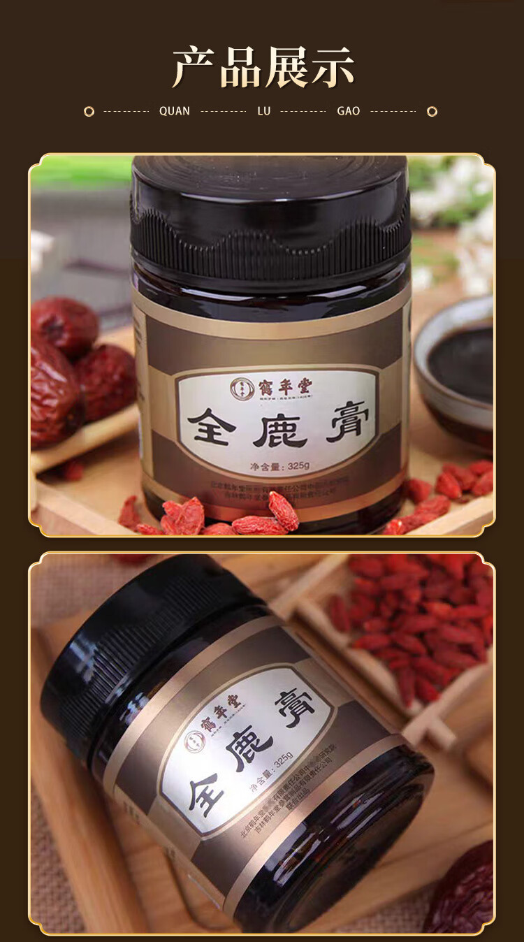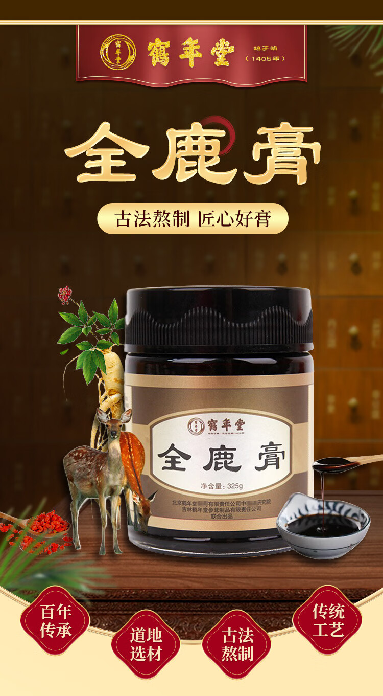 鹤年堂中华老字号全鹿膏非遗传统滋补膏方梅花鹿膏男士滋补养生营养礼品 【正品保障】 325g*1瓶 【男士滋补】