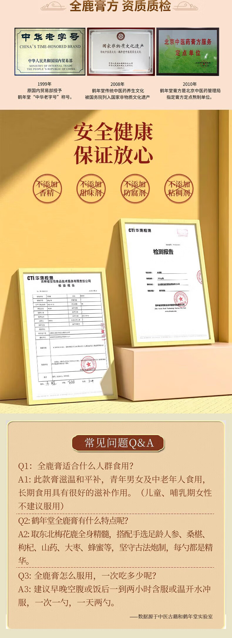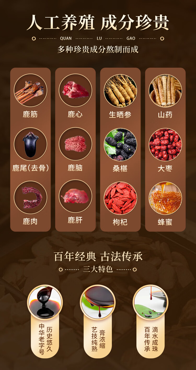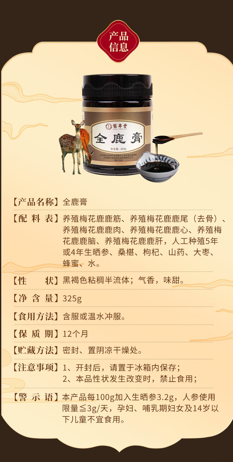 鹤年堂中华老字号全鹿膏非遗传统滋补膏方梅花鹿膏男士滋补养生营养礼品 【正品保障】 325g*1瓶 【男士滋补】