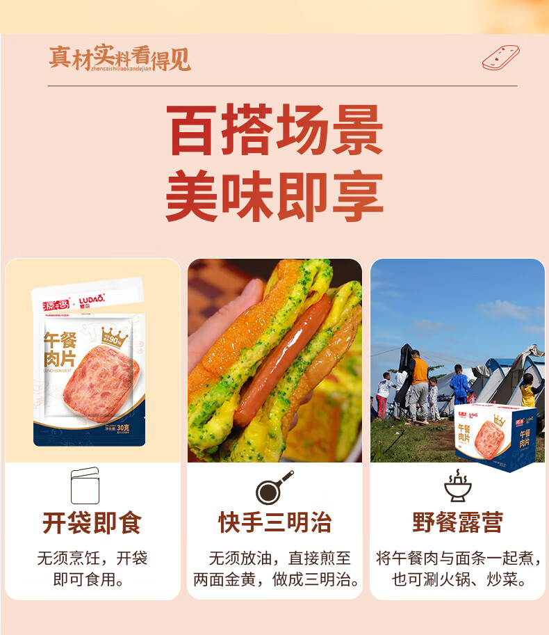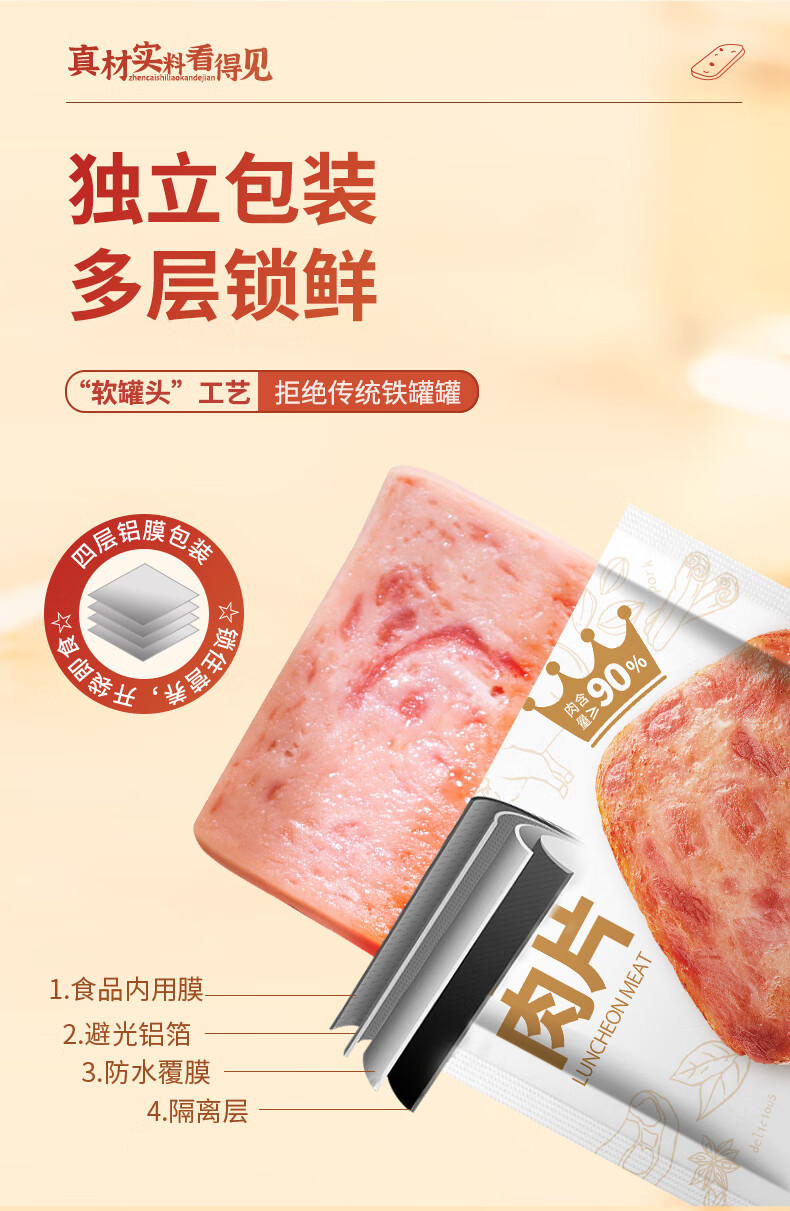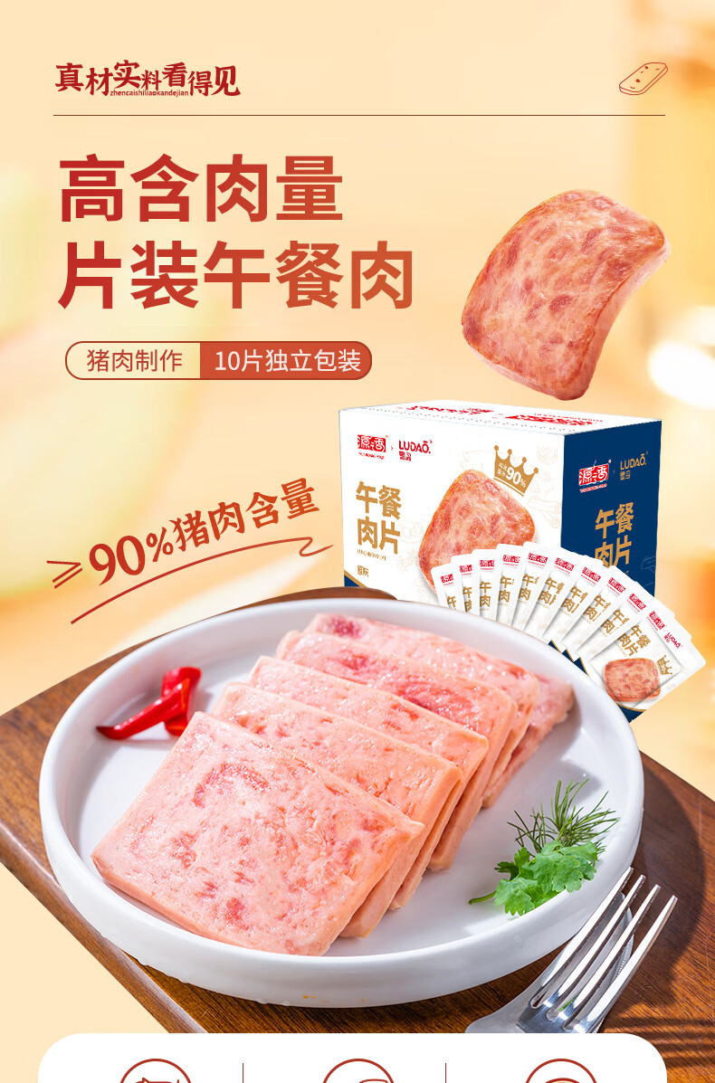 源之香午餐肉片装开袋即食猪肉儿童早餐火腿片肉罐头休闲零食独立包装 原味午餐肉300g*2盒【共20片】