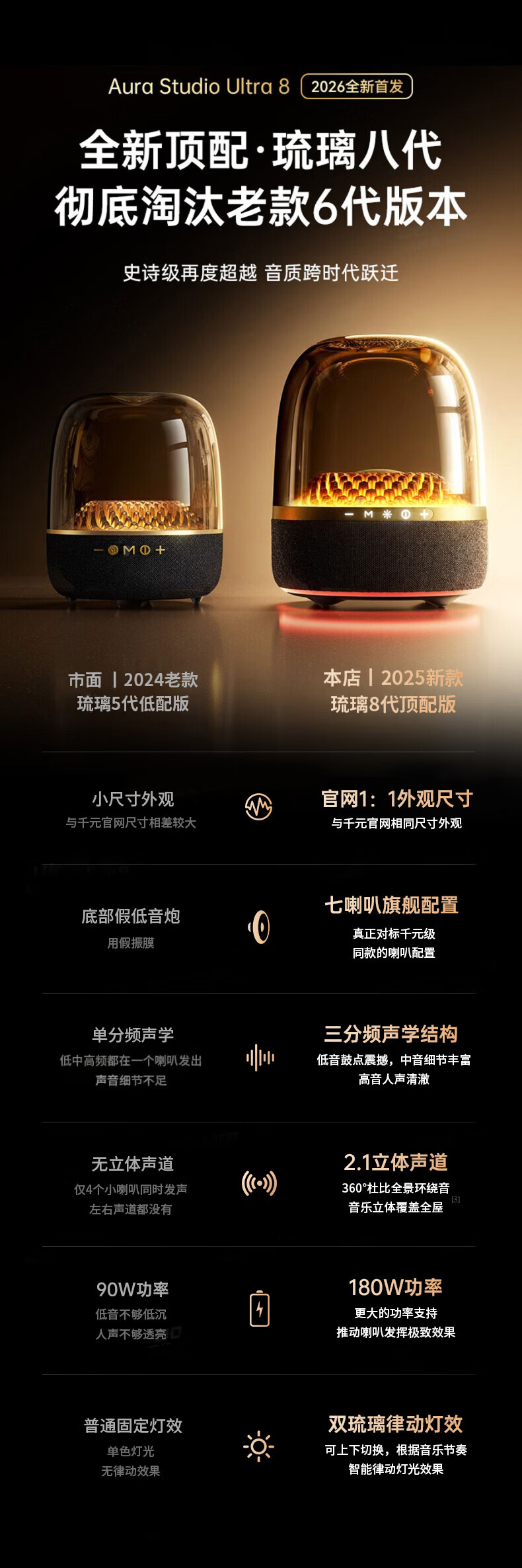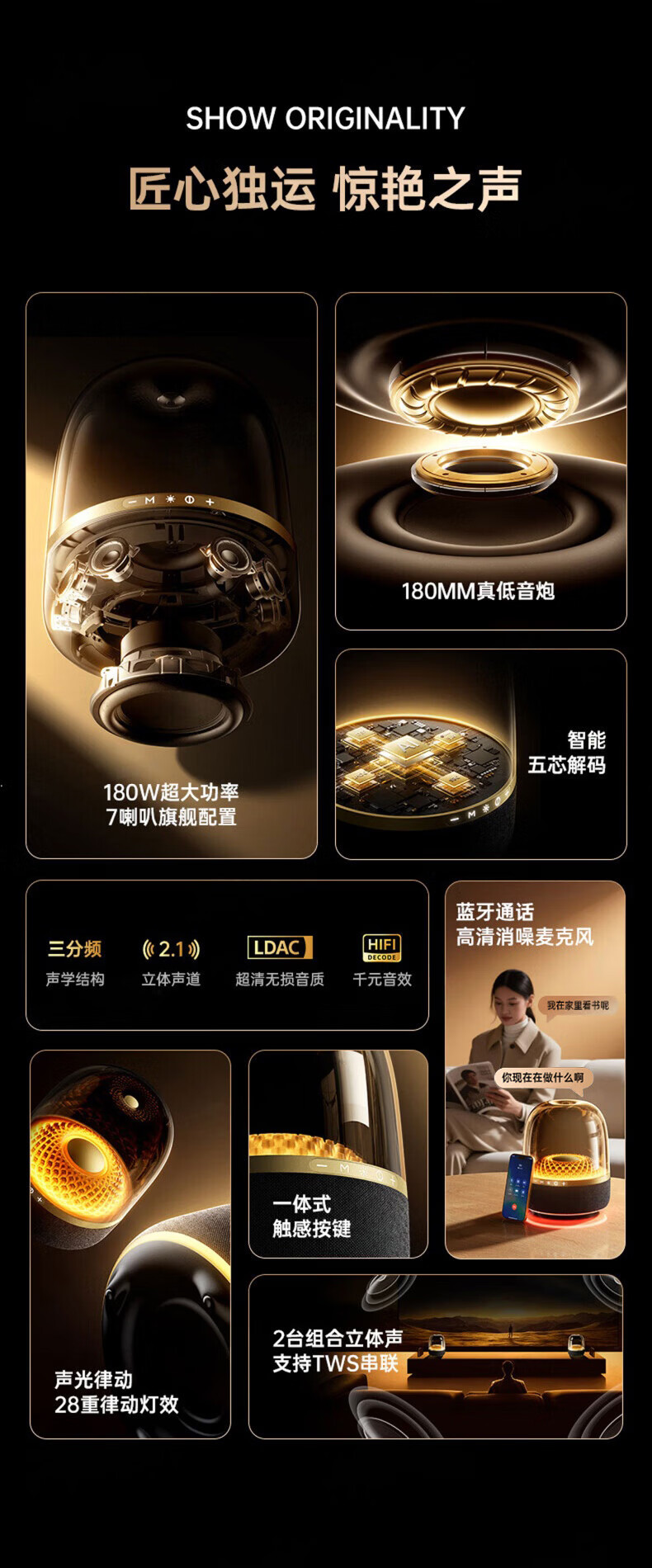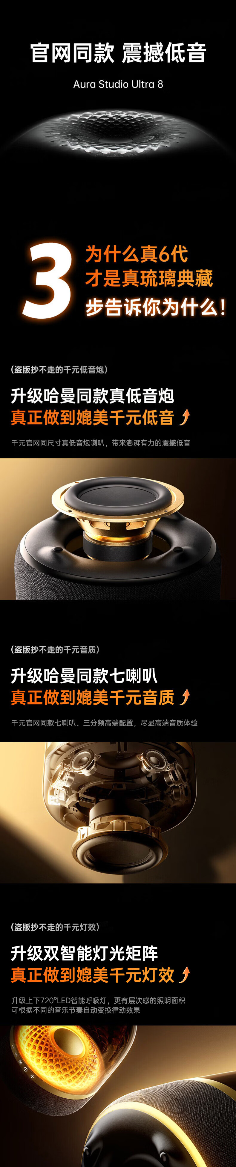 AEU【热销100W+|新款琉璃8代】大哈曼蓝牙音响琉璃6代音箱5代华强北低音炮家用桌面台式电脑 【黑金琉璃|经典5代】Pro Max版 律动灯效+支持试听+全国联保