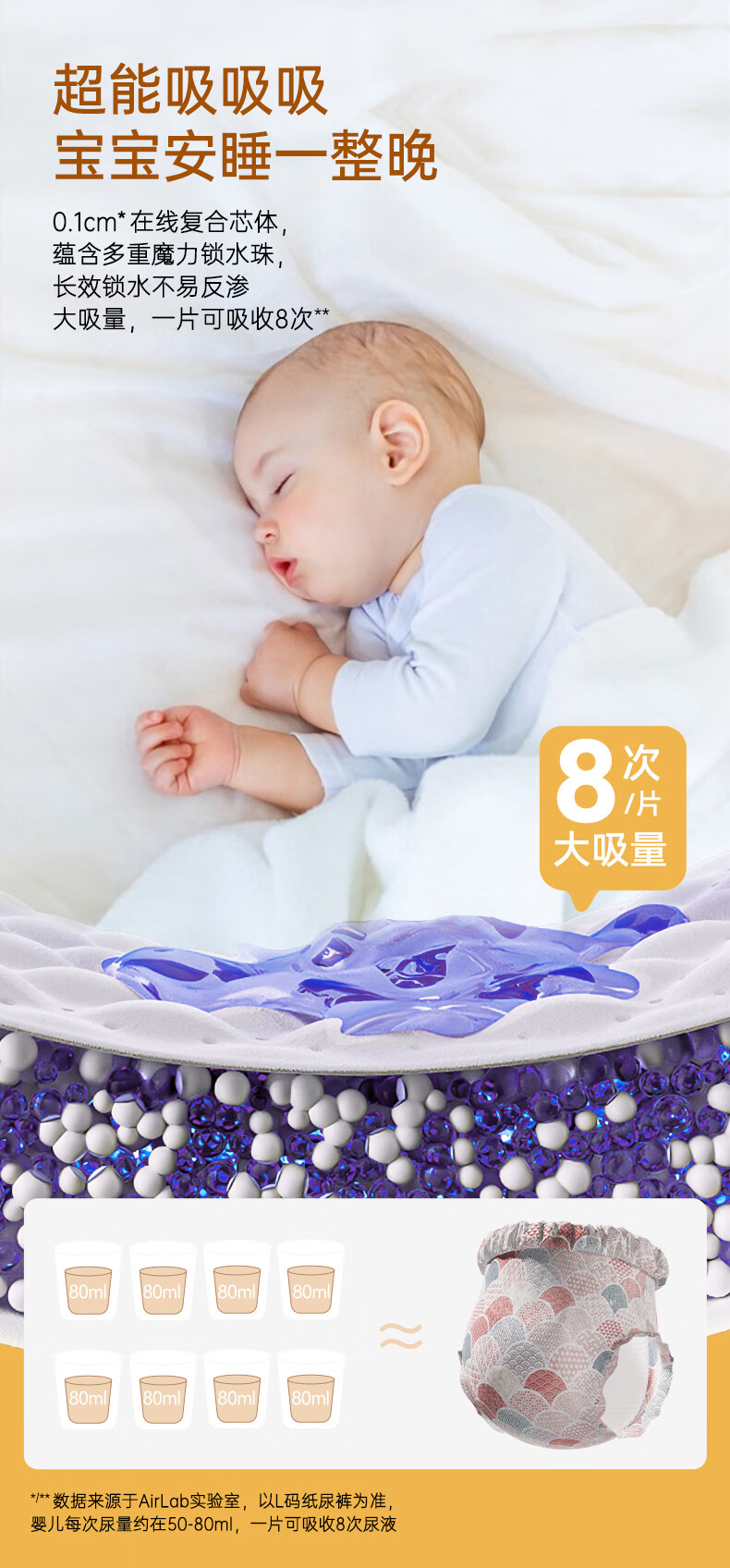 成长卫士云柔纤薄学步裤 婴儿拉拉裤 超薄透气干爽男女宝宝新生儿尿不湿 XXL码60片 (22-28斤) 拉拉裤