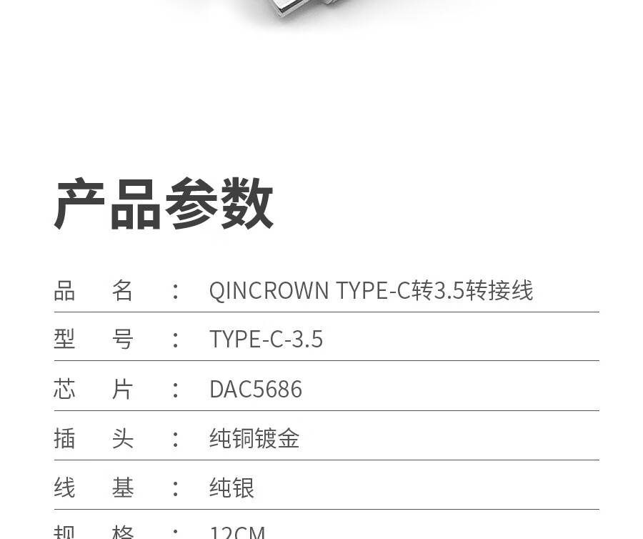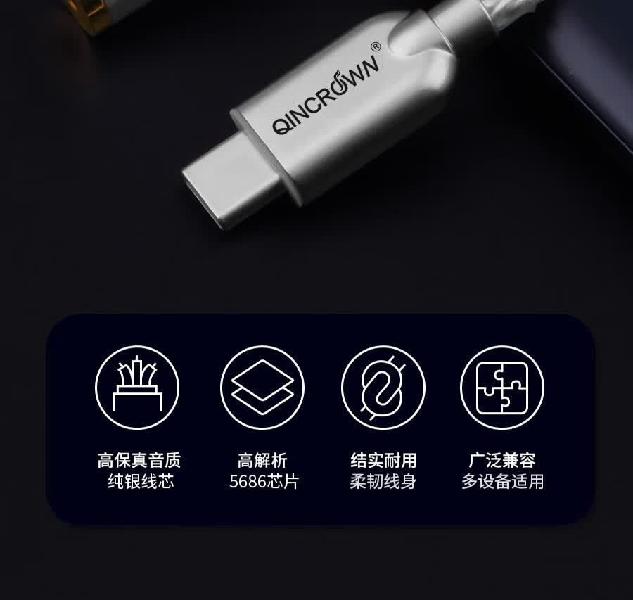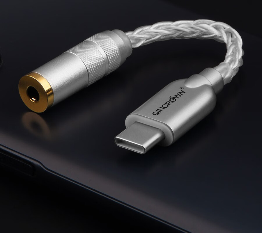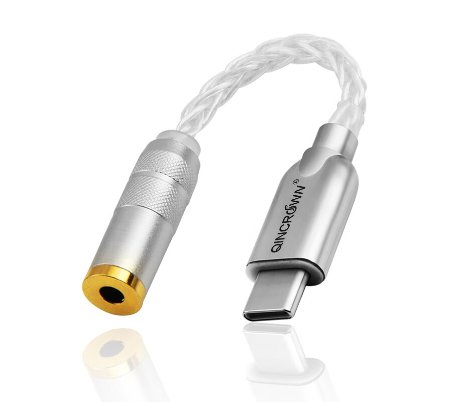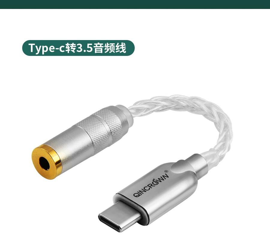 琴冠QINCROWN Type-C耳机转接头3.5mm解码线5686小尾巴适用华为安卓vivo苹果15/16/17手机纯银转接线 旗舰款 Type-C转3.5(DAC9281) 0.12米