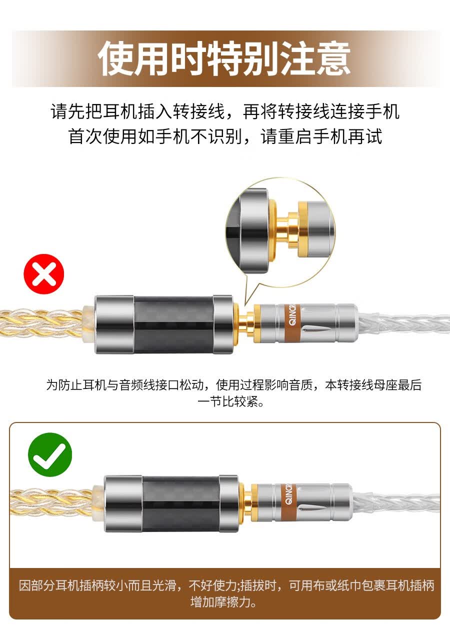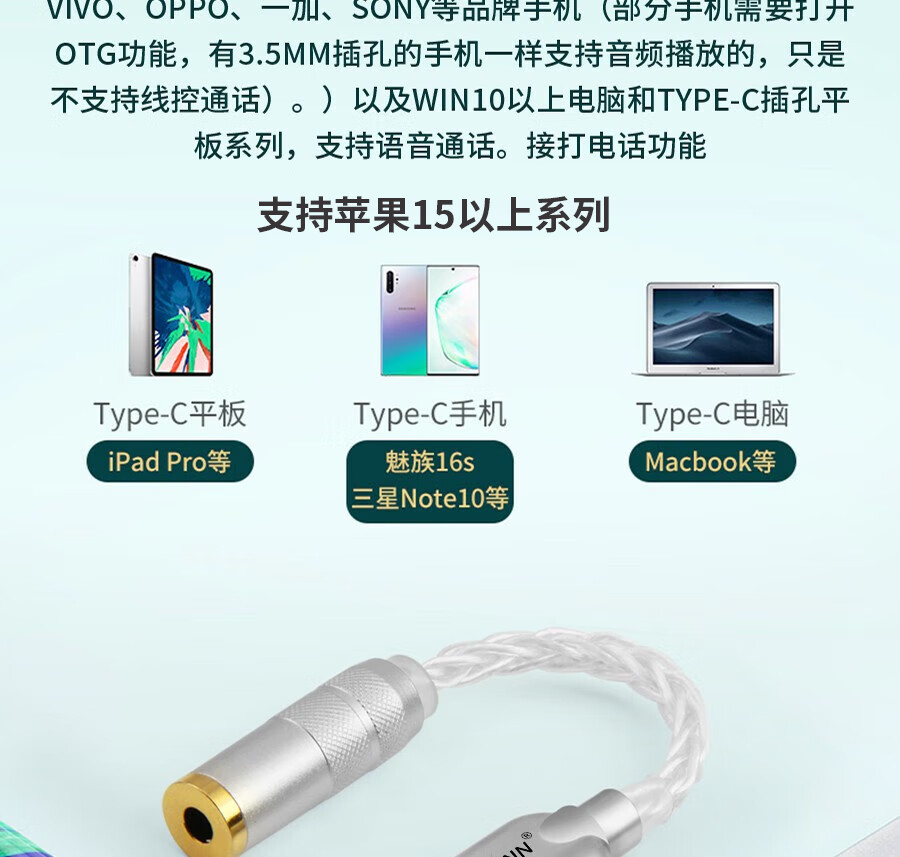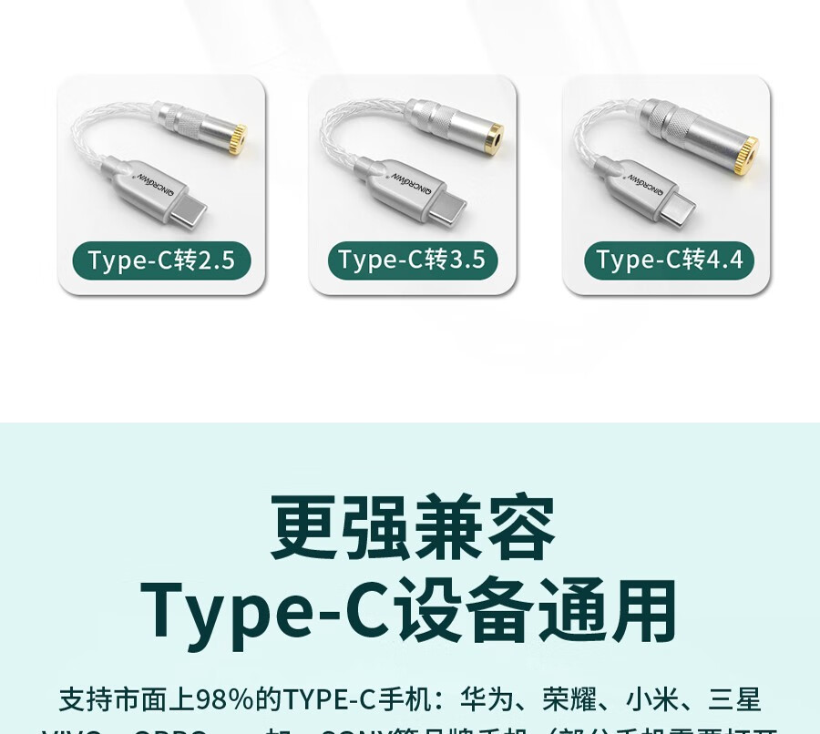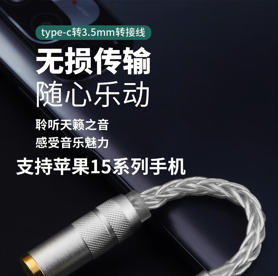 琴冠QINCROWN Type-C耳机转接头3.5mm解码线5686小尾巴适用华为安卓vivo苹果15/16/17手机纯银转接线 旗舰款 Type-C转3.5(DAC9281) 0.12米