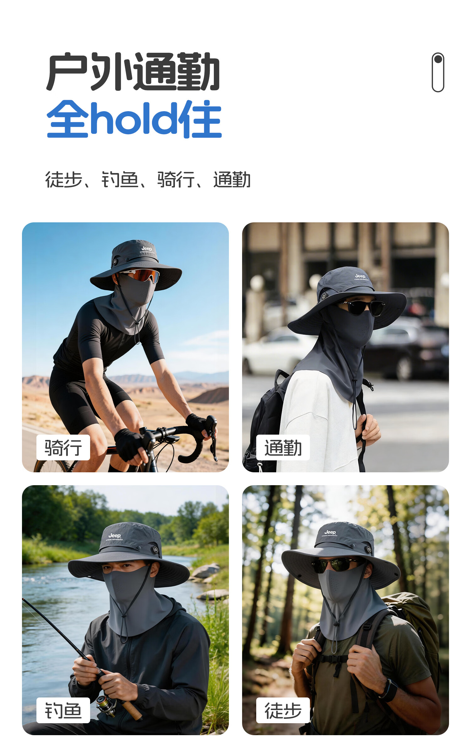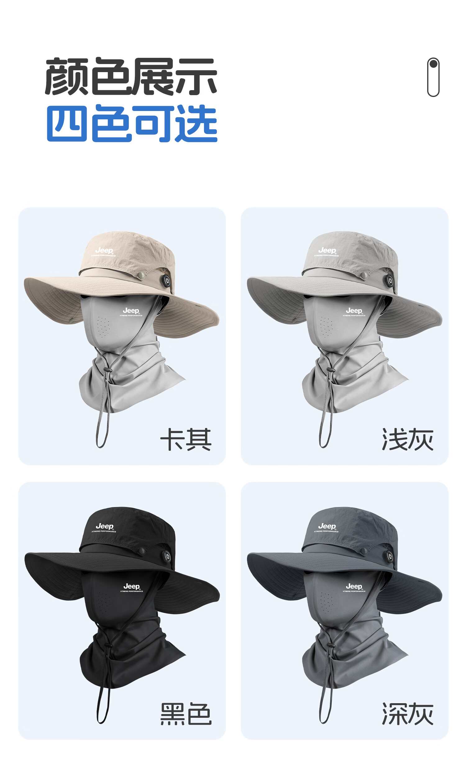 JEEP帽子男士夏季户外防紫外线渔夫帽遮阳帽男登山帽钓鱼防晒帽太阳帽 黑色两件套【帽子+立体面罩】 均码【头围适用55-63CM】