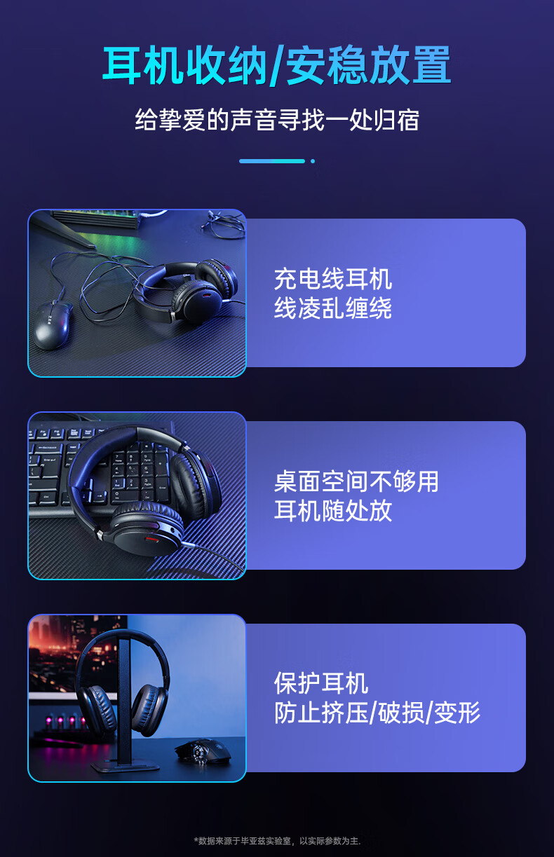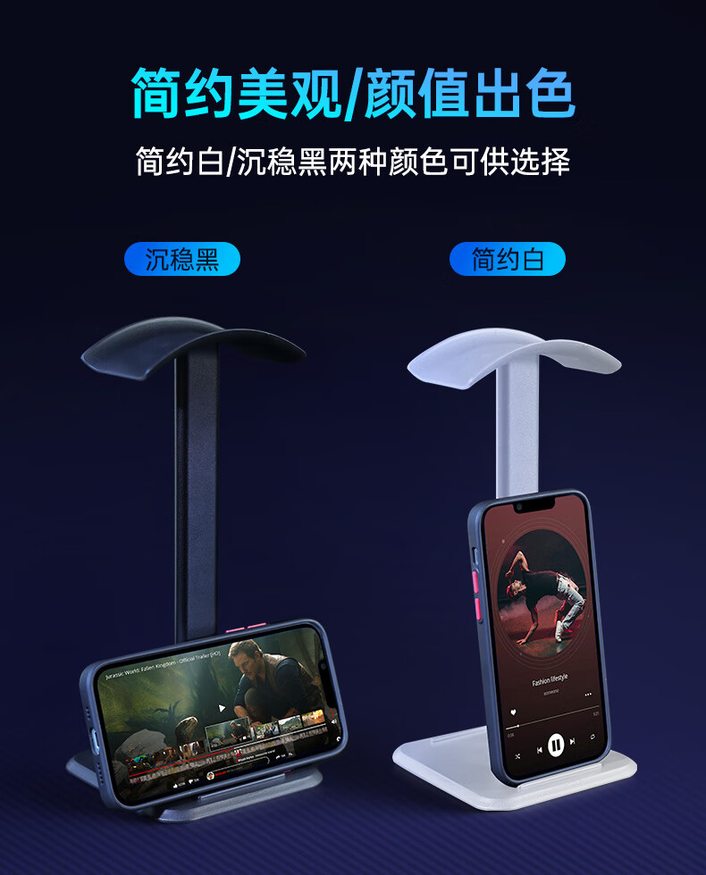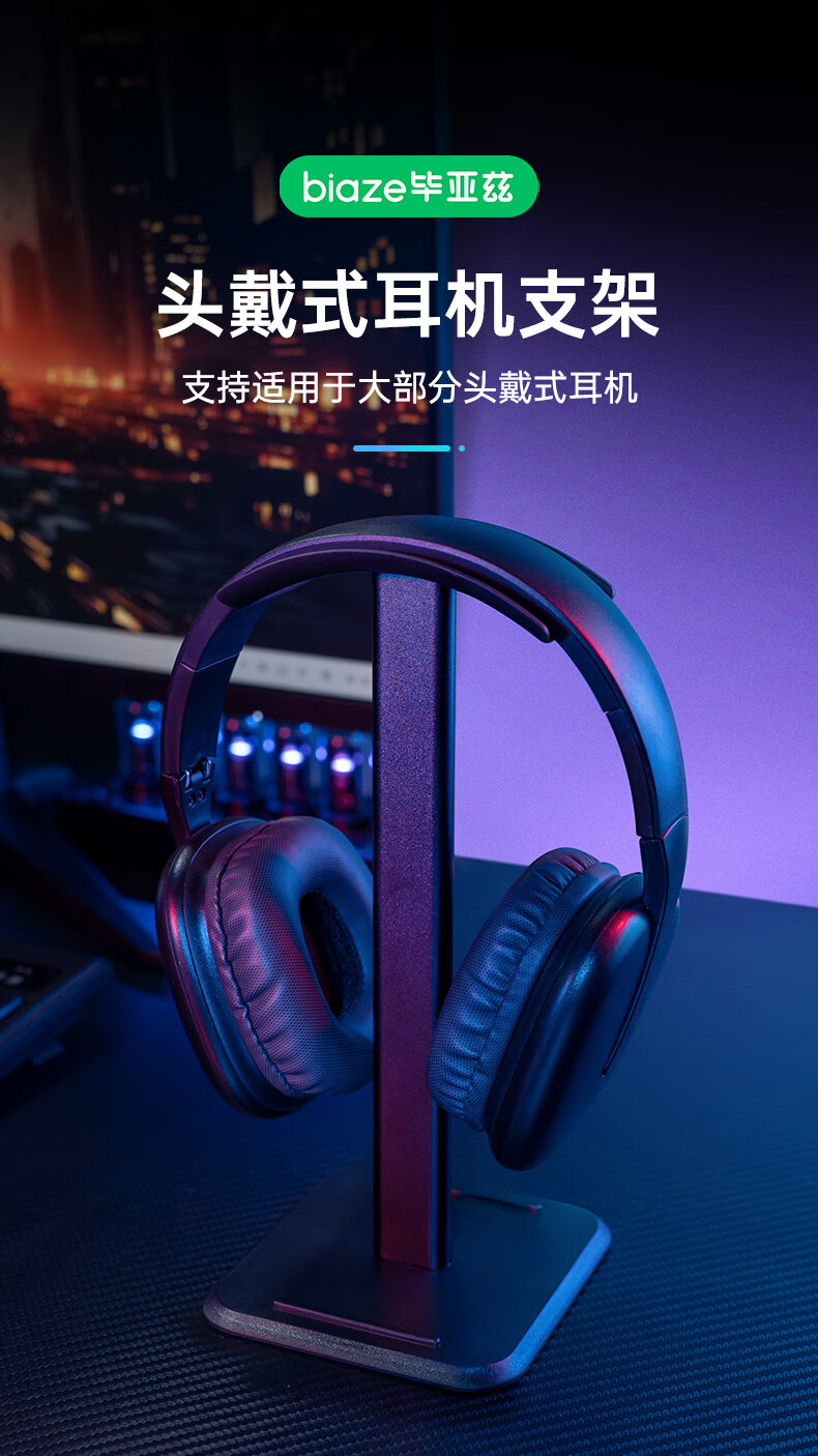 毕亚兹头戴式耳机支架可放手机 耳麦挂架展示架 游戏耳机托适用苹果索尼bose漫步者雷蛇放置架 EJ18-白色