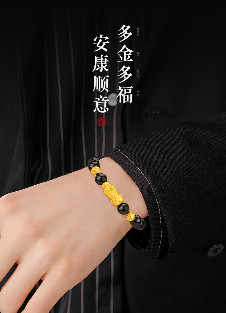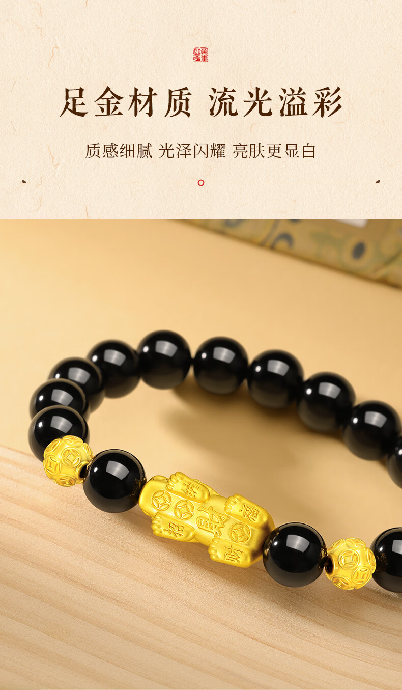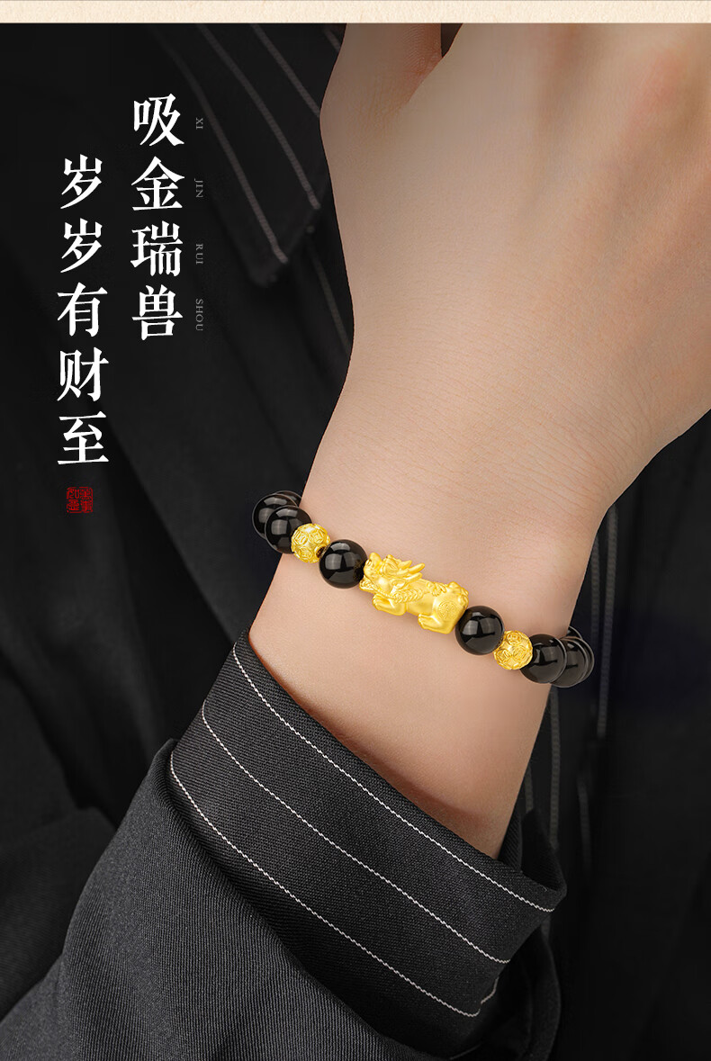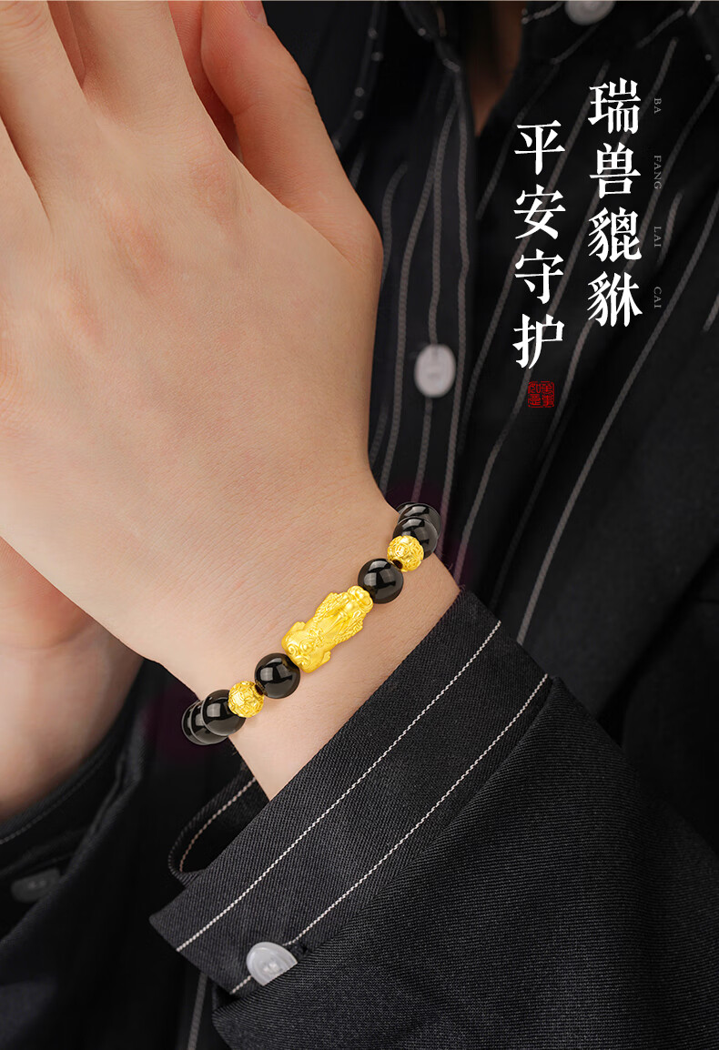 中国黄金貔貅黄金手链男足金转运珠手串圣诞节礼物送老公男友爸爸父亲 貔貅转运金珠黄金手串+尊享男士礼盒-1.30