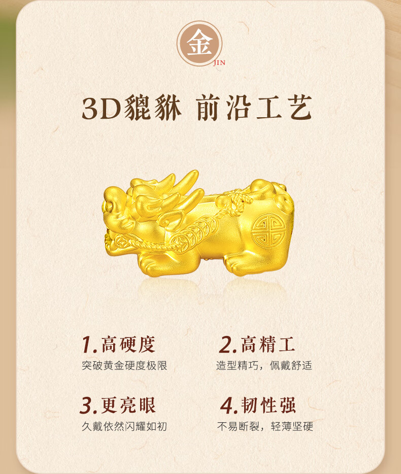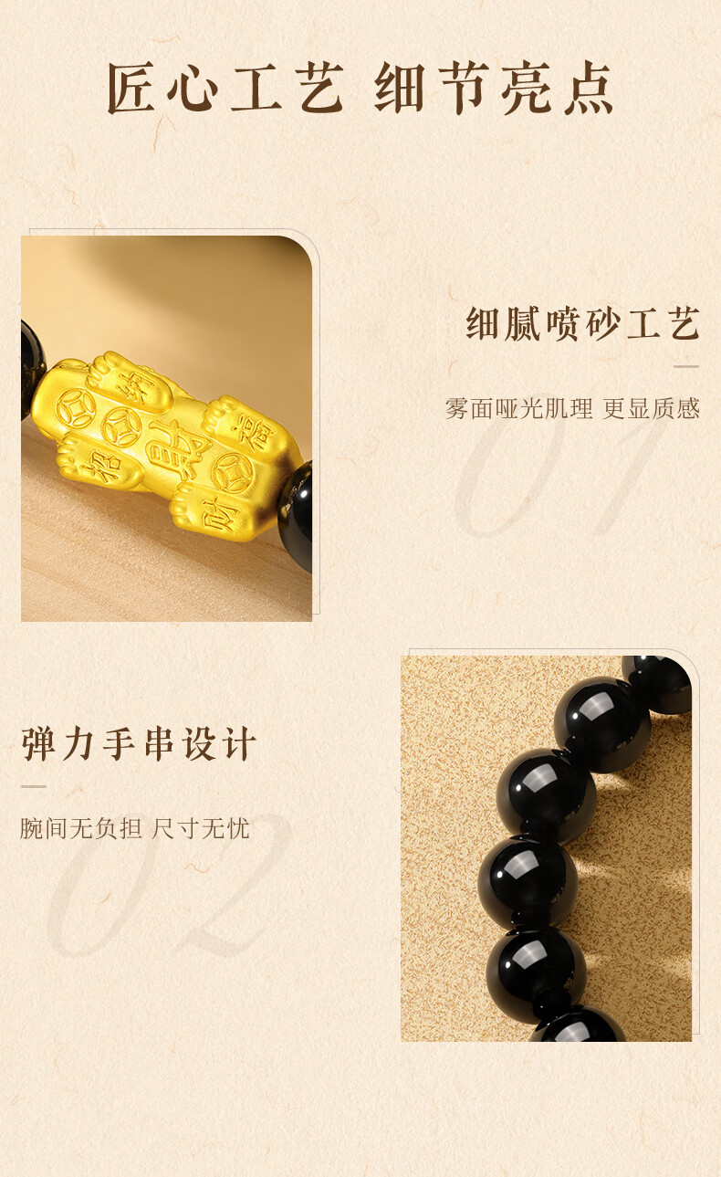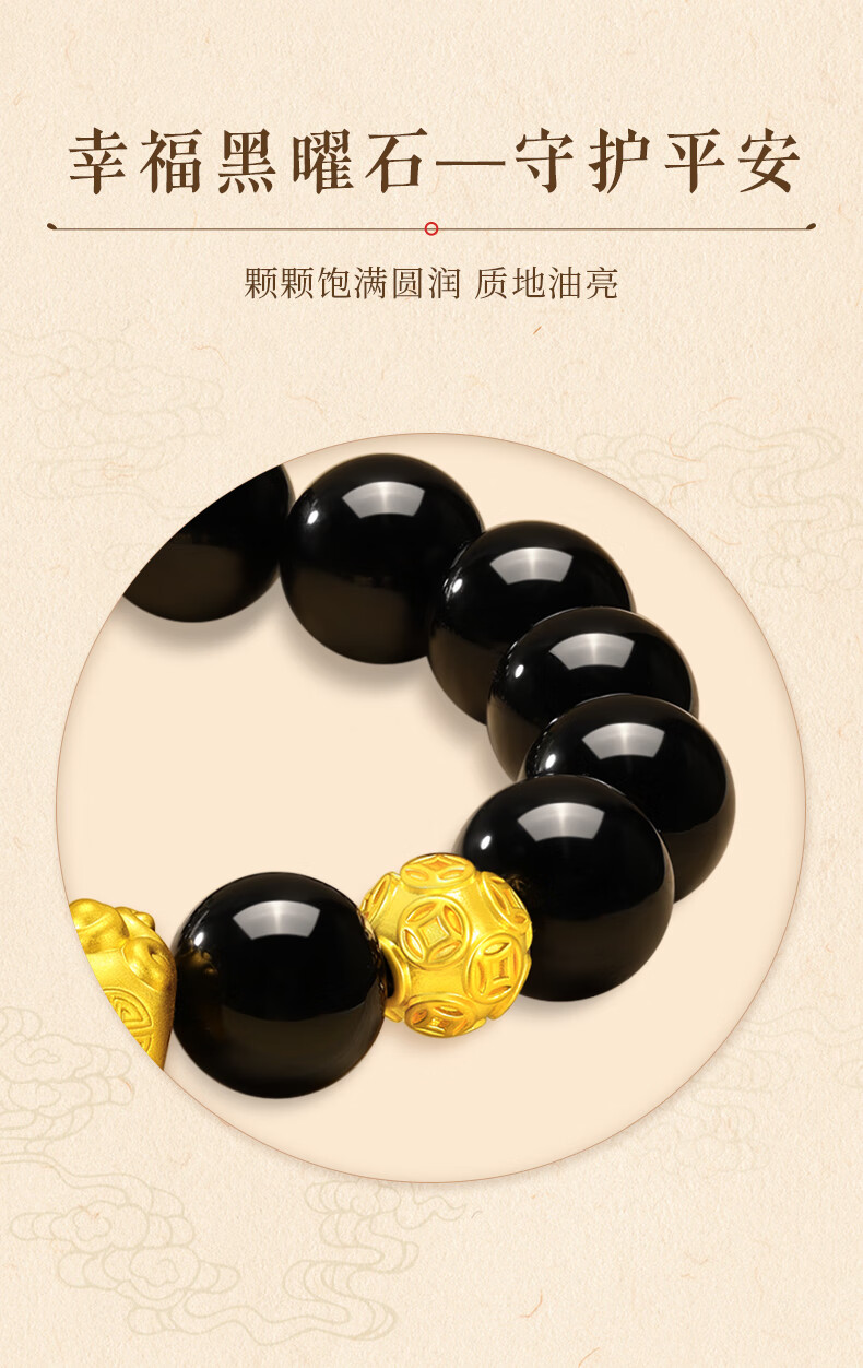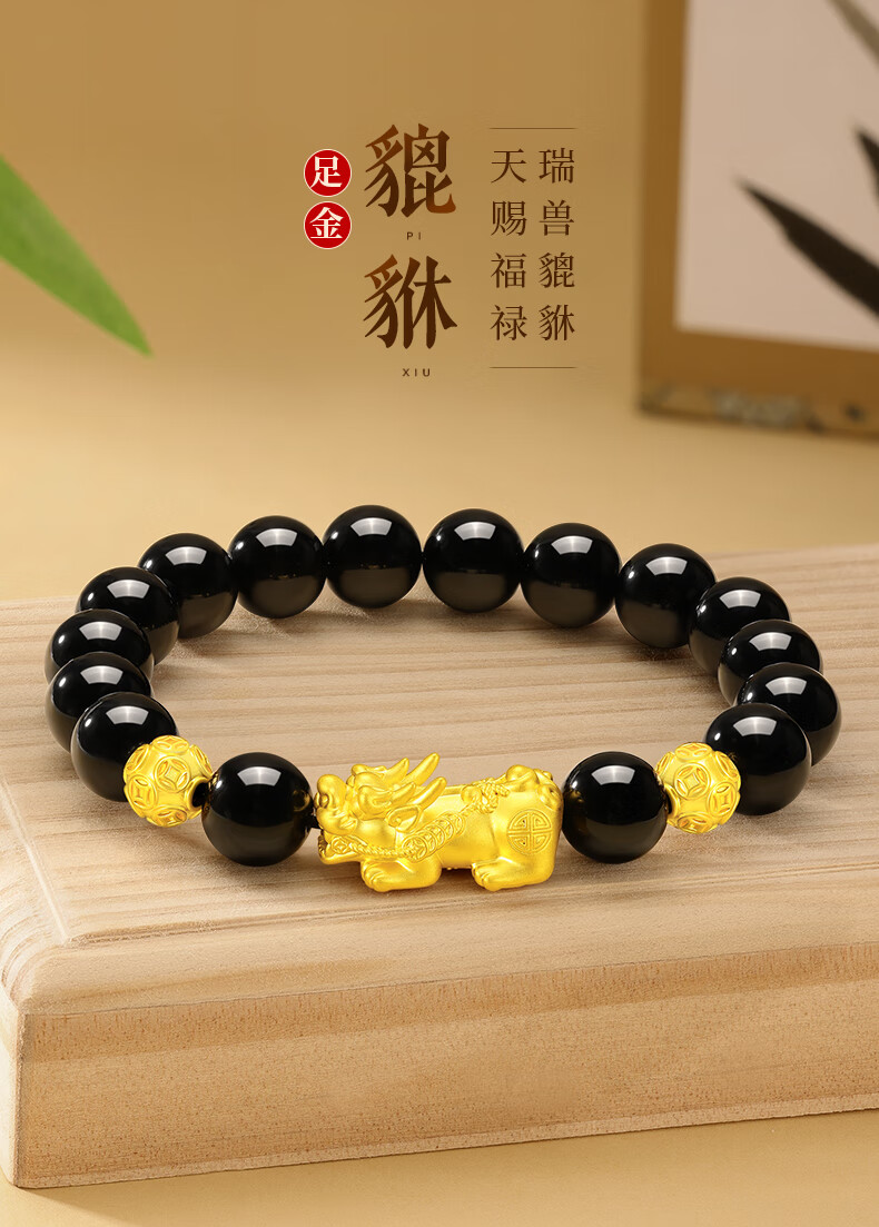 中国黄金貔貅黄金手链男足金转运珠手串圣诞节礼物送老公男友爸爸父亲 貔貅转运金珠黄金手串+尊享男士礼盒-1.30