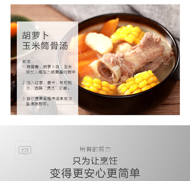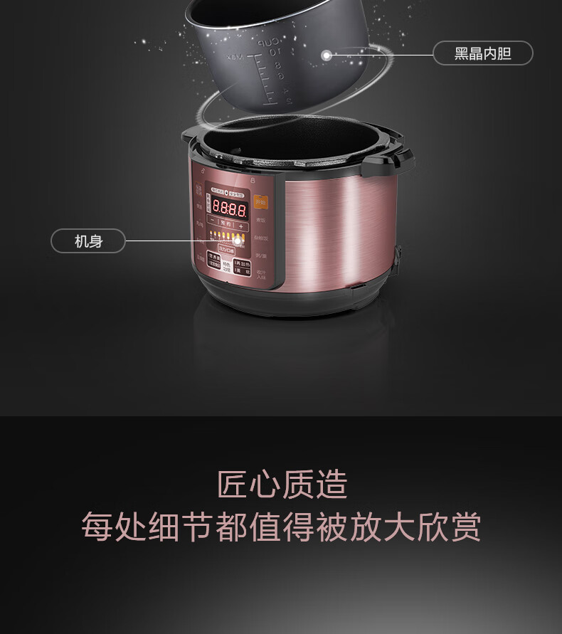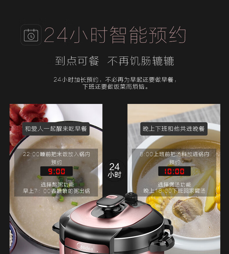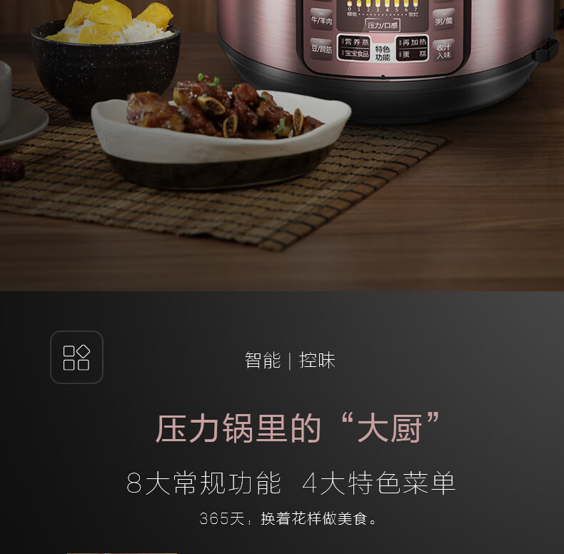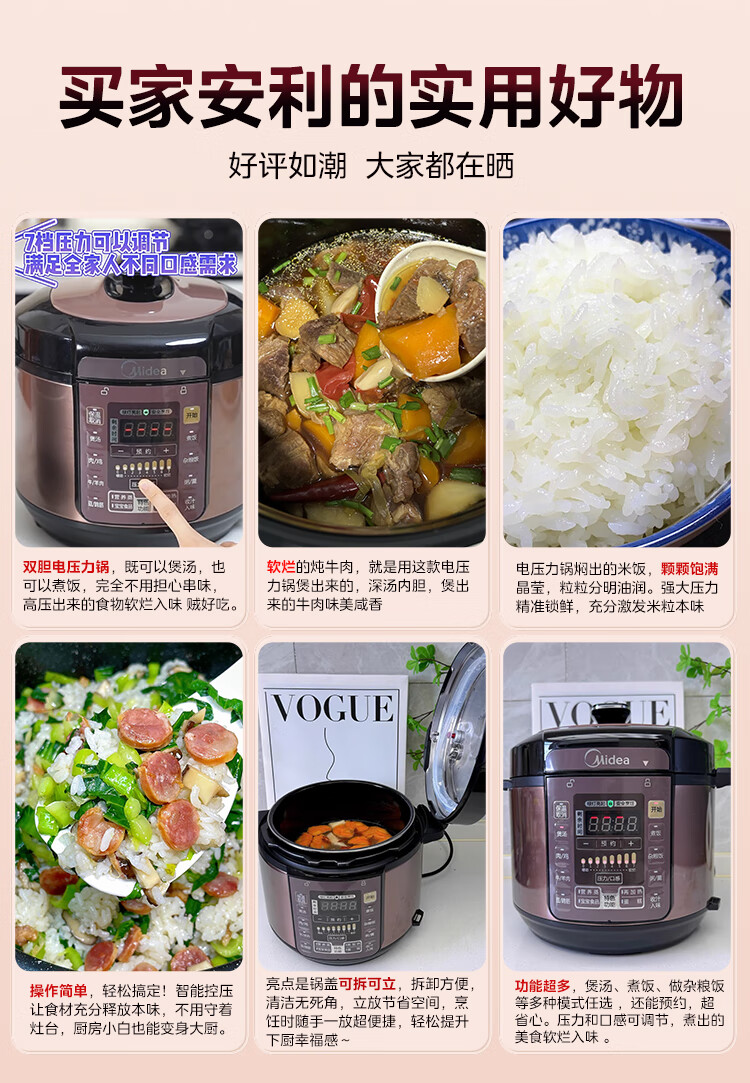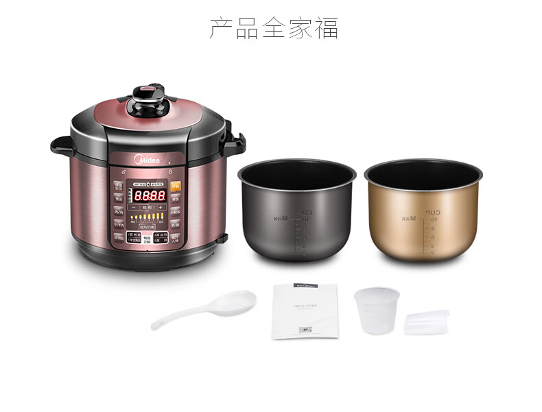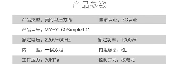 美的(Midea)智能电压力锅双胆 家用高压锅智能预约匀火速热压力锅全自动大容量高压电饭锅 【6升容量】双内胆YL60Simple101 6L