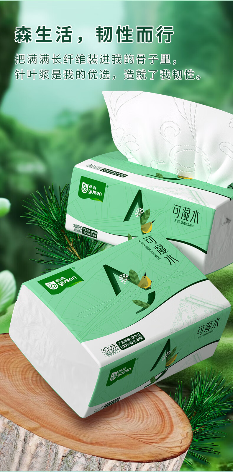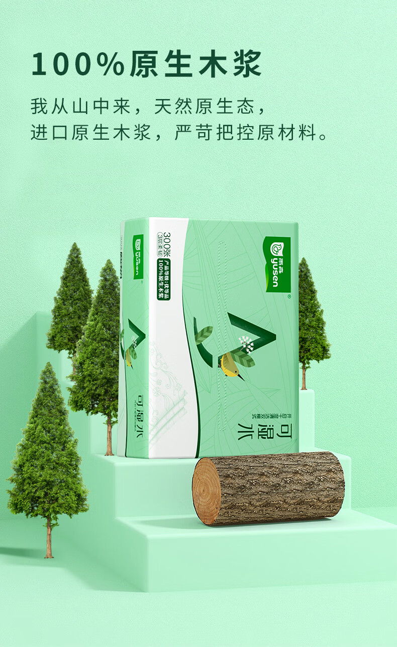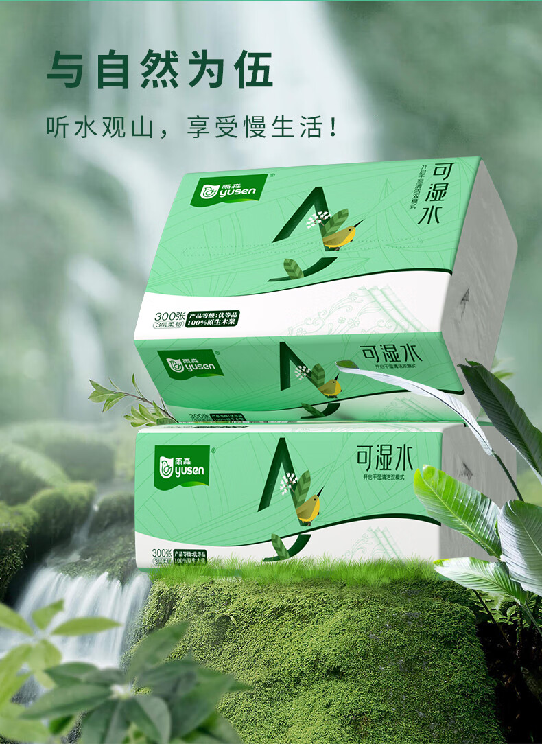 雨森可湿水抽纸家用纸巾100%原生木浆干湿两用卫生纸纸抽整箱 3层 100抽*20包 【190*135mm】