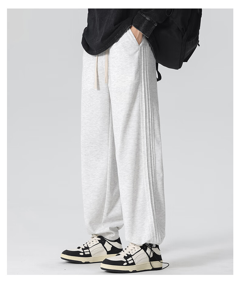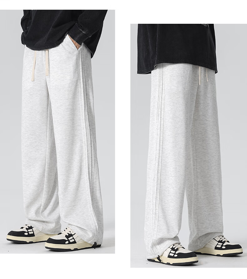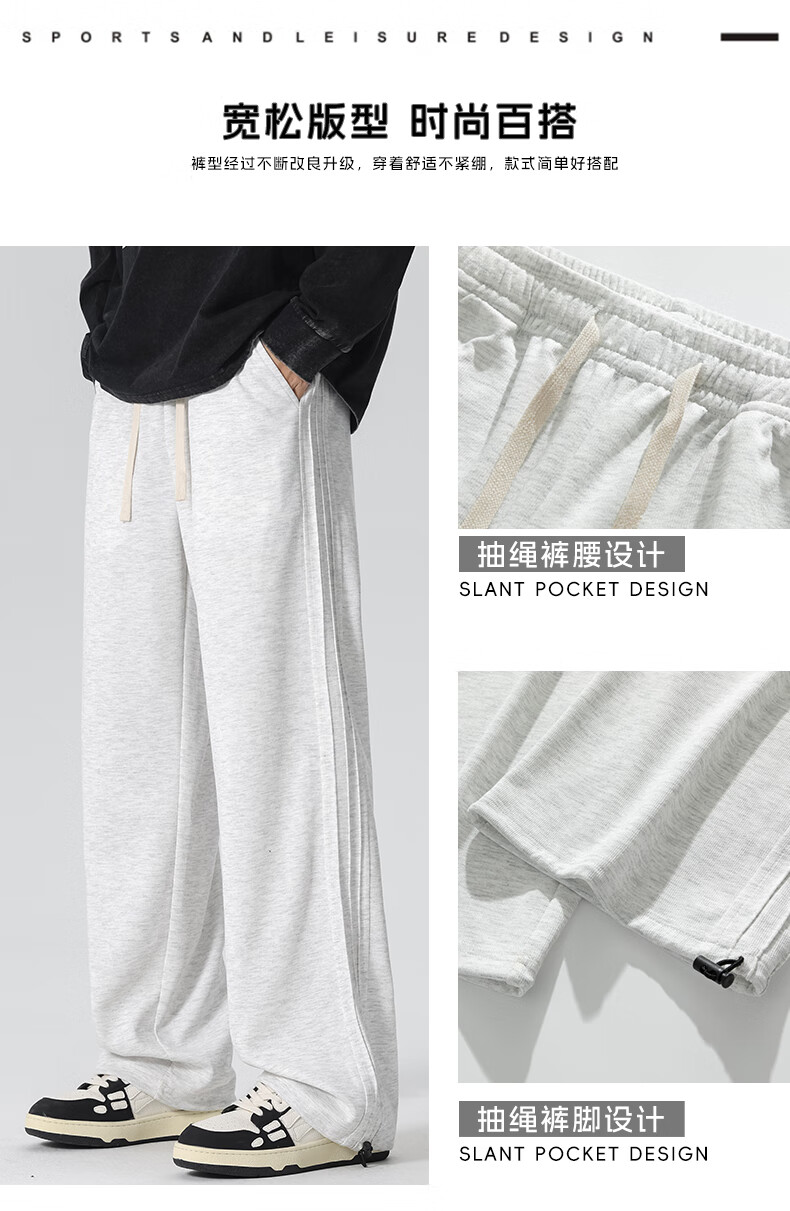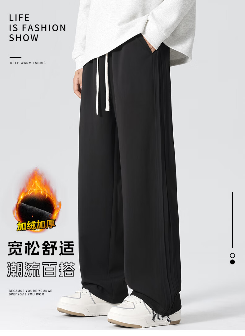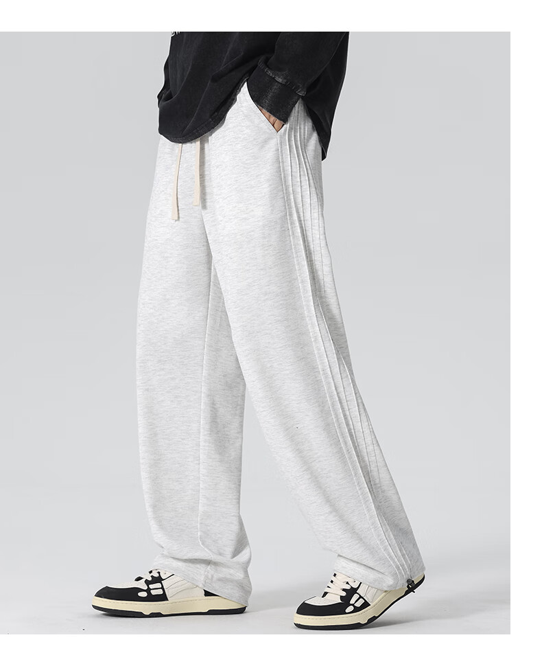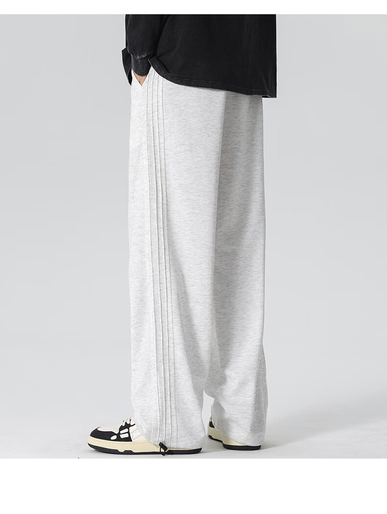 HIPANDA你好熊猫休闲裤男2025秋冬新款运动休闲加绒保暖宽松直筒长裤子男 浅灰-加绒 M