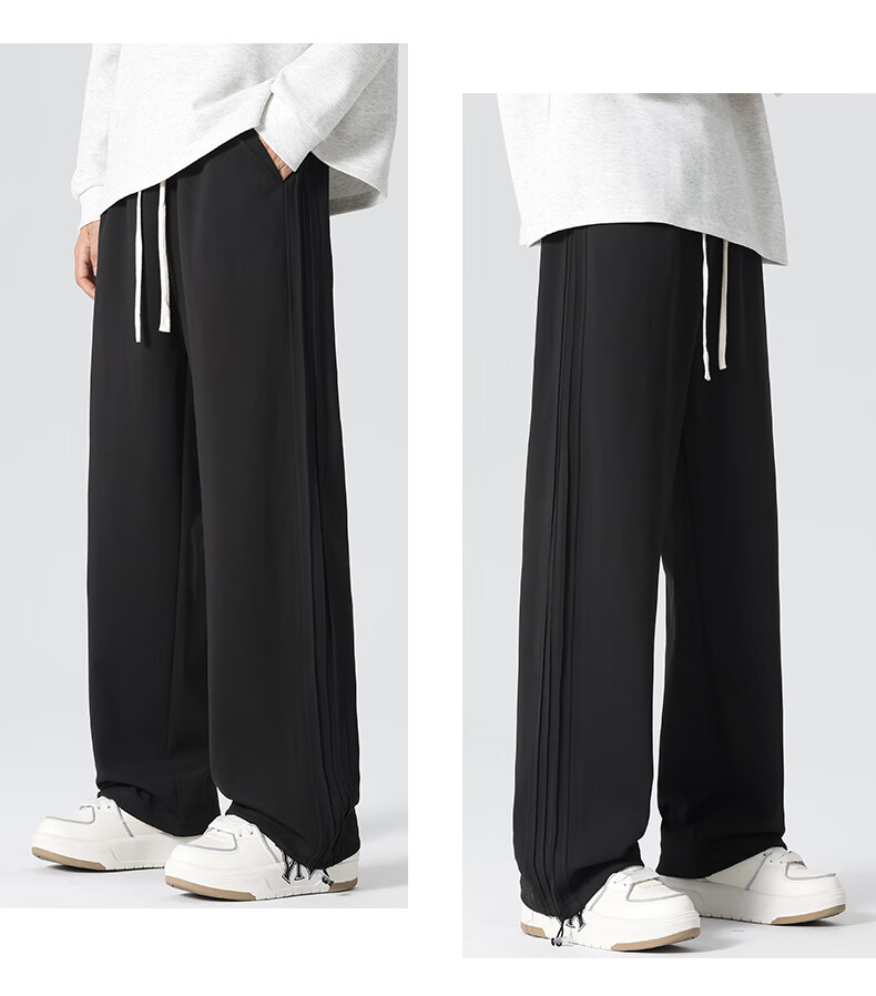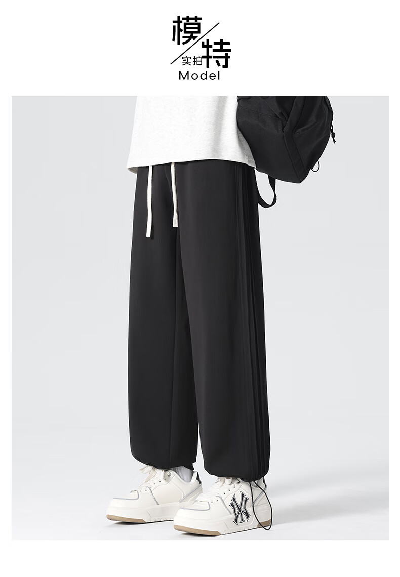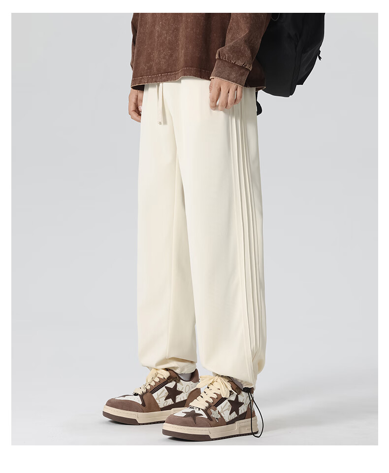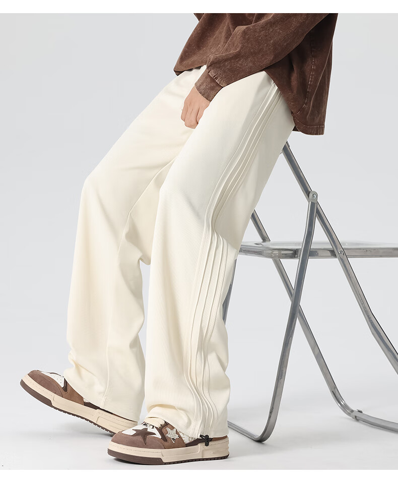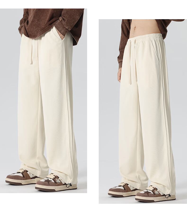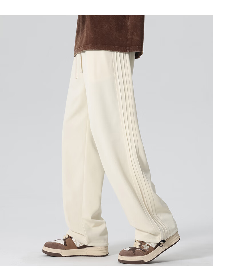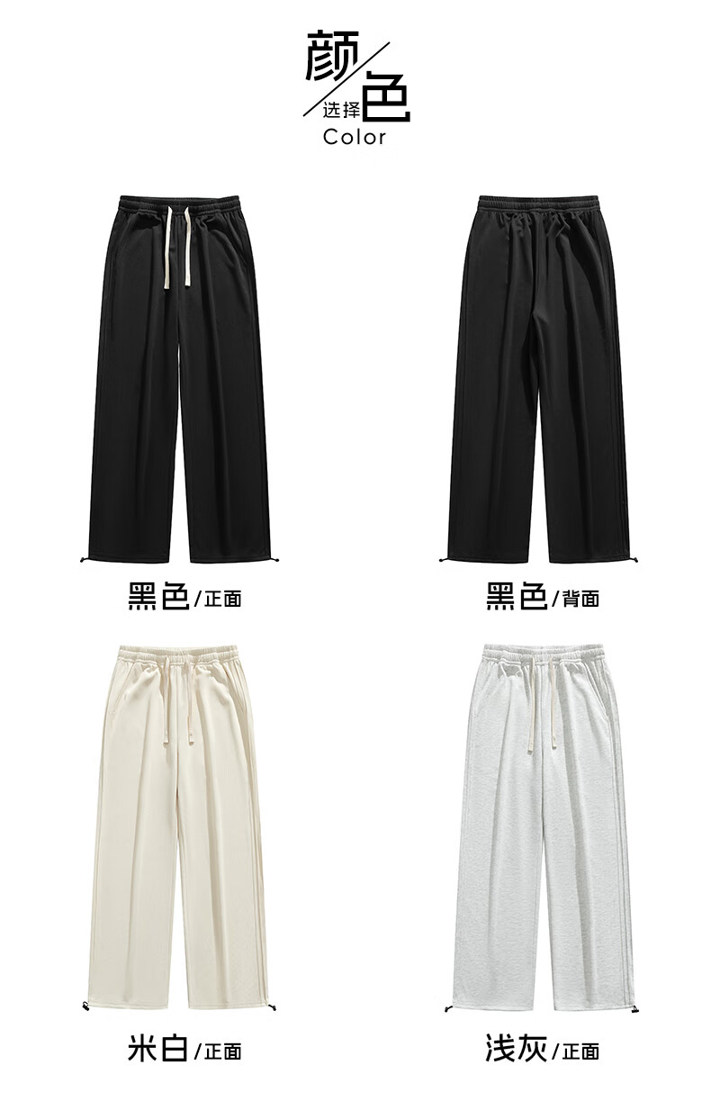 HIPANDA你好熊猫休闲裤男2025秋冬新款运动休闲加绒保暖宽松直筒长裤子男 浅灰-加绒 M