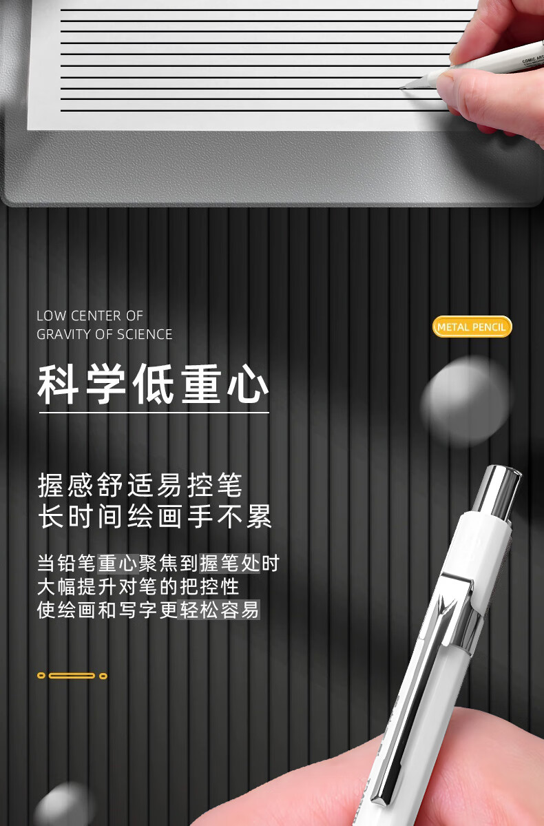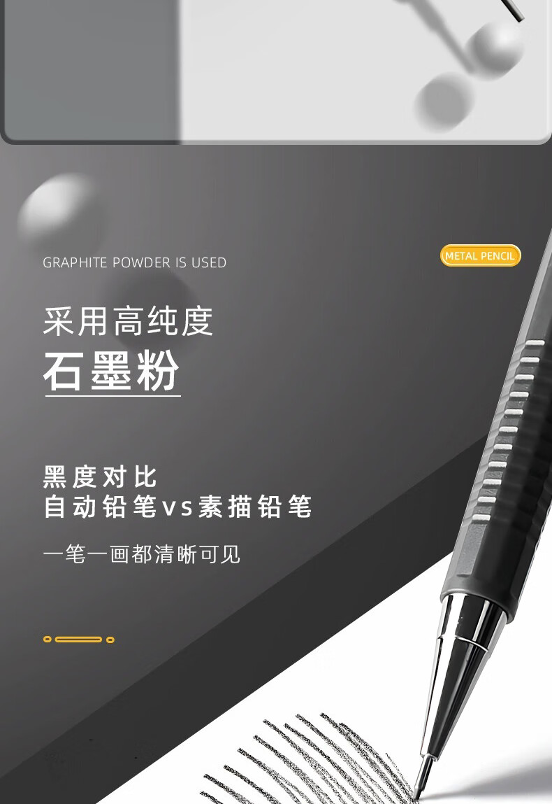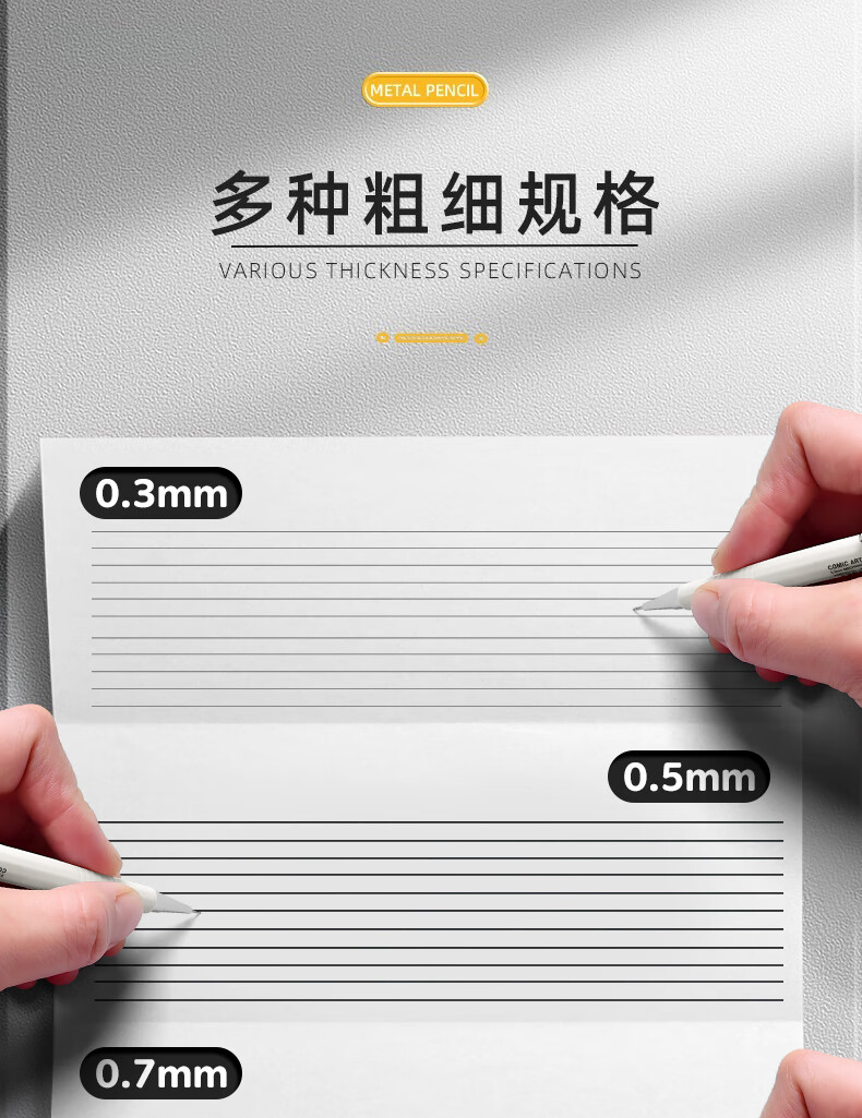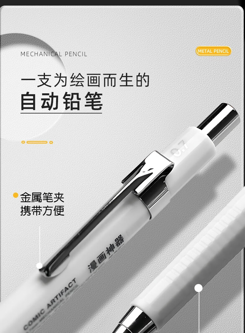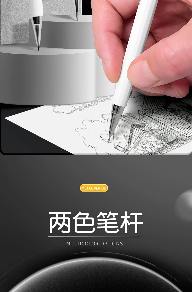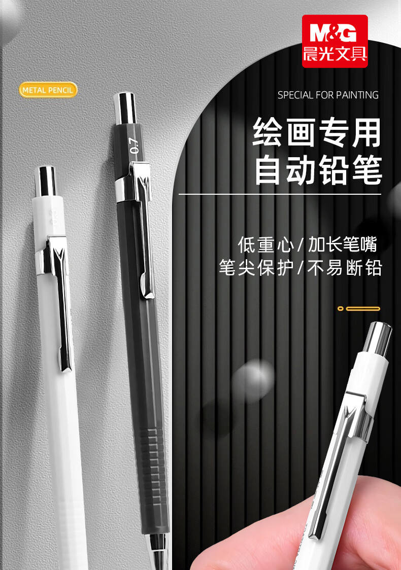 晨光(M&G)自动铅笔0.3mm0.5mm0.7mm素描漫画绘画绘图学生简约ins高颜值 【白色+灰色】各1支/0.5+铅芯100支