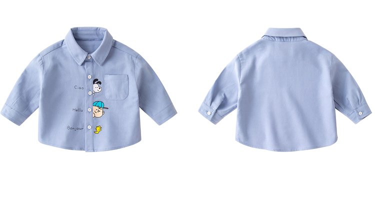 嘟嘟家儿童秋装衬衫宝宝卡通衬衣小童童装男童洋气上衣婴儿秋款女童衣服 蓝色 100