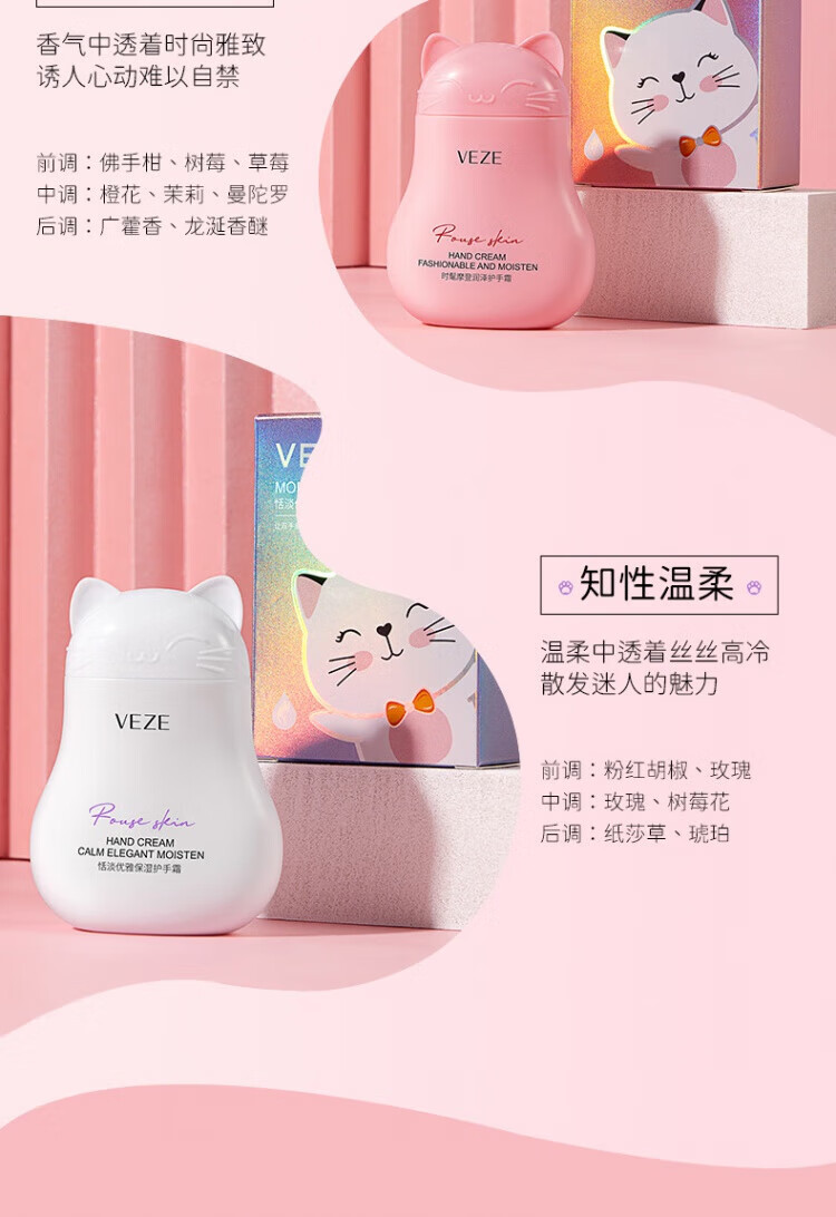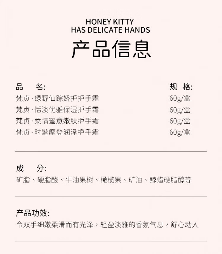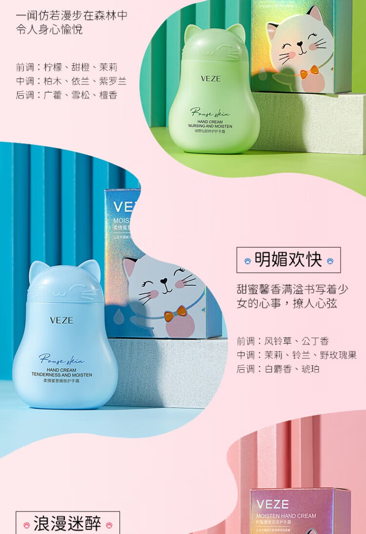 梵贞【超值爆款】猫咪护手霜60g护手霜女膏伴手礼礼物SN8477 柔情密意嫩肤护手霜60g(蓝色)