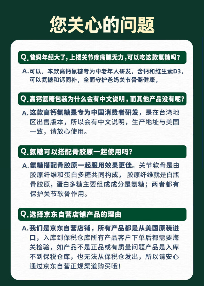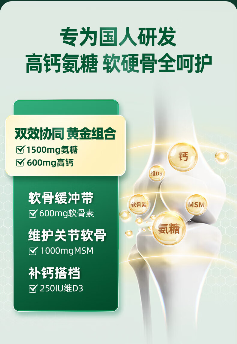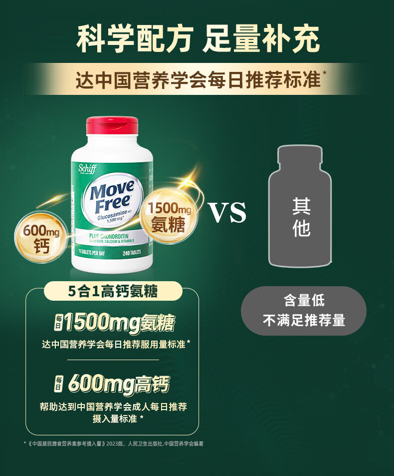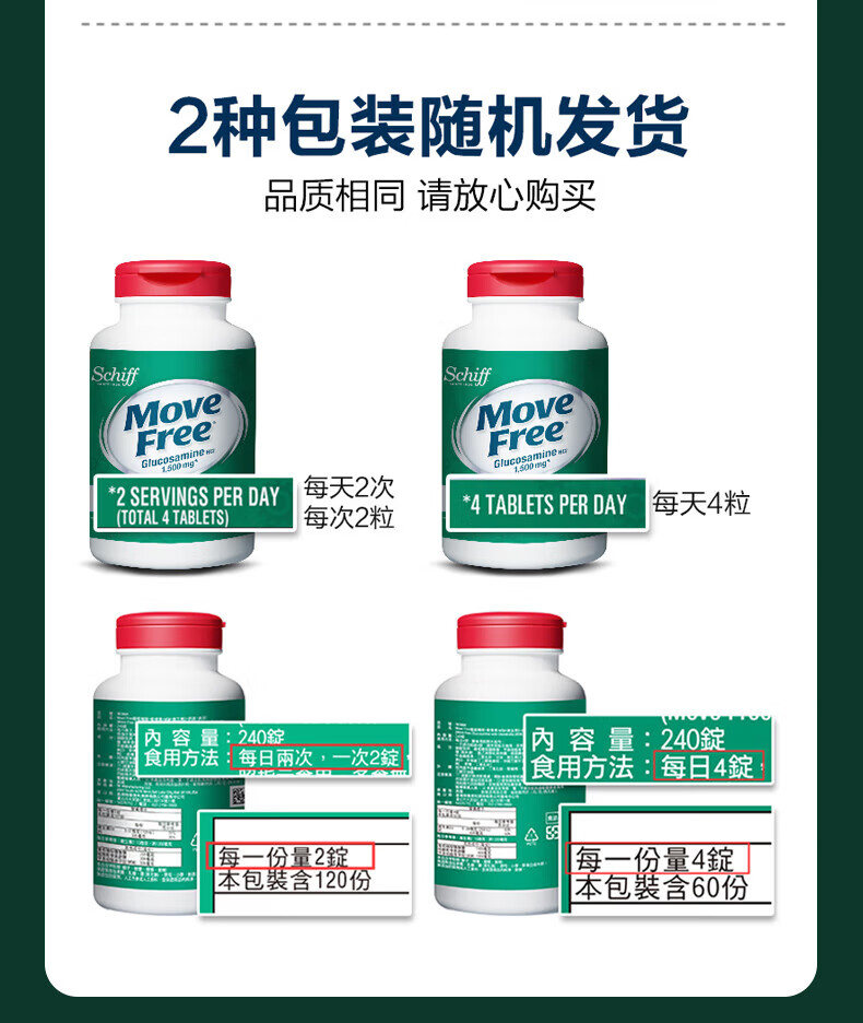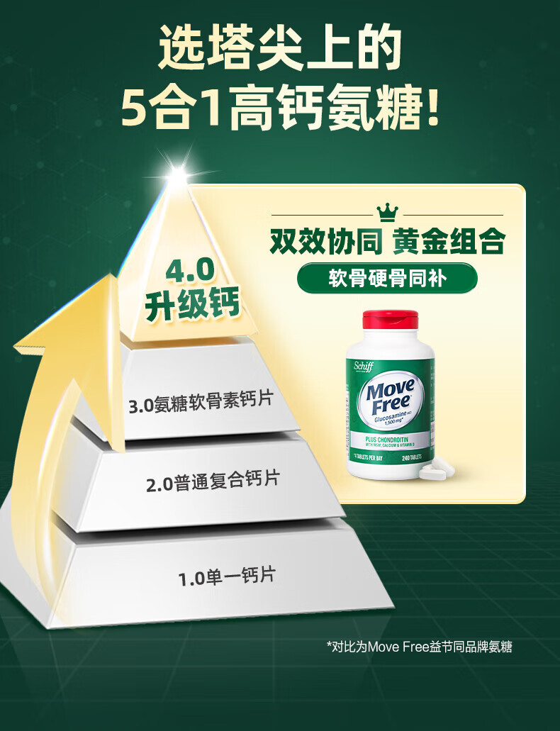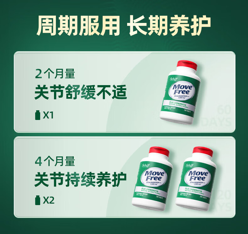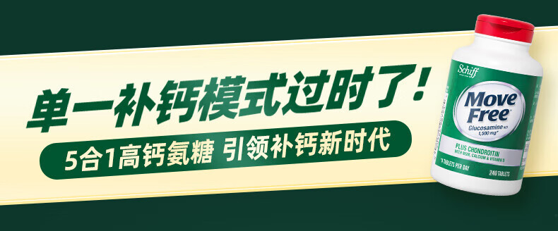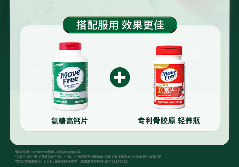 Move Free益节氨糖软骨素钙片绿瓶120粒+红瓶200粒 维骨力成人美国进口