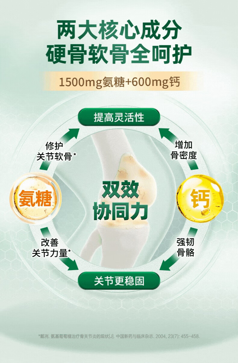 益节(Move Free)高钙氨糖软骨素维骨力钙片 美国原装进口 成人中老年 【补钙养护CP装】氨糖高钙 80粒*1瓶 红瓶80粒