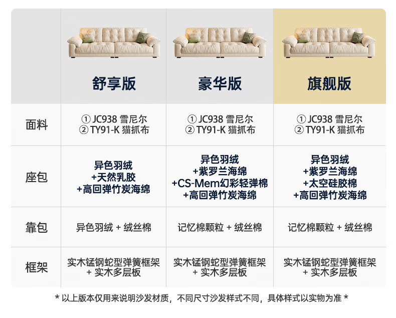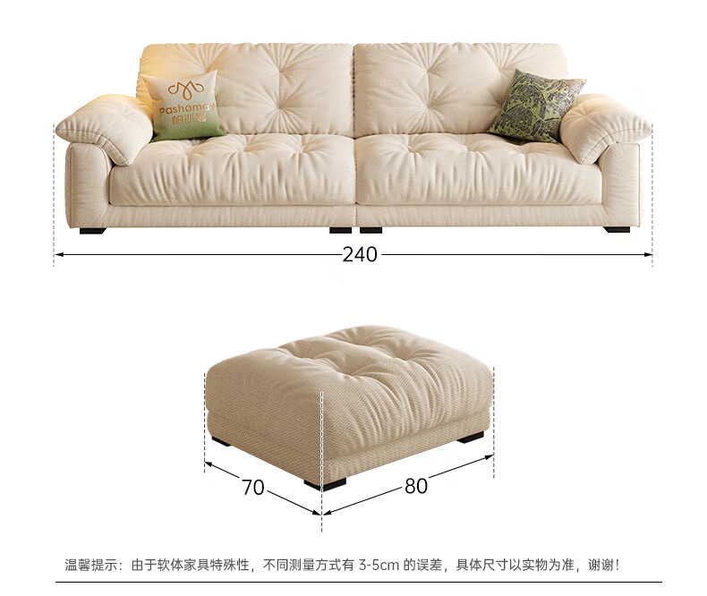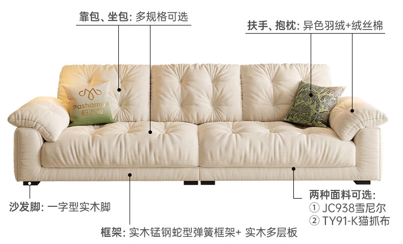 帕沙曼可拆洗沙发布艺小户型客厅现代简约云朵沙发直排雪尼尔 2931ZF 【标准1.0m宽】2.4米多人位 雪尼尔JC938【旗舰版】 羽绒+硅胶棉+紫罗兰+竹炭海绵