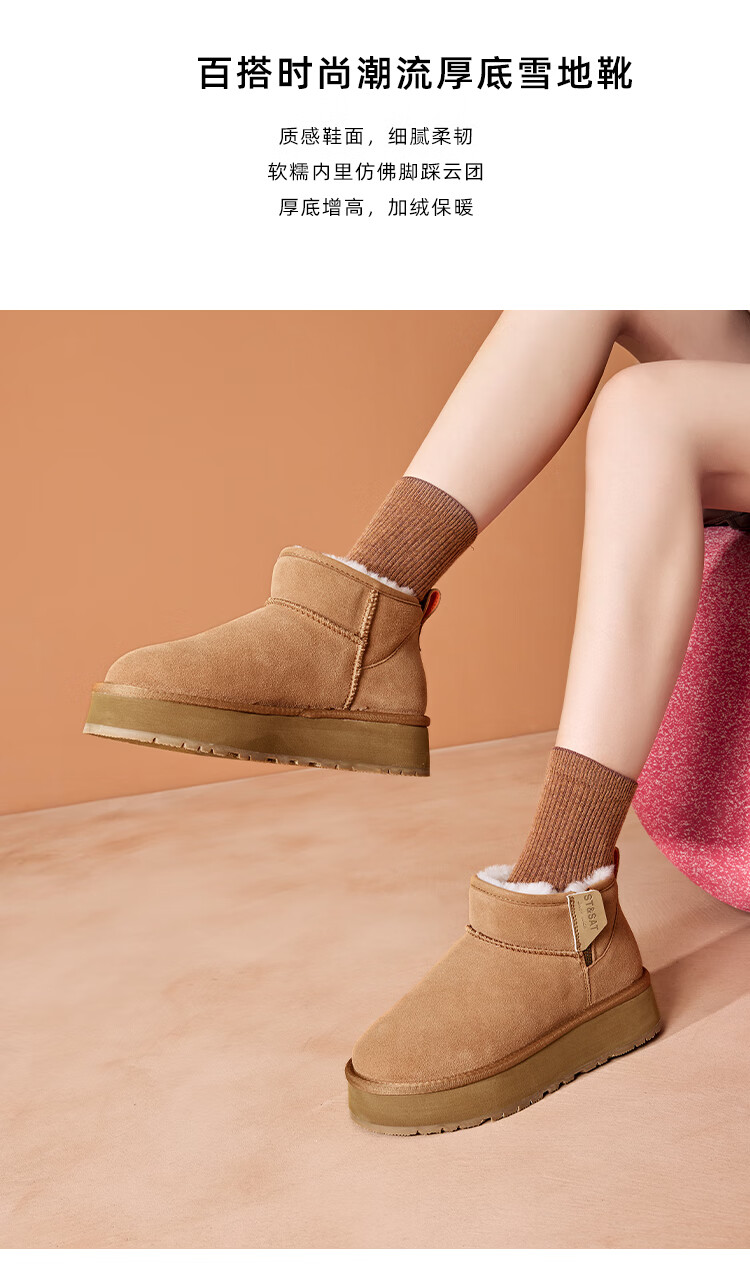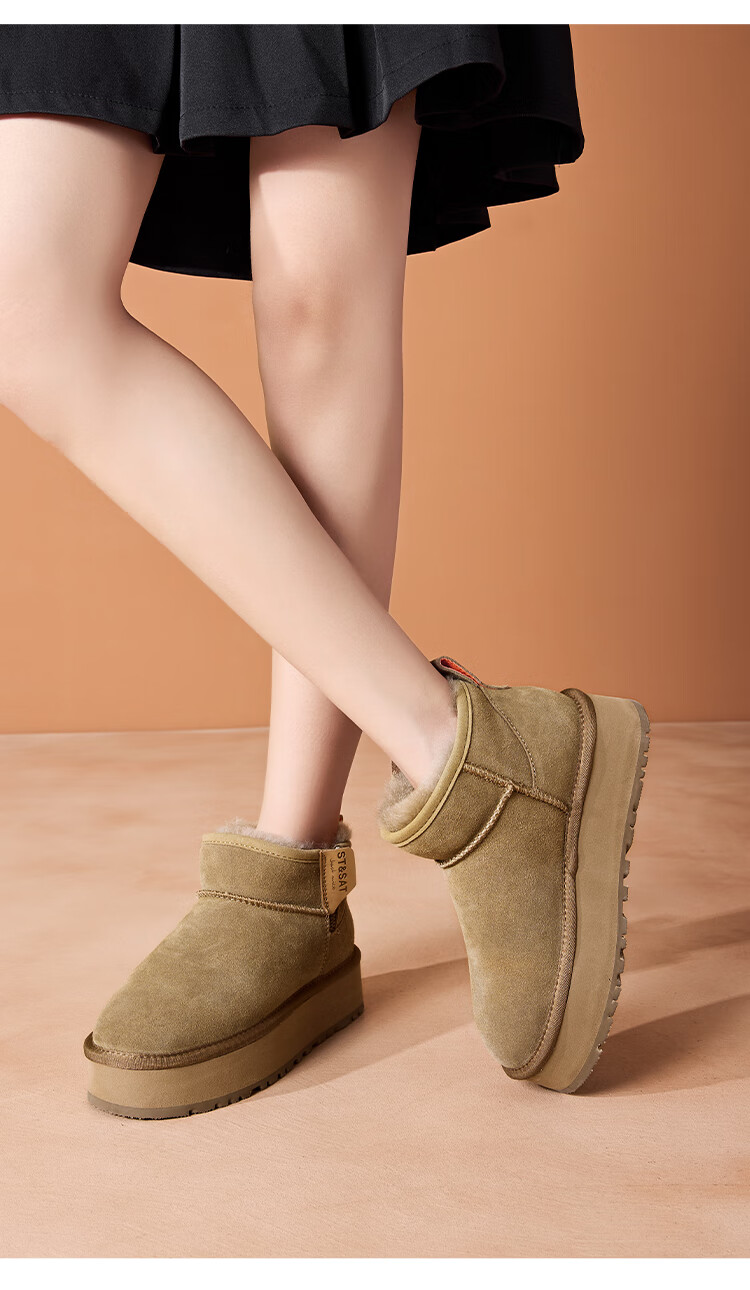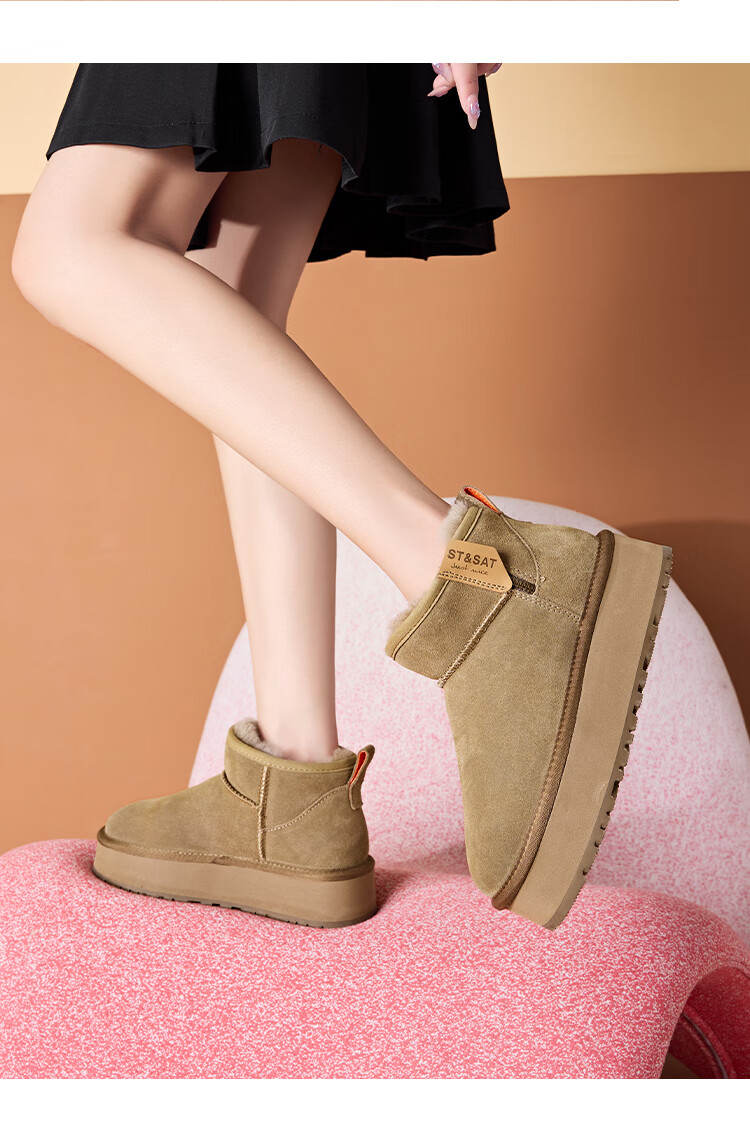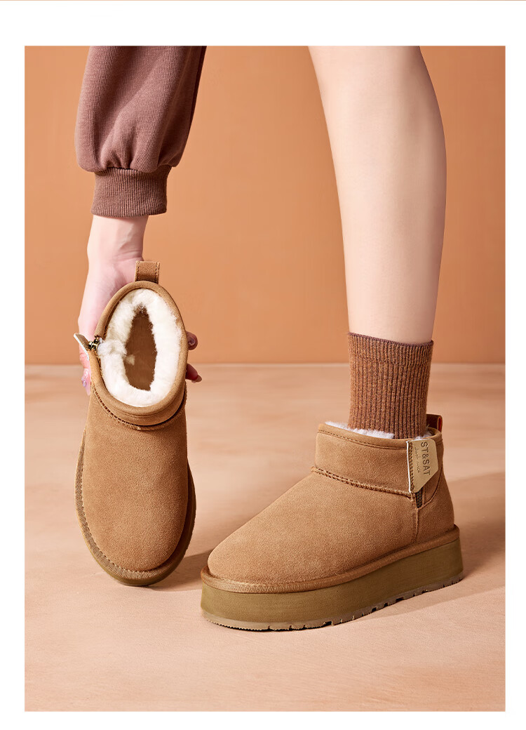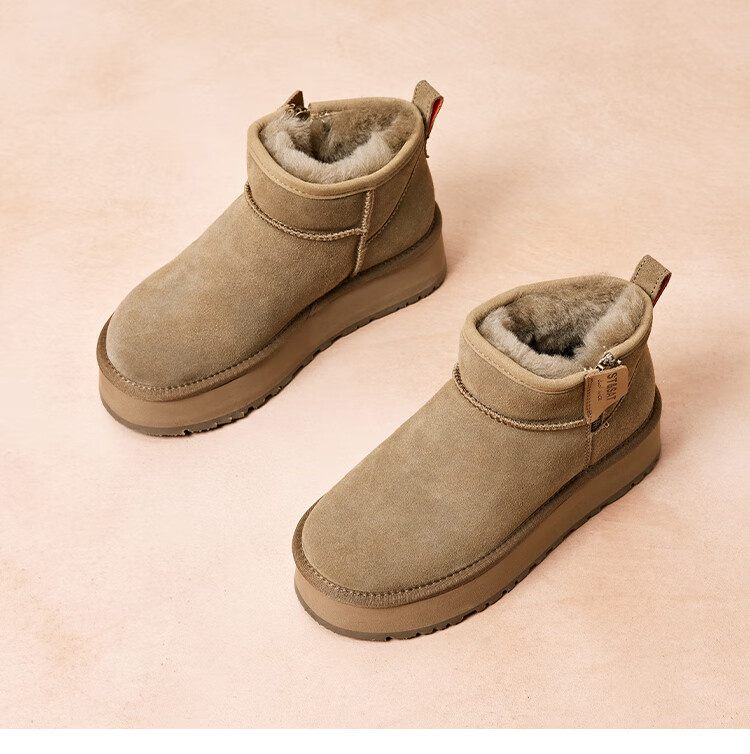 星期六毛毛雪地靴女款冬季加绒2025新款女鞋厚底增高短靴加厚外穿棉鞋子 驼色 【4cm厚底】 36