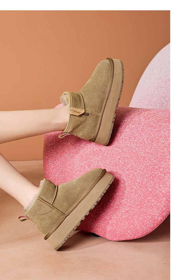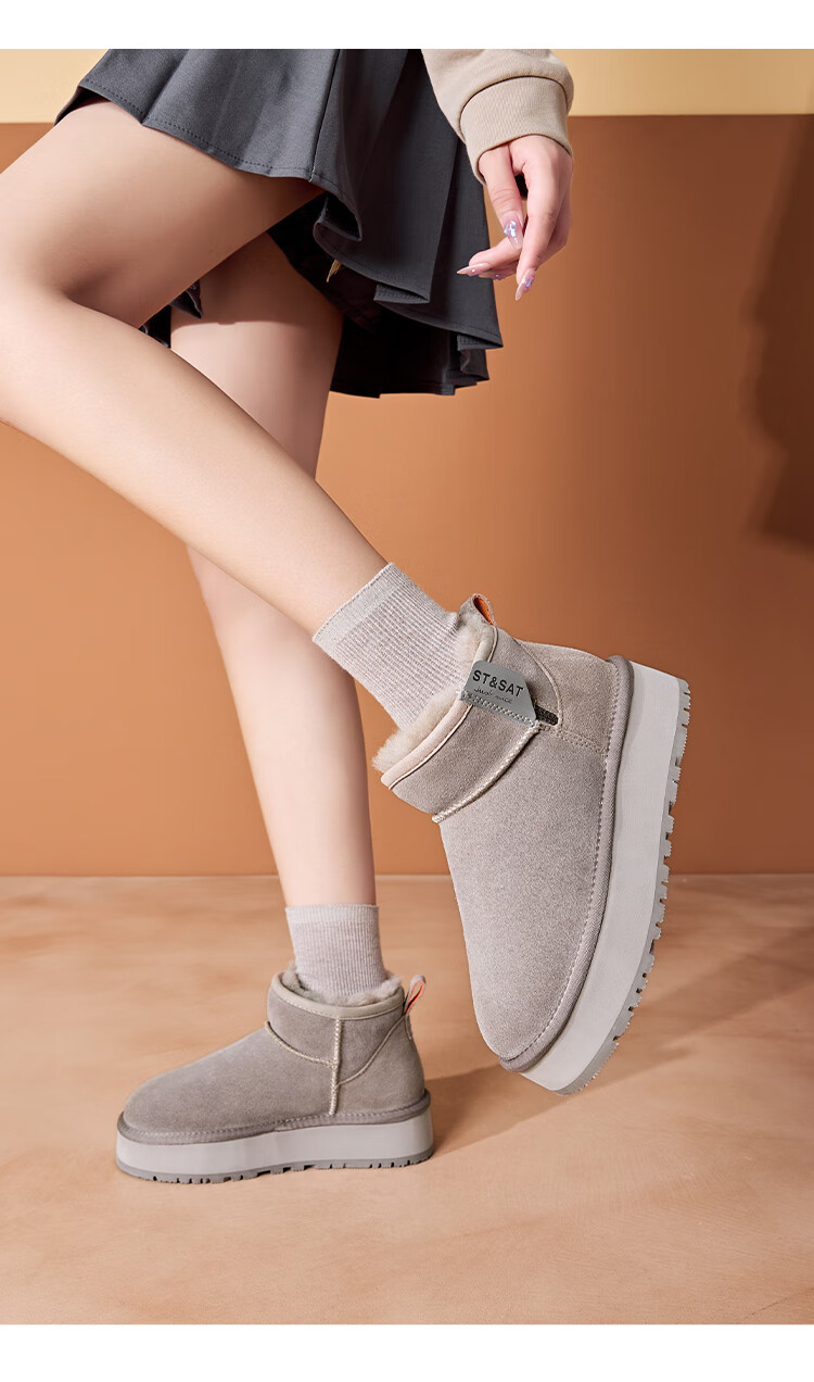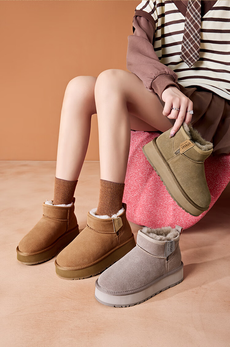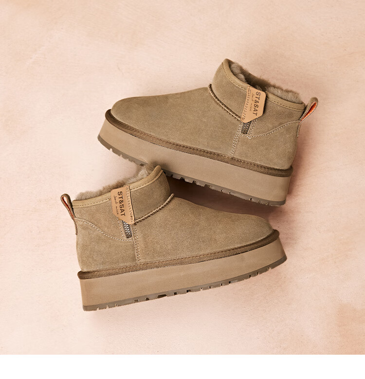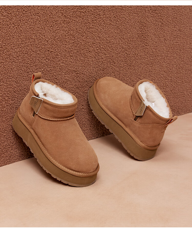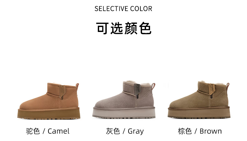 星期六毛毛雪地靴女款冬季加绒2025新款女鞋厚底增高短靴加厚外穿棉鞋子 驼色 【4cm厚底】 36