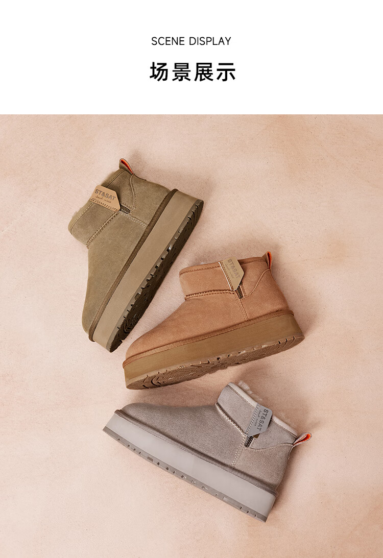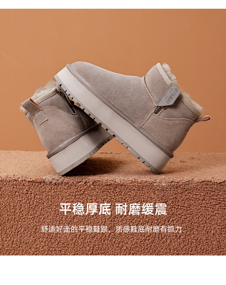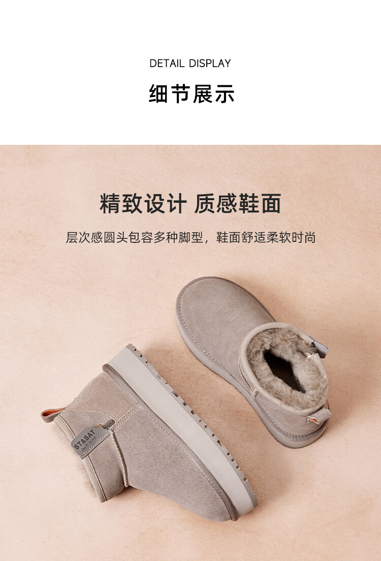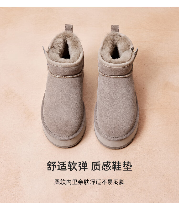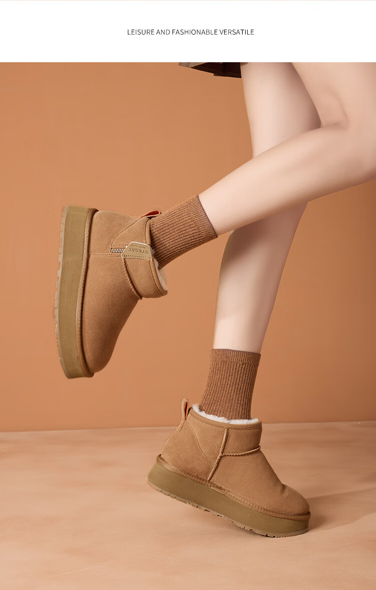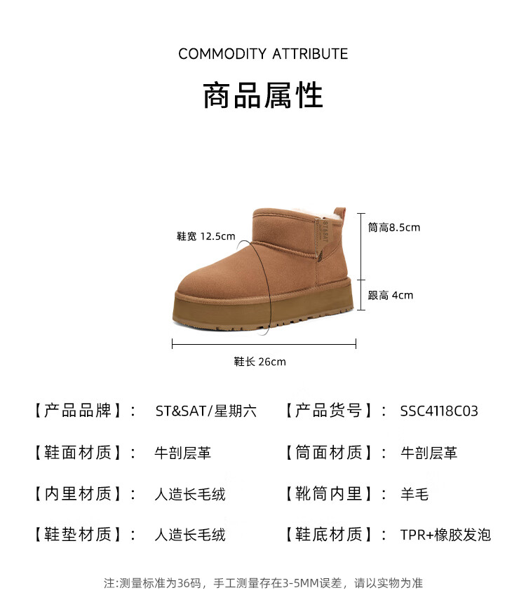 星期六毛毛雪地靴女款冬季加绒2025新款女鞋厚底增高短靴加厚外穿棉鞋子 驼色 【4cm厚底】 36