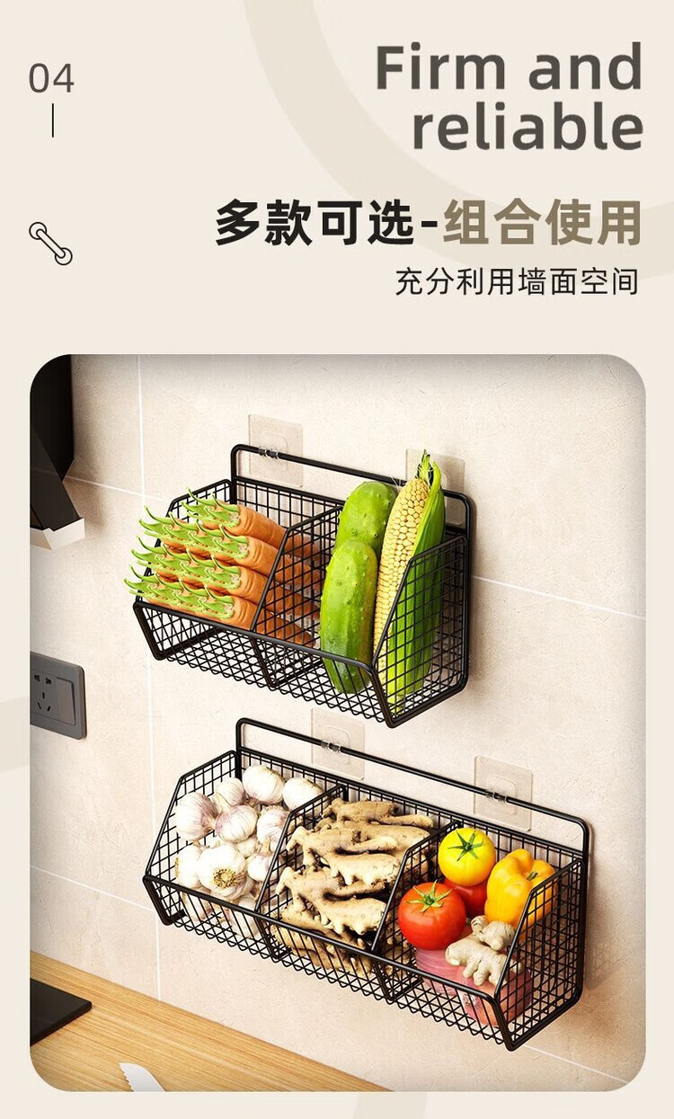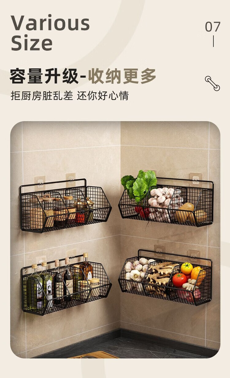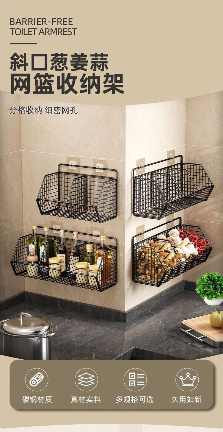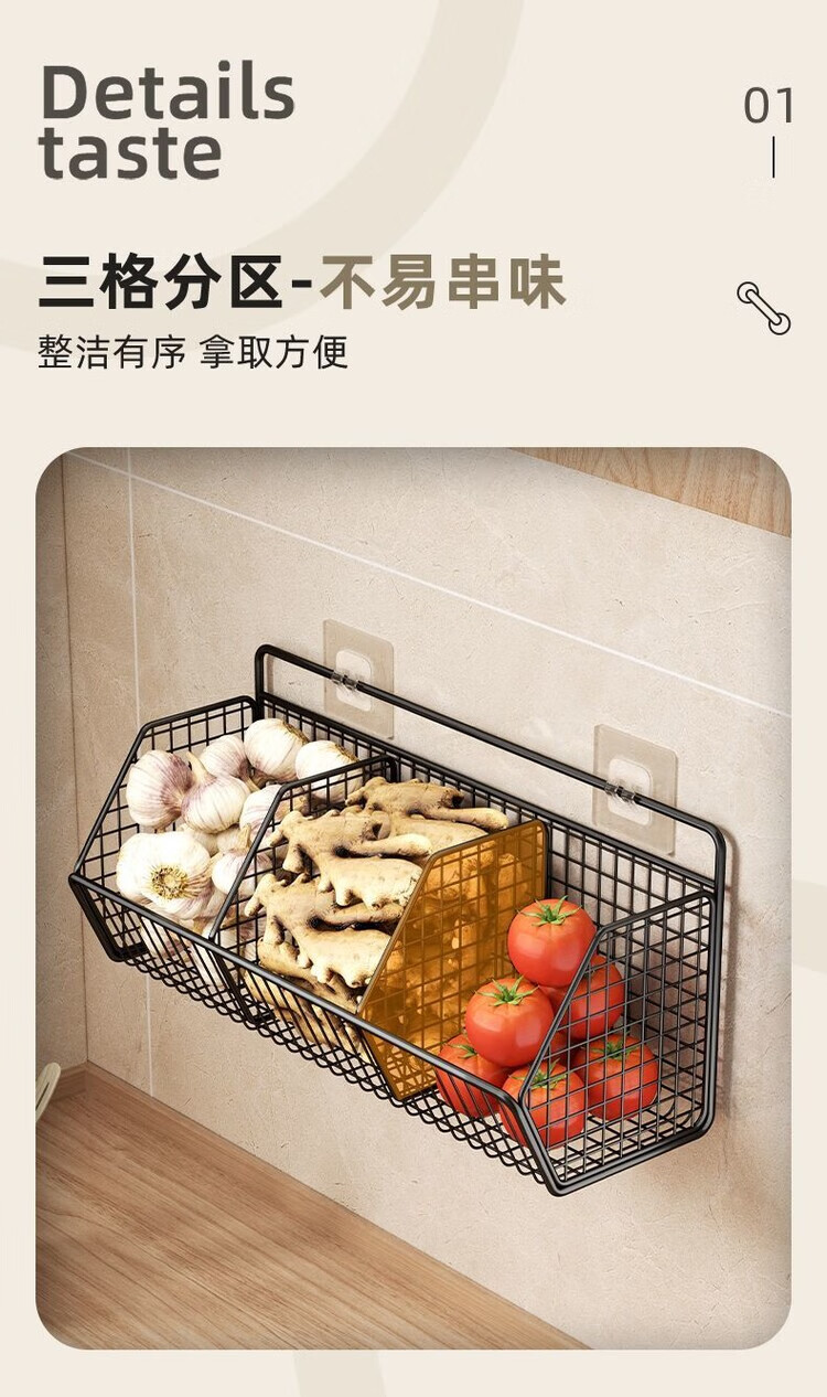 简漾葱姜蒜置物架挂墙上多功能厨房免打孔收纳盒壁挂式菜篮子 碳灰单格
