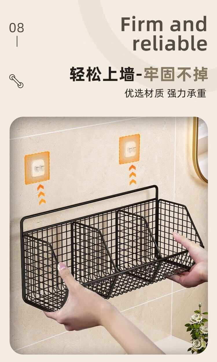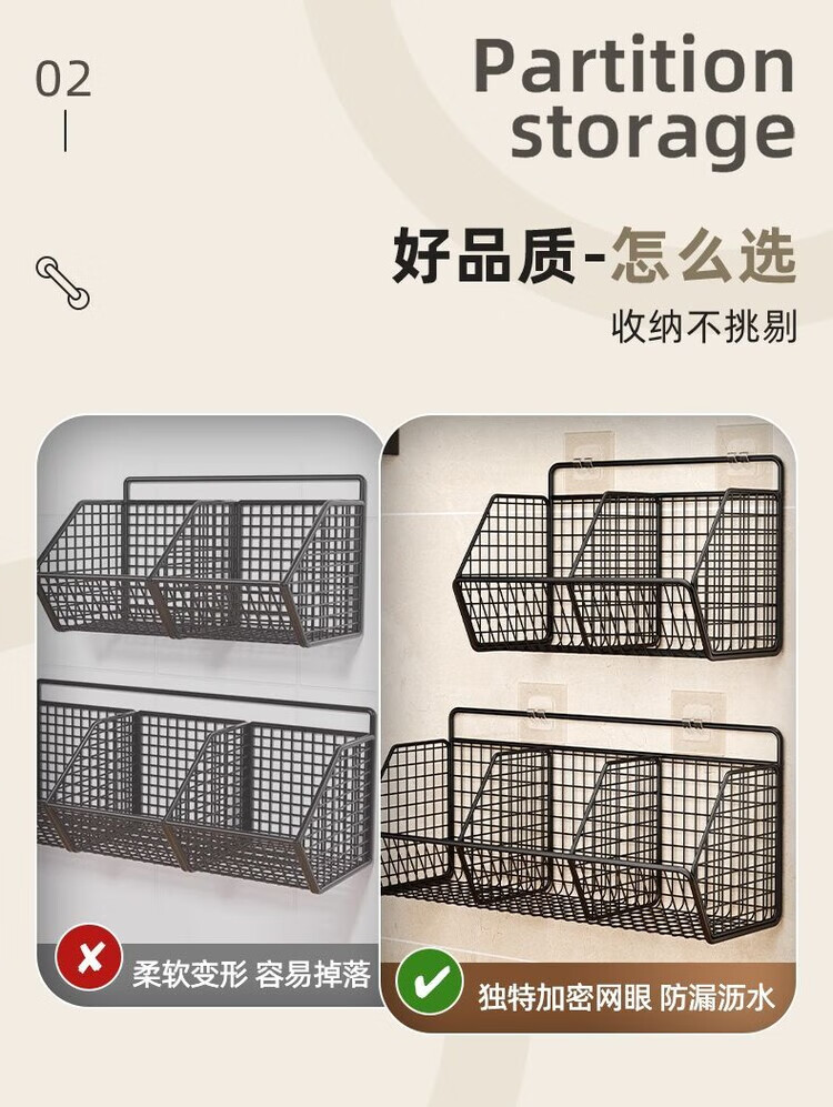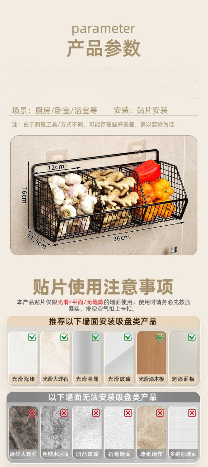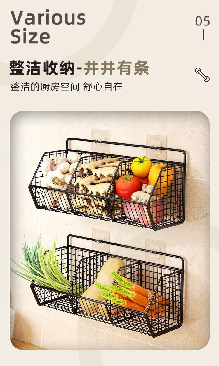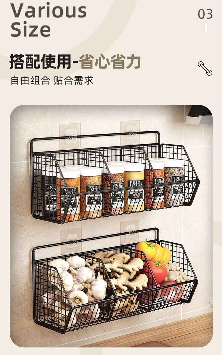 简漾葱姜蒜置物架挂墙上多功能厨房免打孔收纳盒壁挂式菜篮子 碳灰单格
