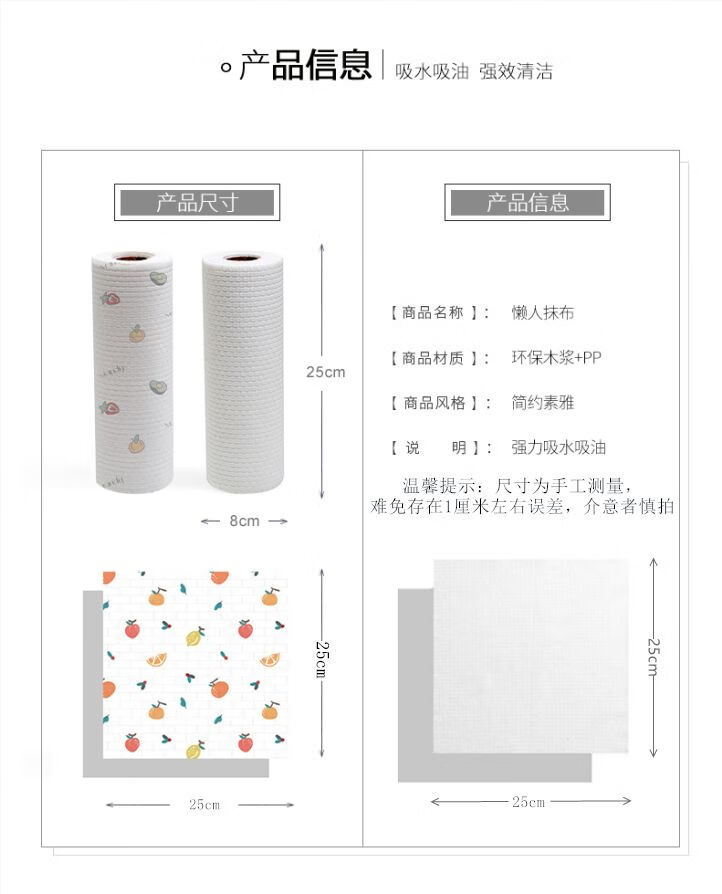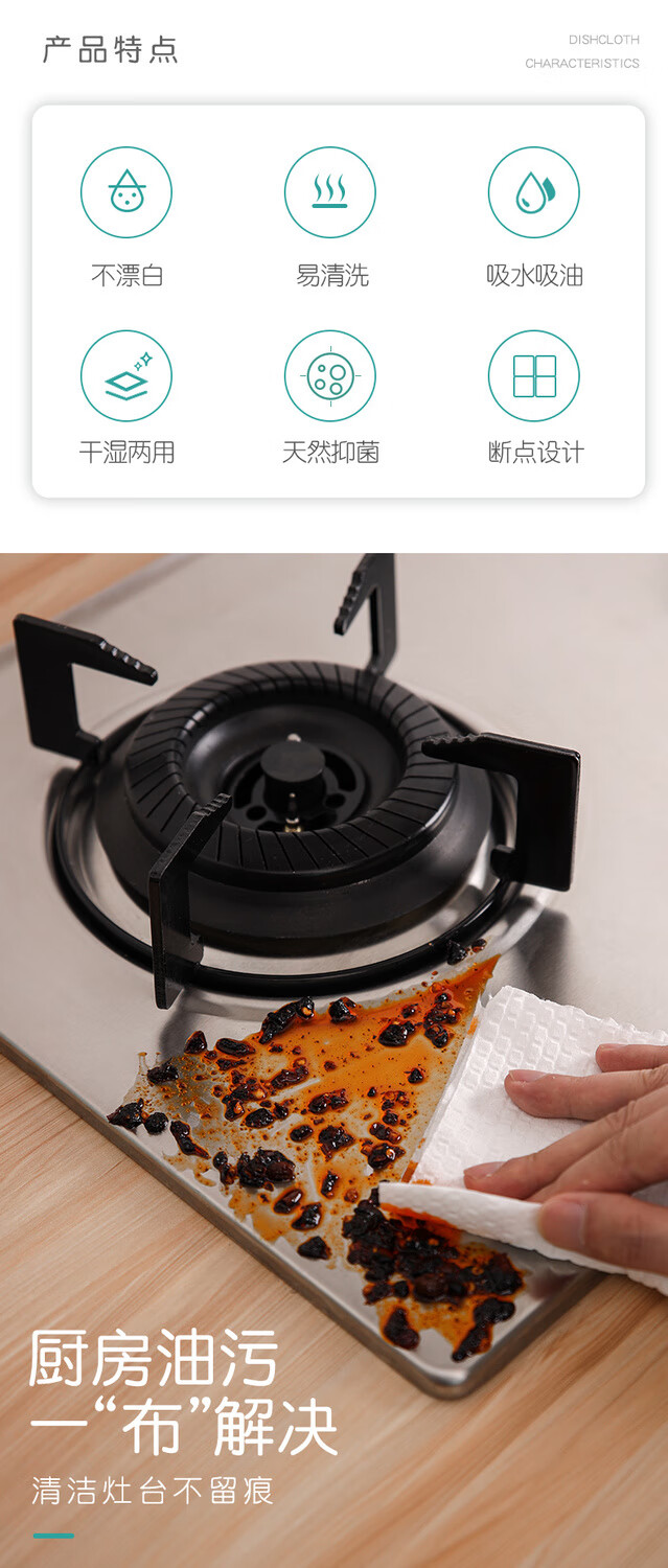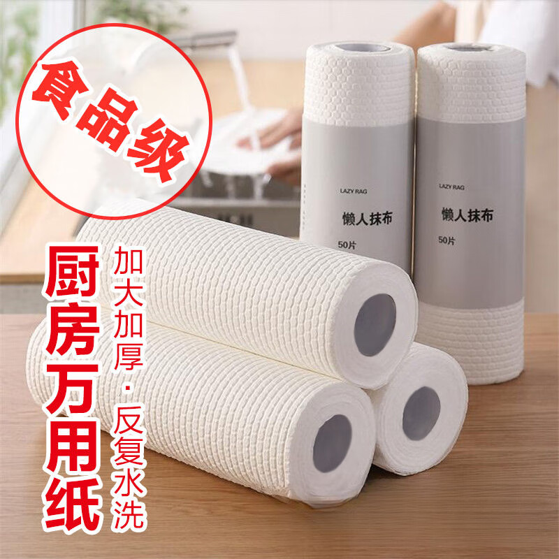 简漾懒人抹布加厚款加大可水洗干湿两用厨房吸油纸无纺布一次性洗碗布 纯白款(55克每平方)单卷170克 1小卷30片(120克)