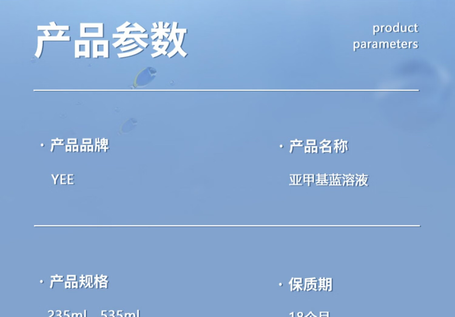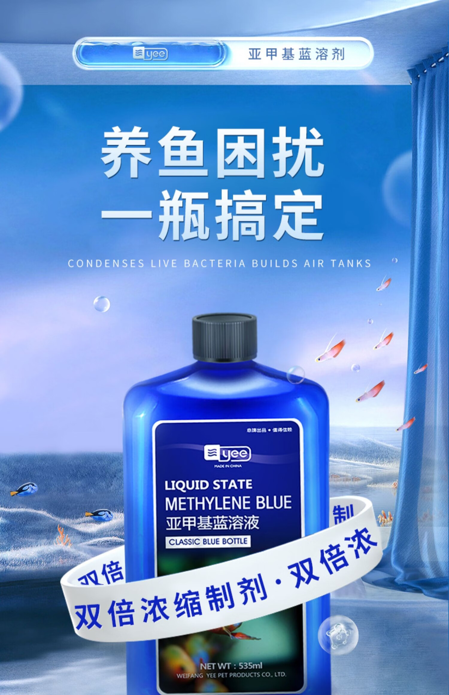 YEE亚甲基蓝鱼缸消毒杀菌观赏鱼锦鲤白点净水烂身烂尾235ml