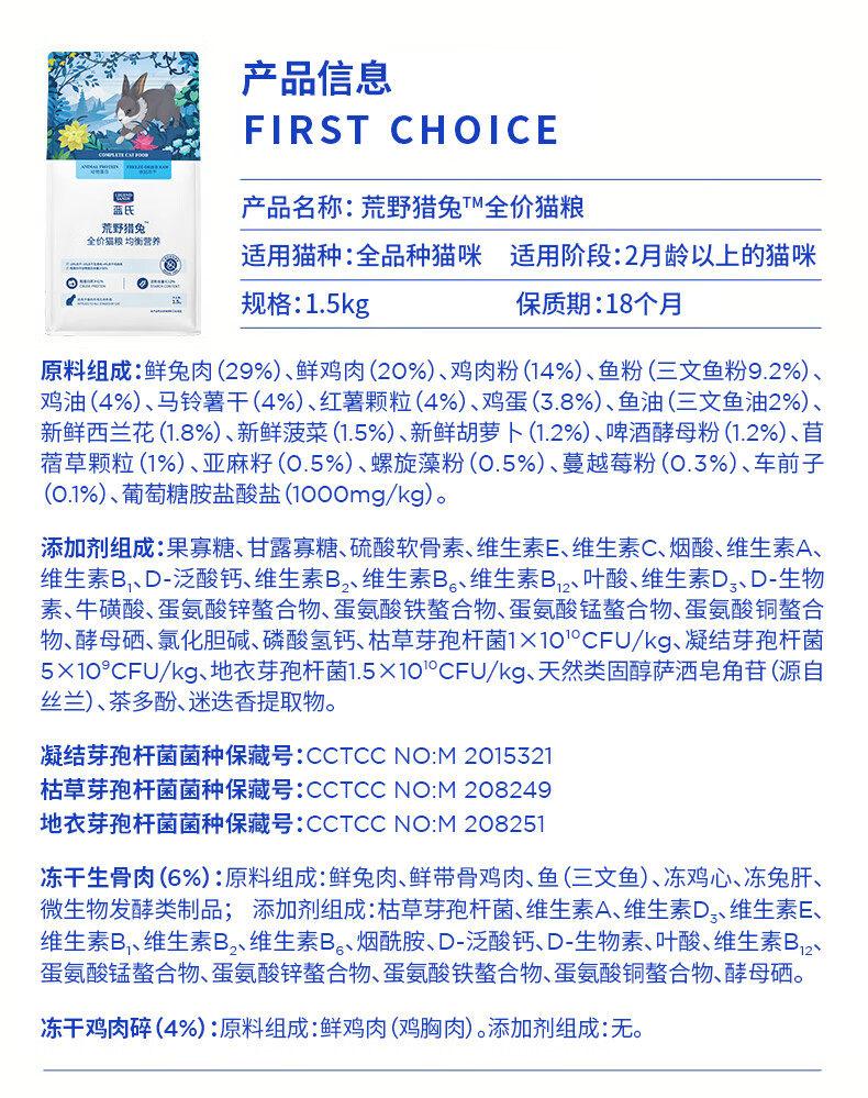 LEGENDSANDY蓝氏 全价猫粮成猫幼猫生骨肉冻干粮猎鸟乳鸽系列兔肉口味1.5kg*3