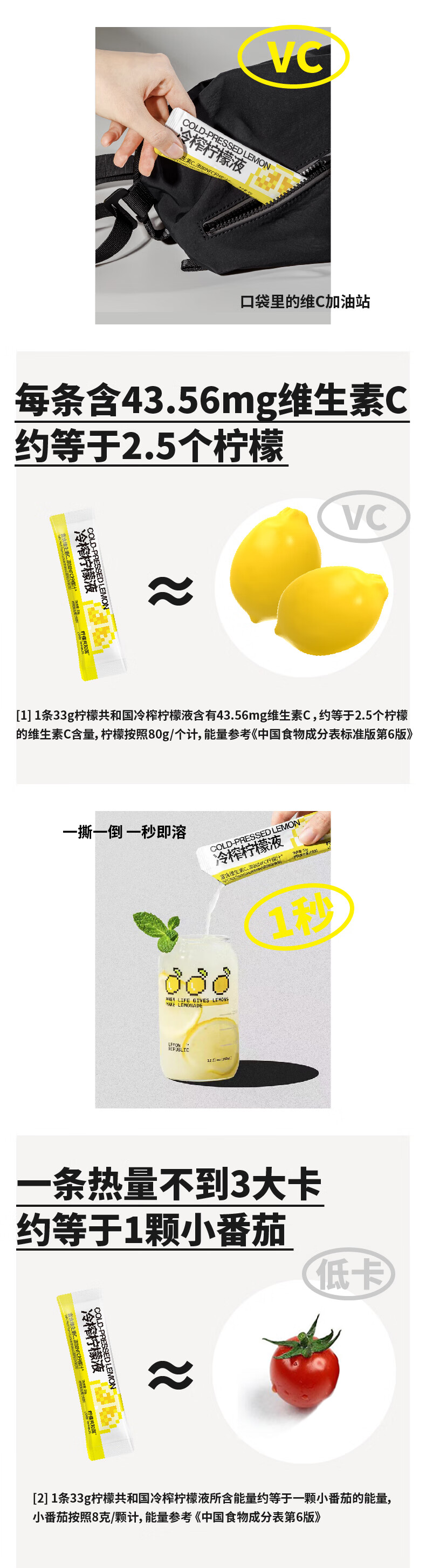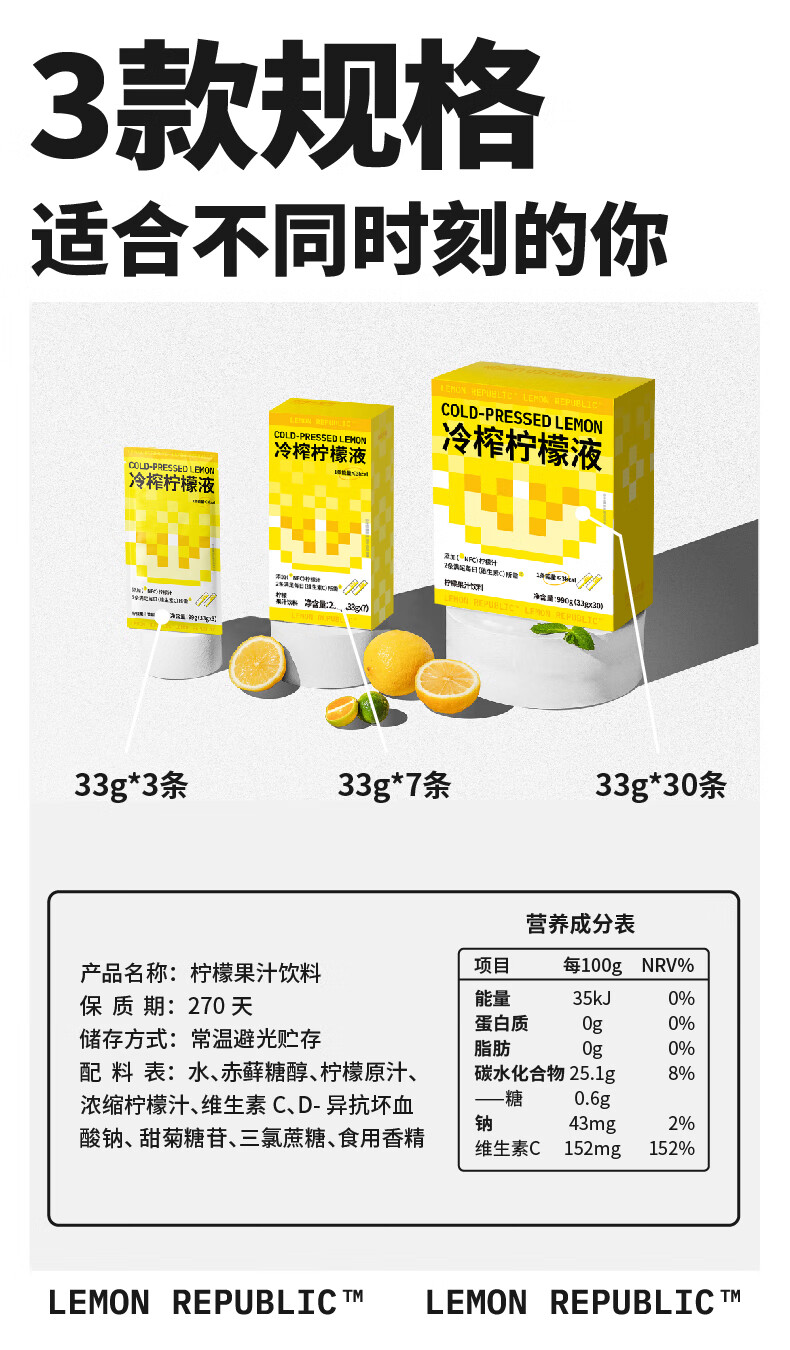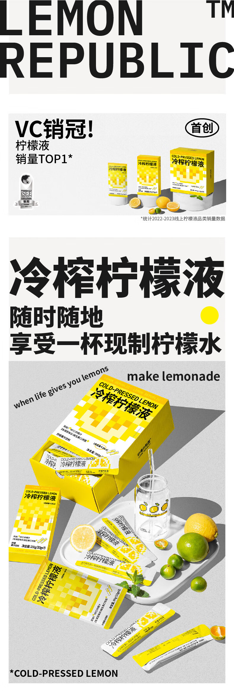 柠檬共和国(Lemon Republic)冷榨柠檬液NFC柠檬汁补充维C下午茶便携装年货送礼柠檬水33g*30条