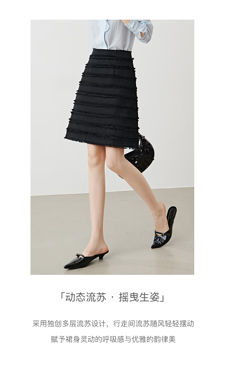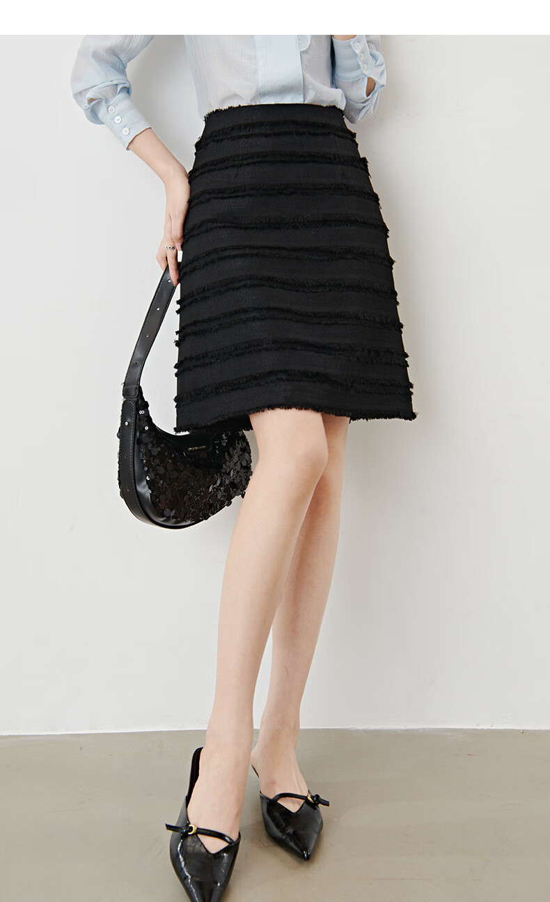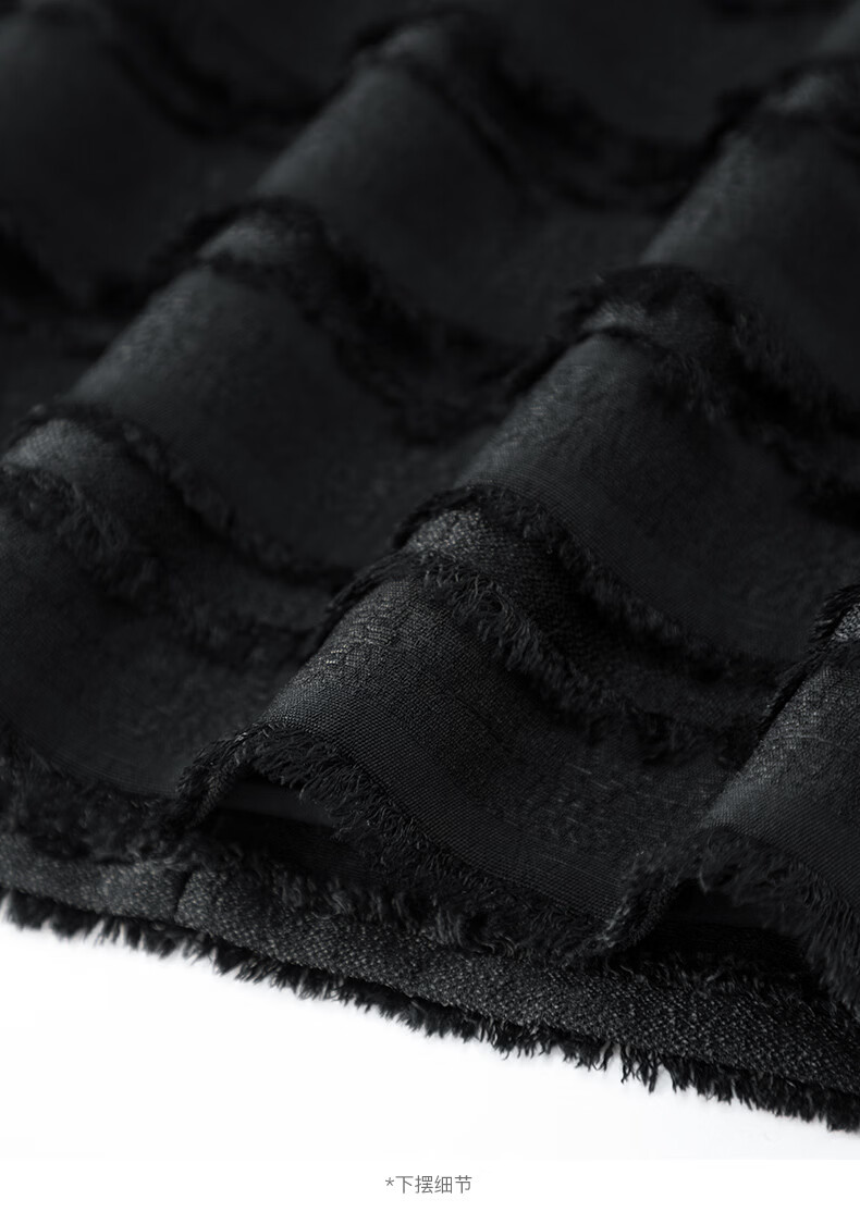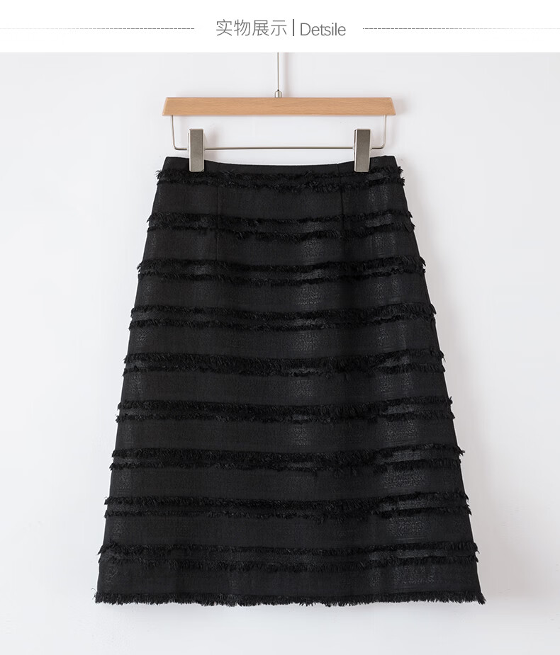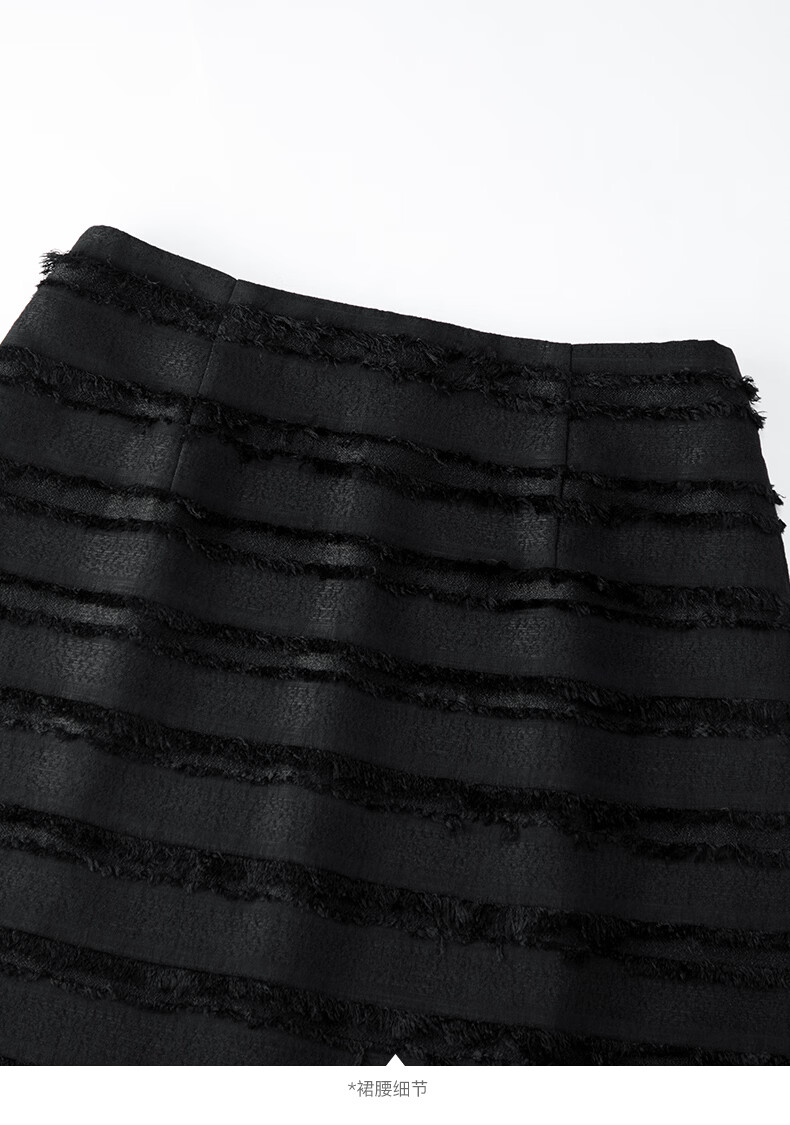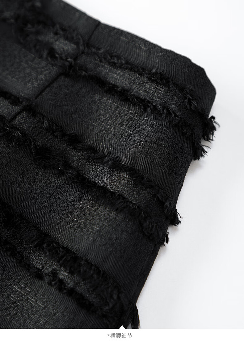 晚白2026年春款小个子显高重工立体流苏小香风半裙显瘦肌理感小A短裙 黑色 XL
