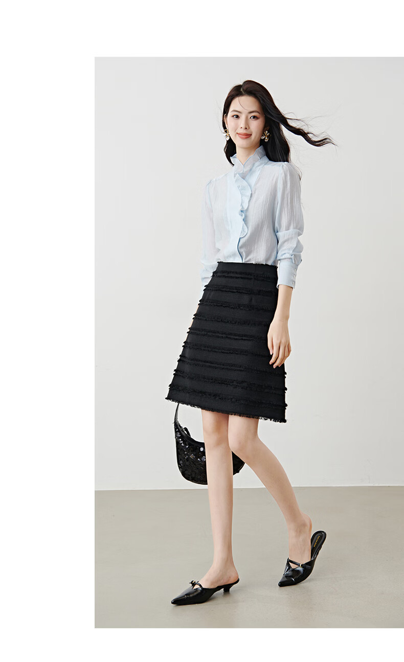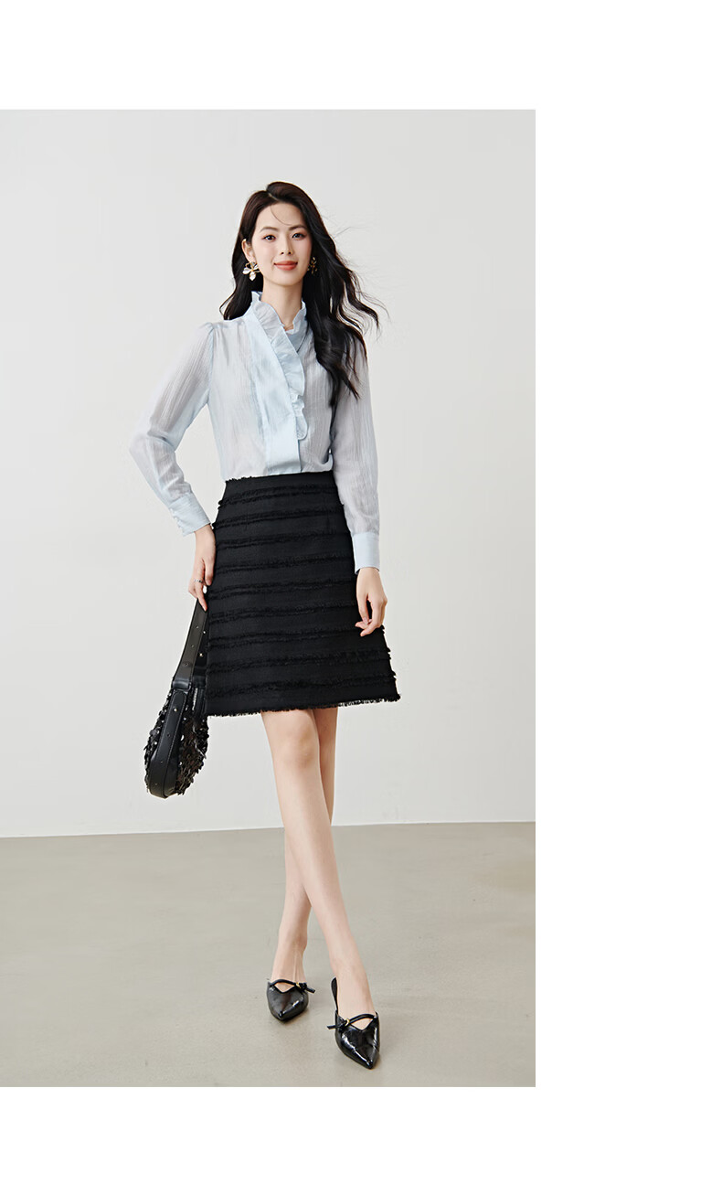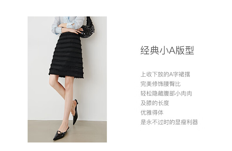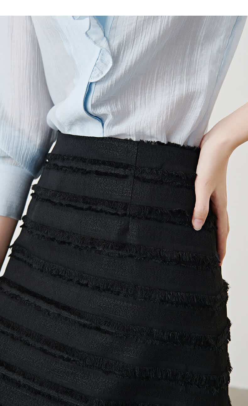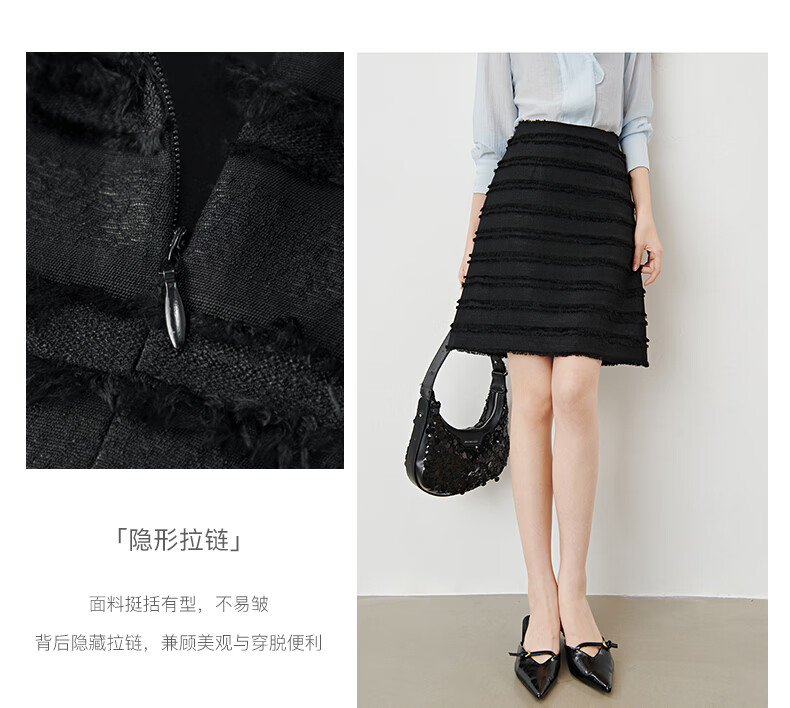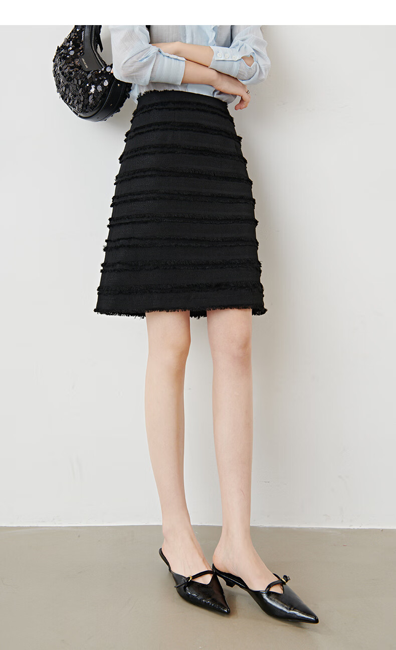 晚白2026年春款小个子显高重工立体流苏小香风半裙显瘦肌理感小A短裙 黑色 XL
