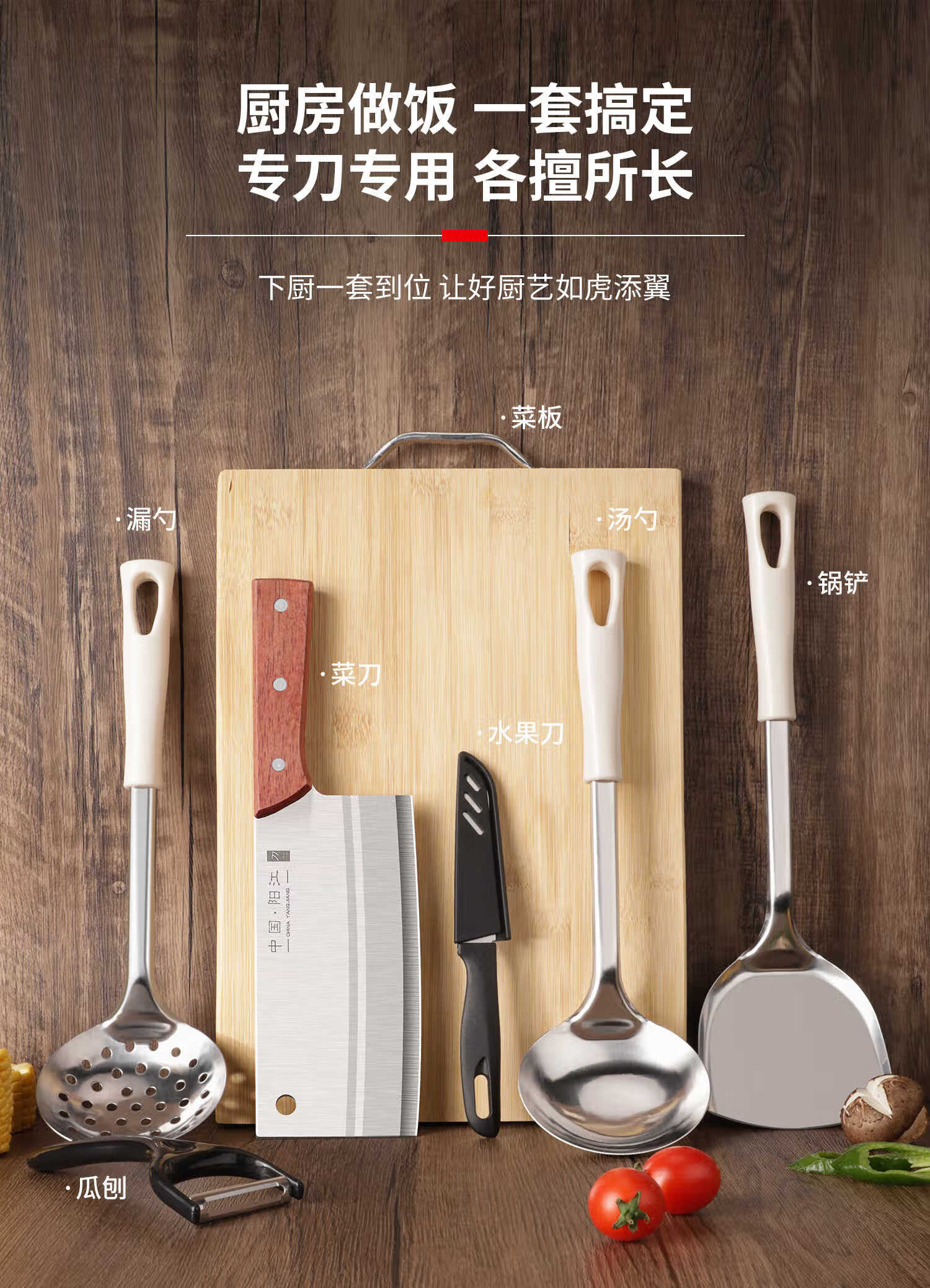匠小品菜刀菜板二合一刀具套装厨房家用切菜刀宿舍砧板全套厨具组合炒菜 【家庭套装】菜刀+锅铲