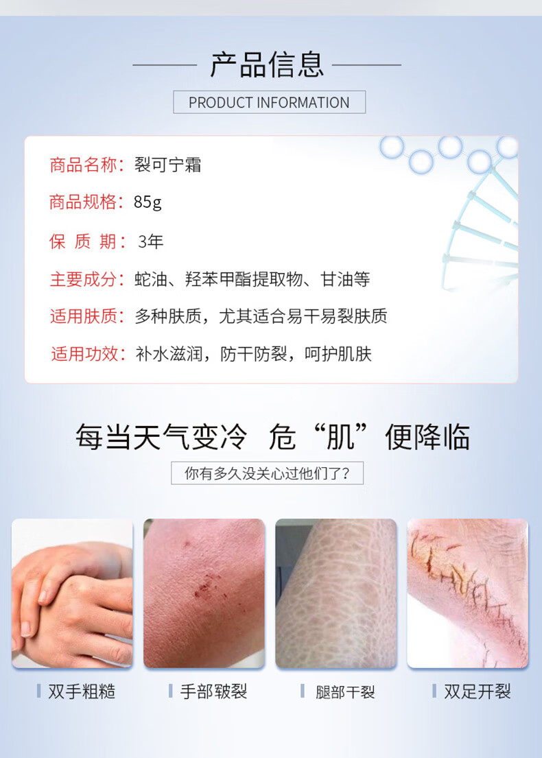 东半球裂可宁护手霜 滋润保湿身体乳防干裂手足霜皲裂膏脚后跟冻伤膏85g 裂可宁85g*3盒