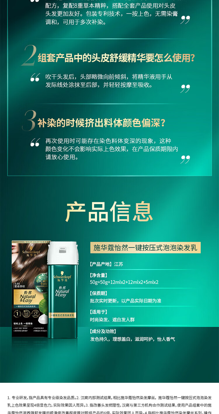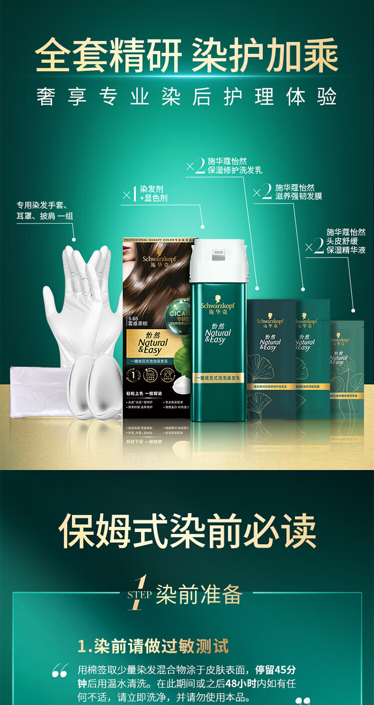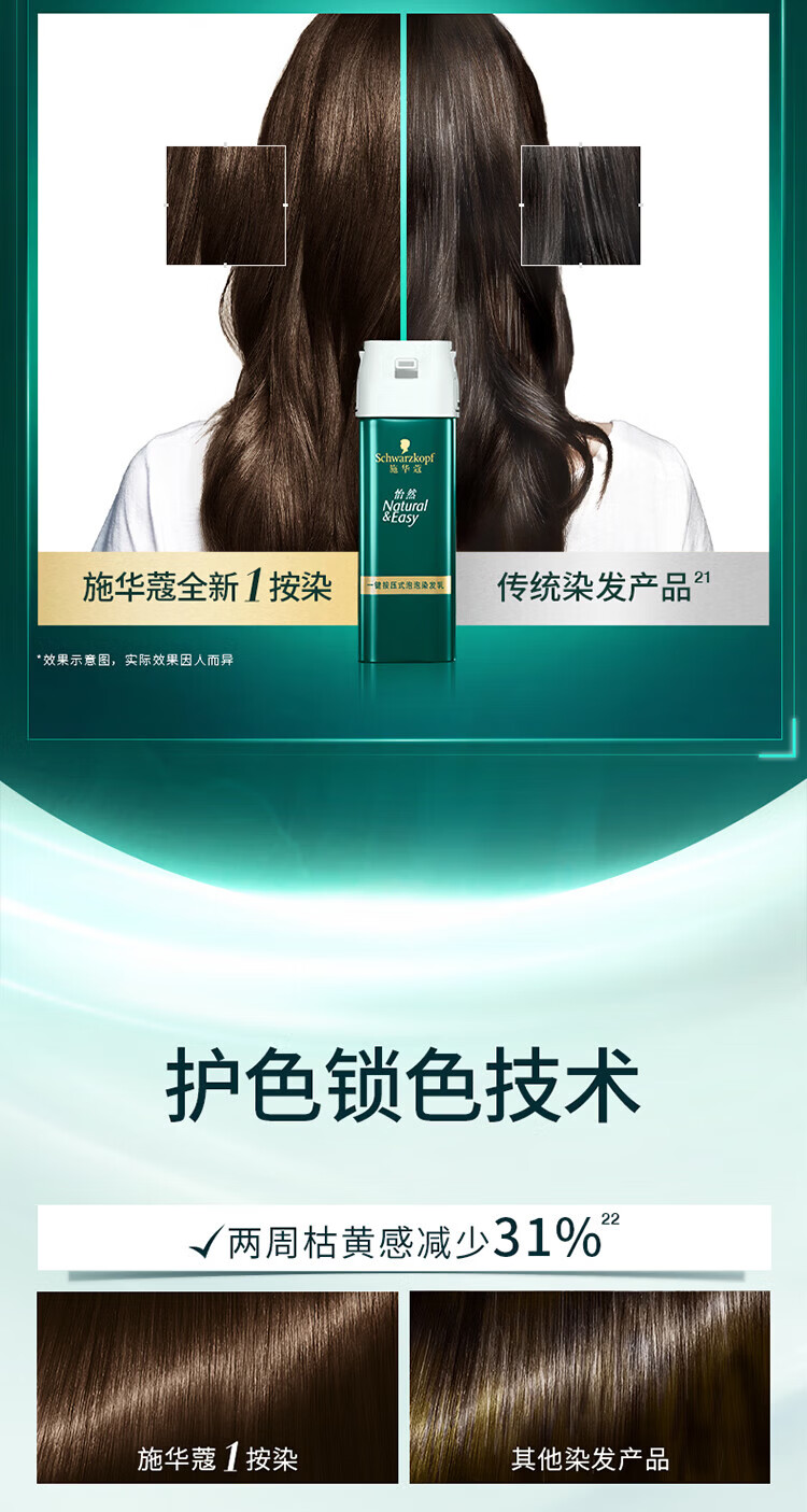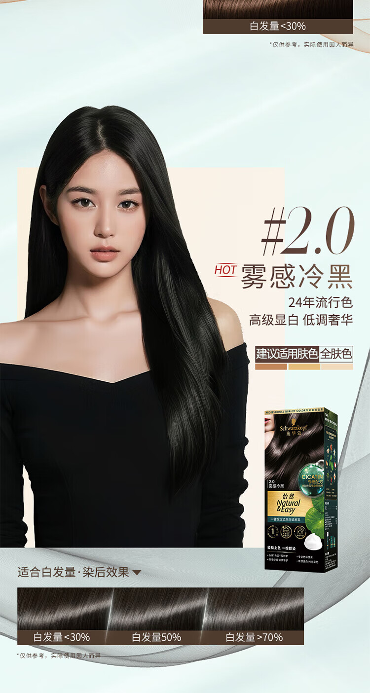 施华蔻(Schwarzkopf)怡然一按染泡泡染发乳2.0雾感冷黑【临期清仓】