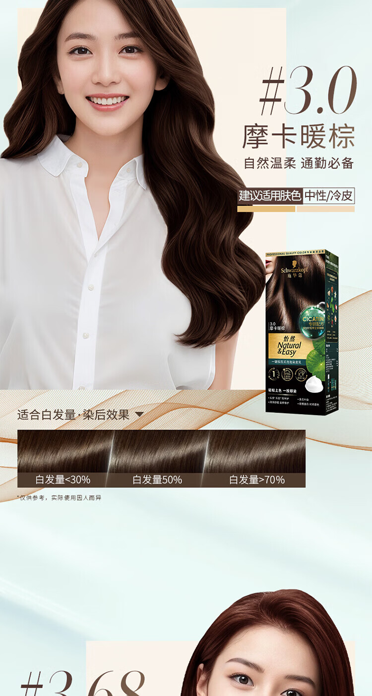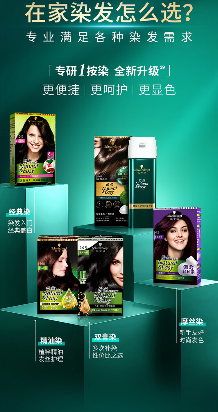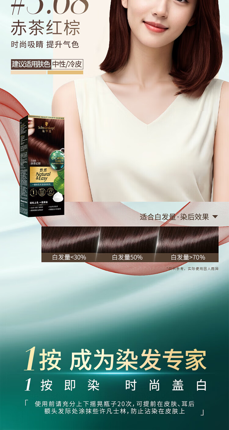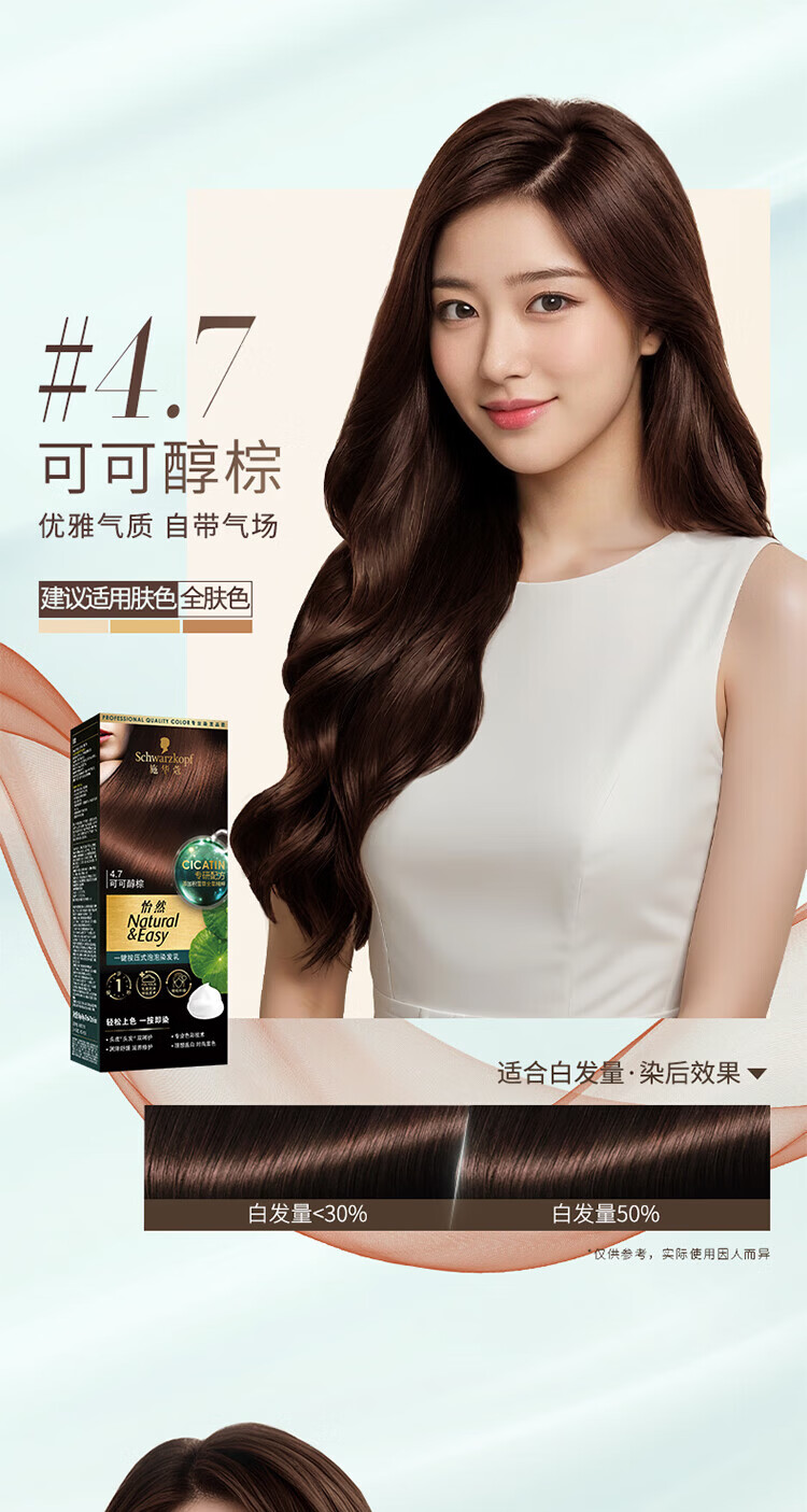 施华蔻(Schwarzkopf)怡然一按染泡泡染发乳2.0雾感冷黑【临期清仓】
