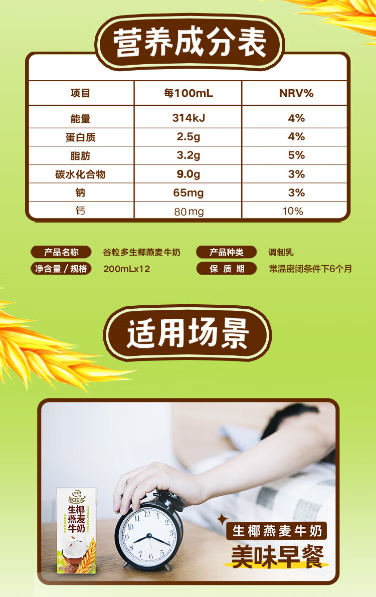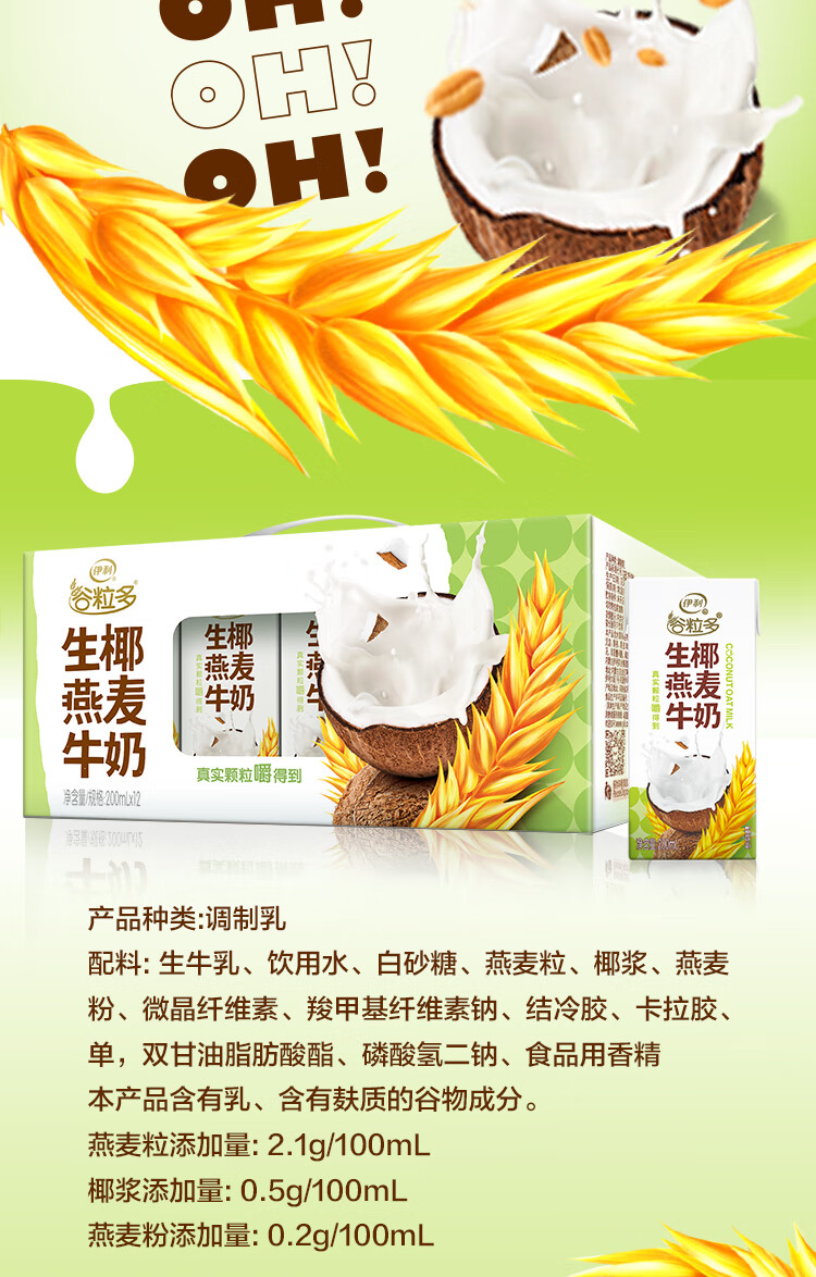 伊利谷粒多 生椰燕麦牛奶 200ml*12盒 礼盒装 1月