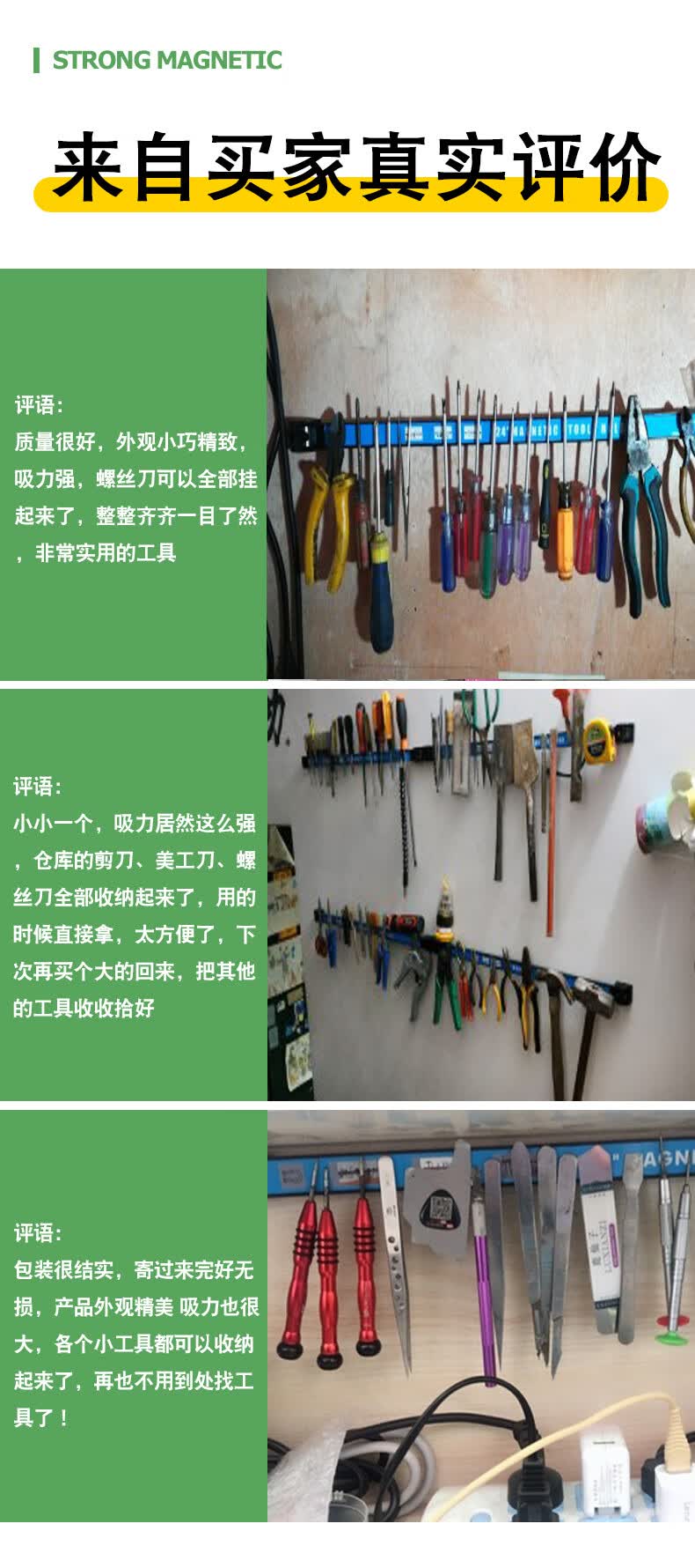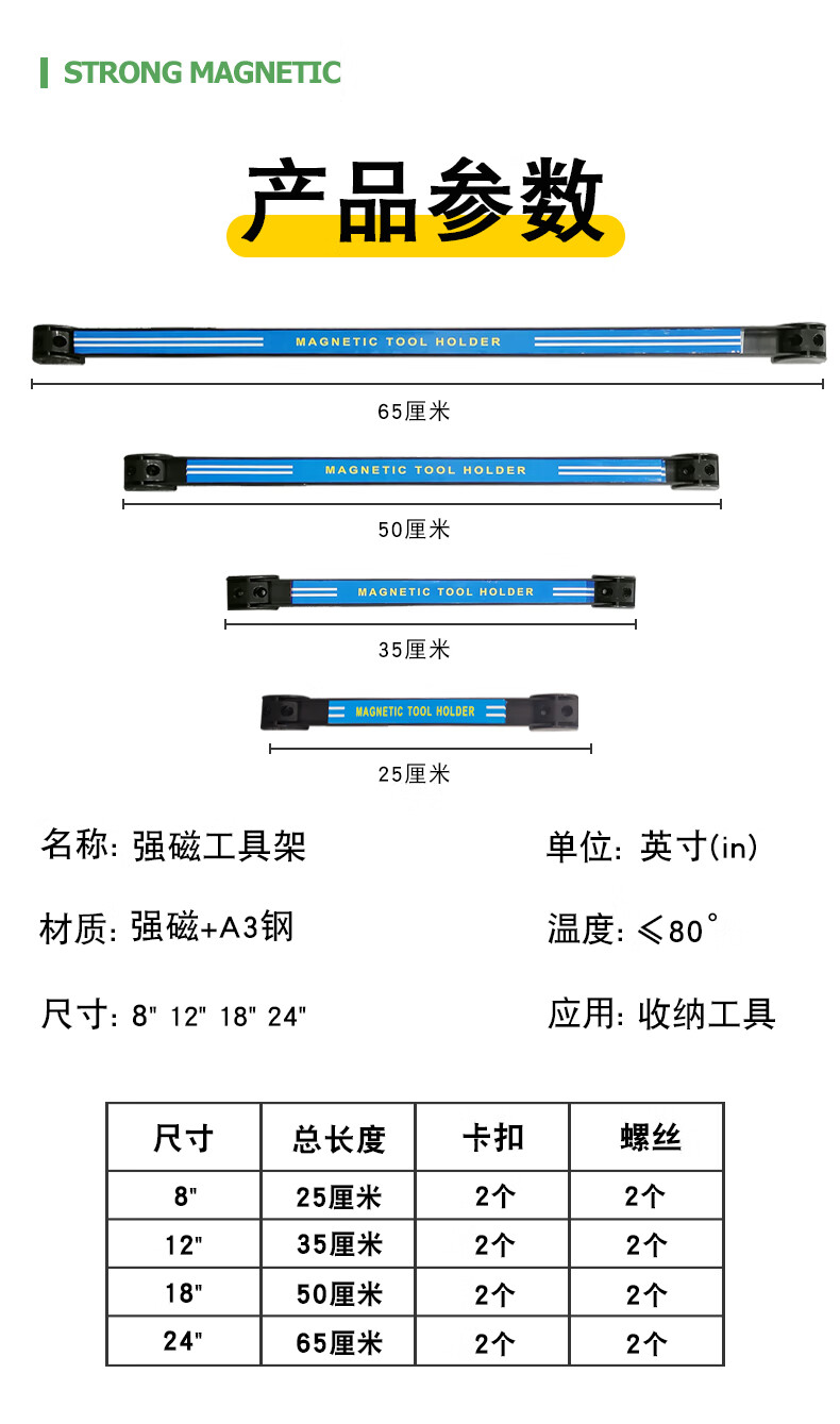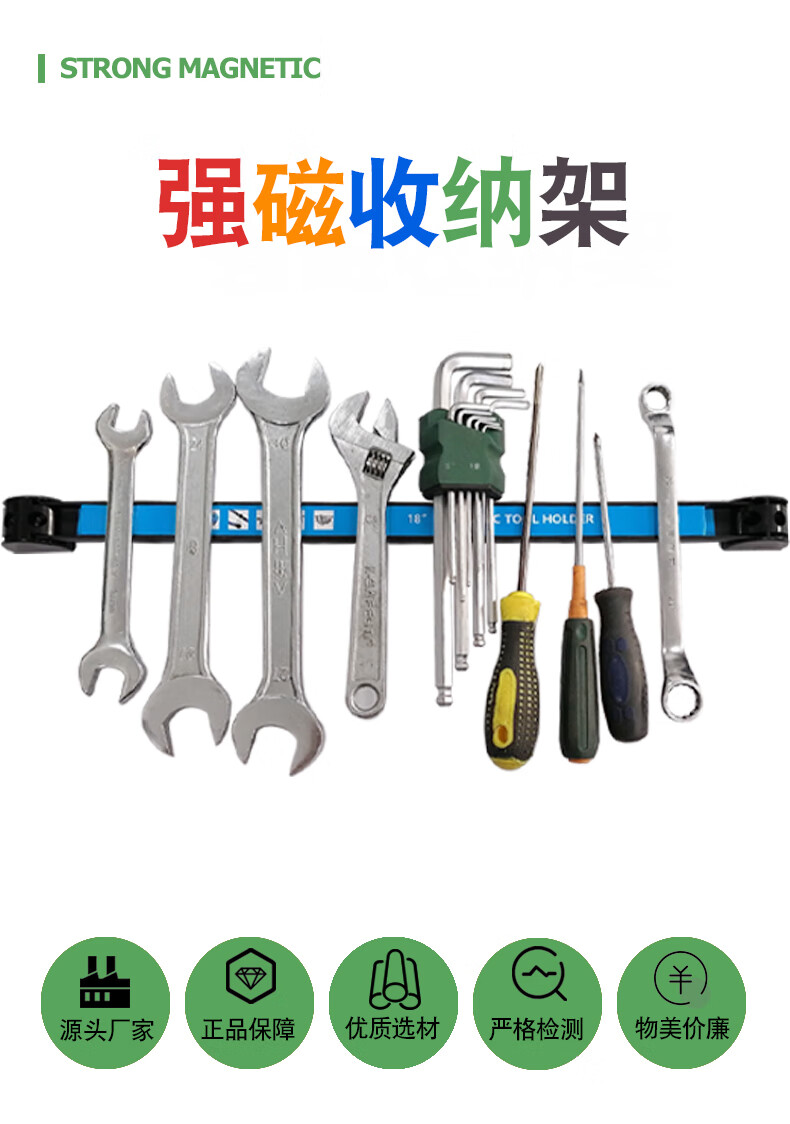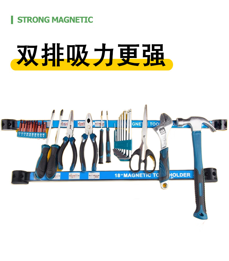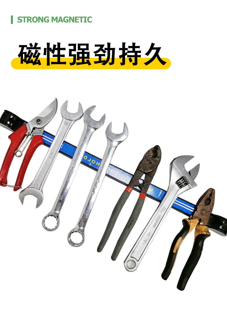 埃赛勒 强磁工具收纳架 磁铁固定器 长条形强磁收纳条 吸铁工具磁条五金工具厨具汽修扳手整理磁力架 单排使用:8英寸(25cm)1条