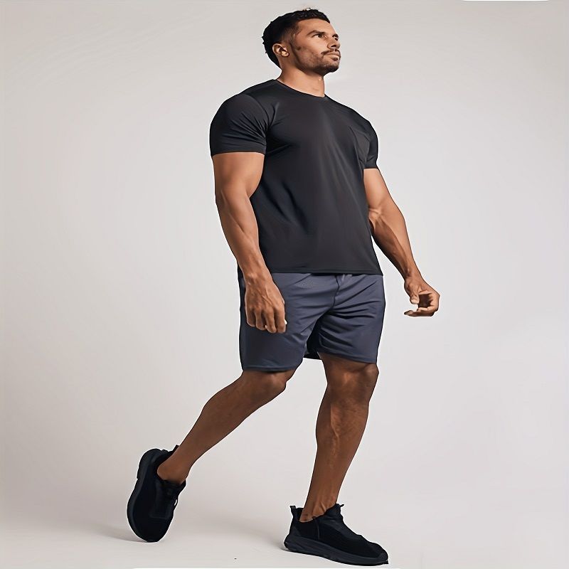 男式干爽短袖圆领运动T恤男友风格男士超薄速干运动短袖T透气上衣