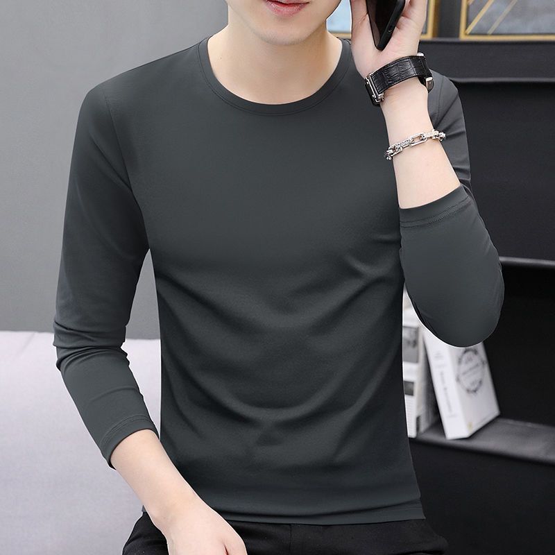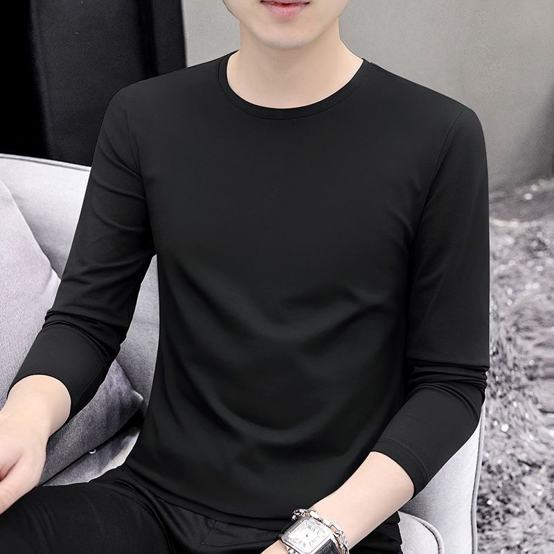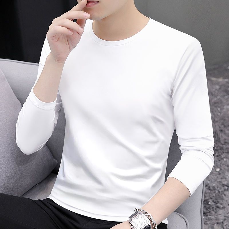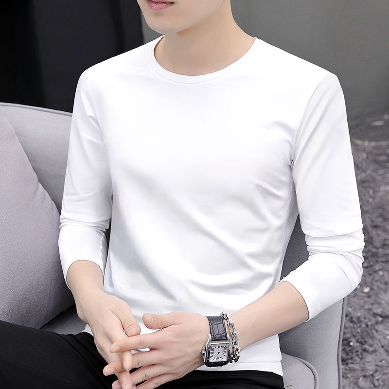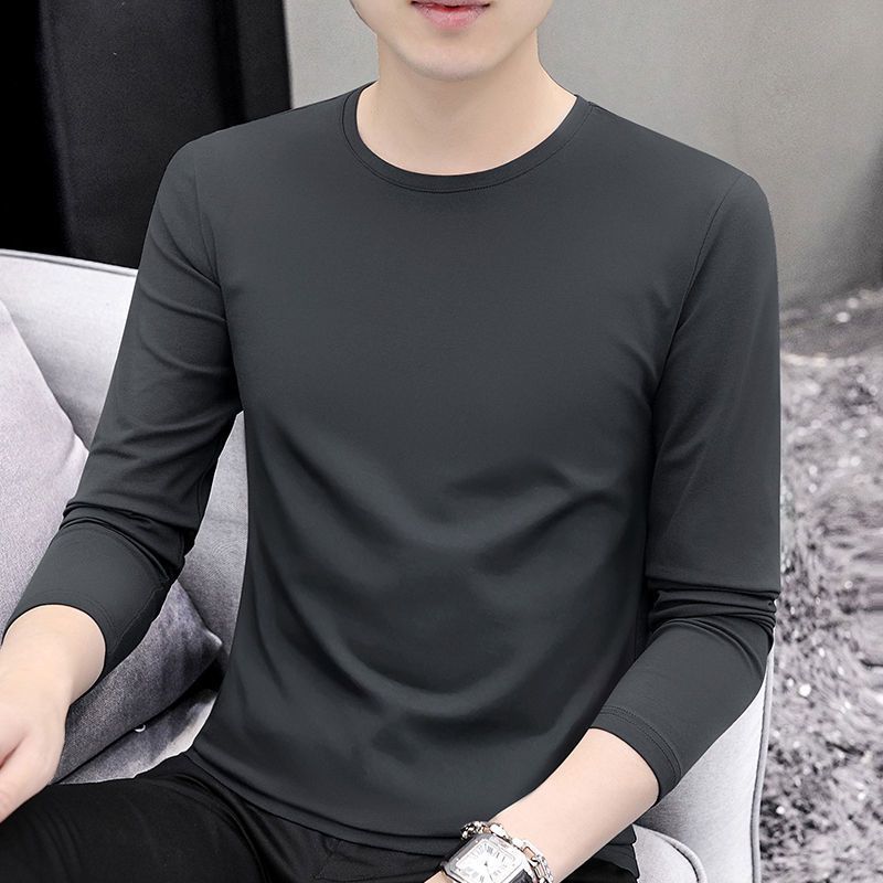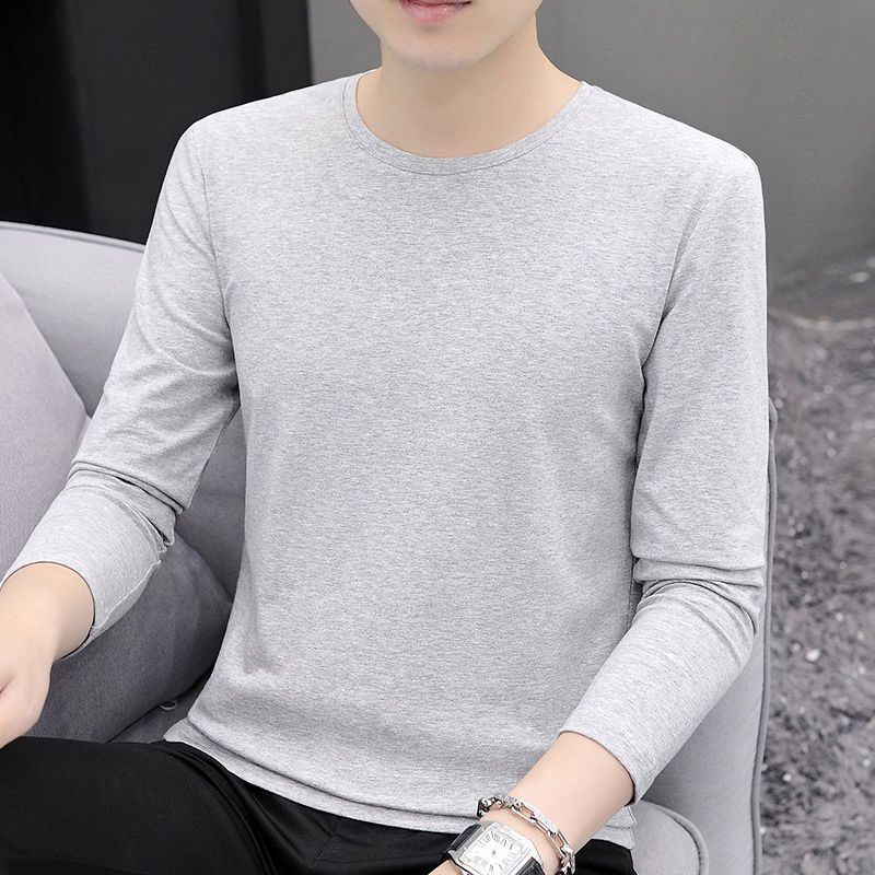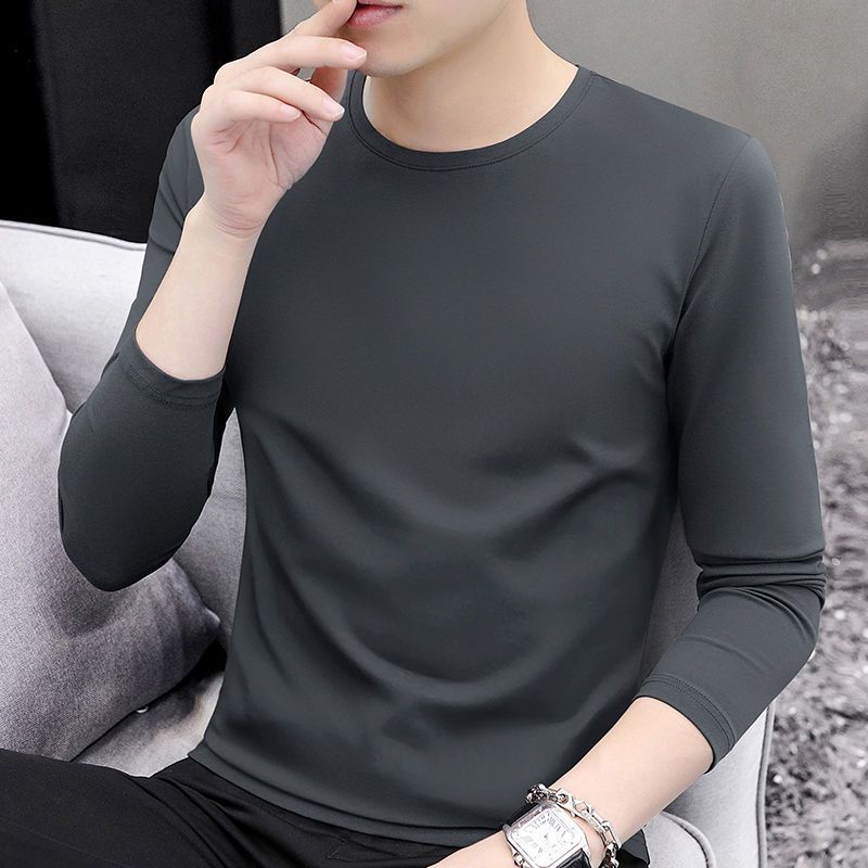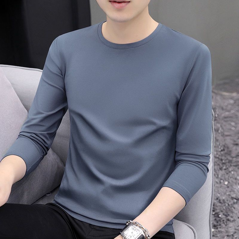 2024早秋新款长袖t恤男潮流内搭打底衫圆领纯色百搭体恤衫秋衣男
