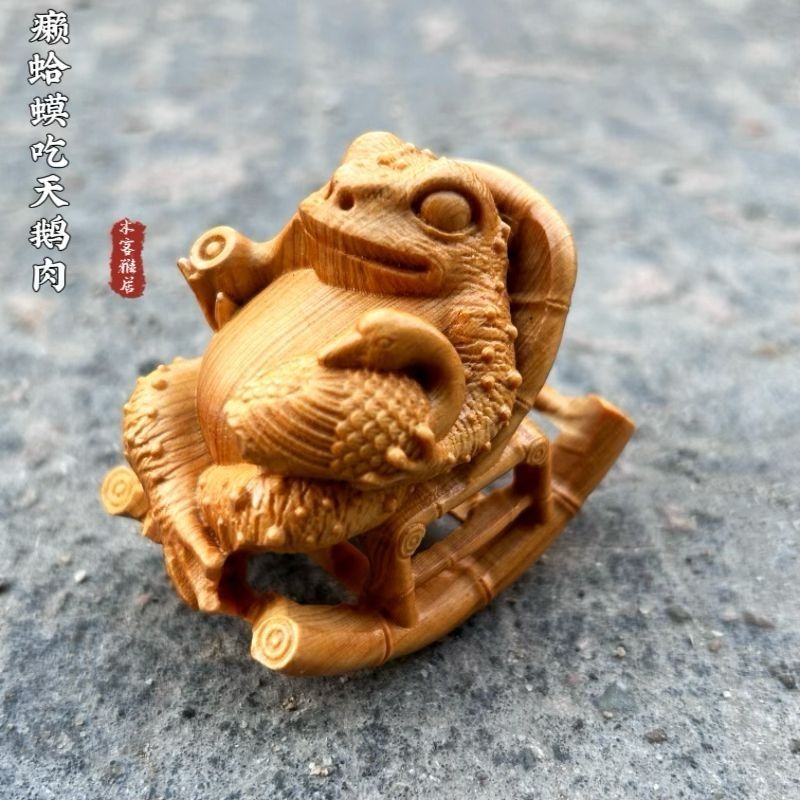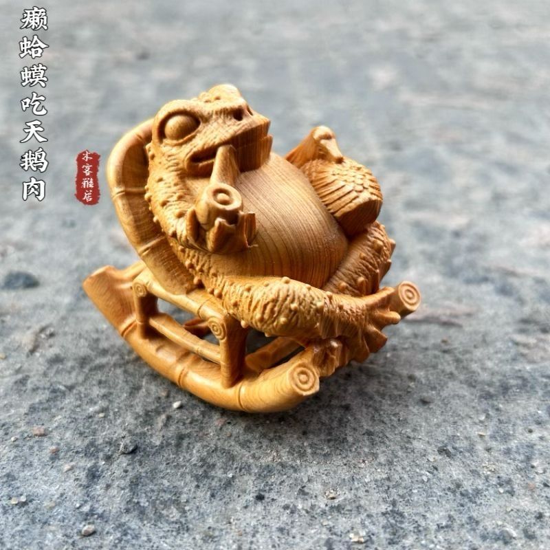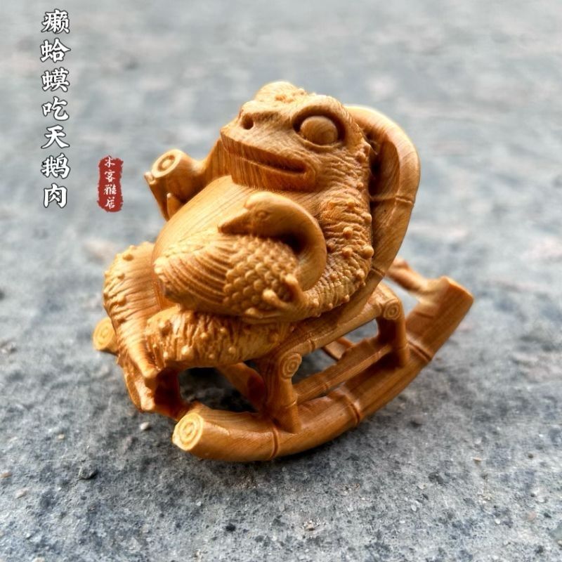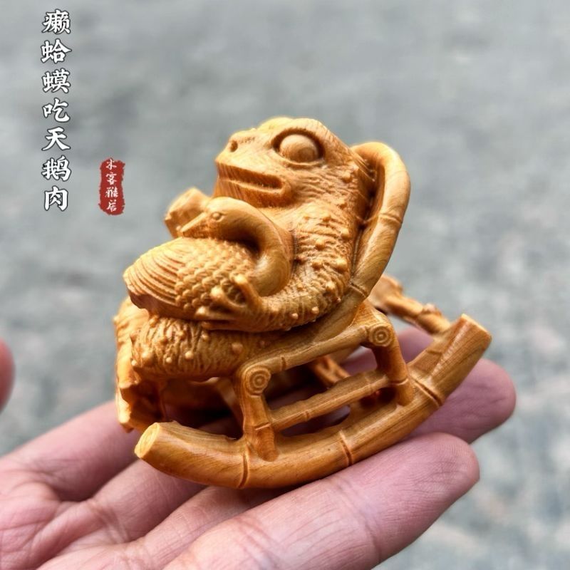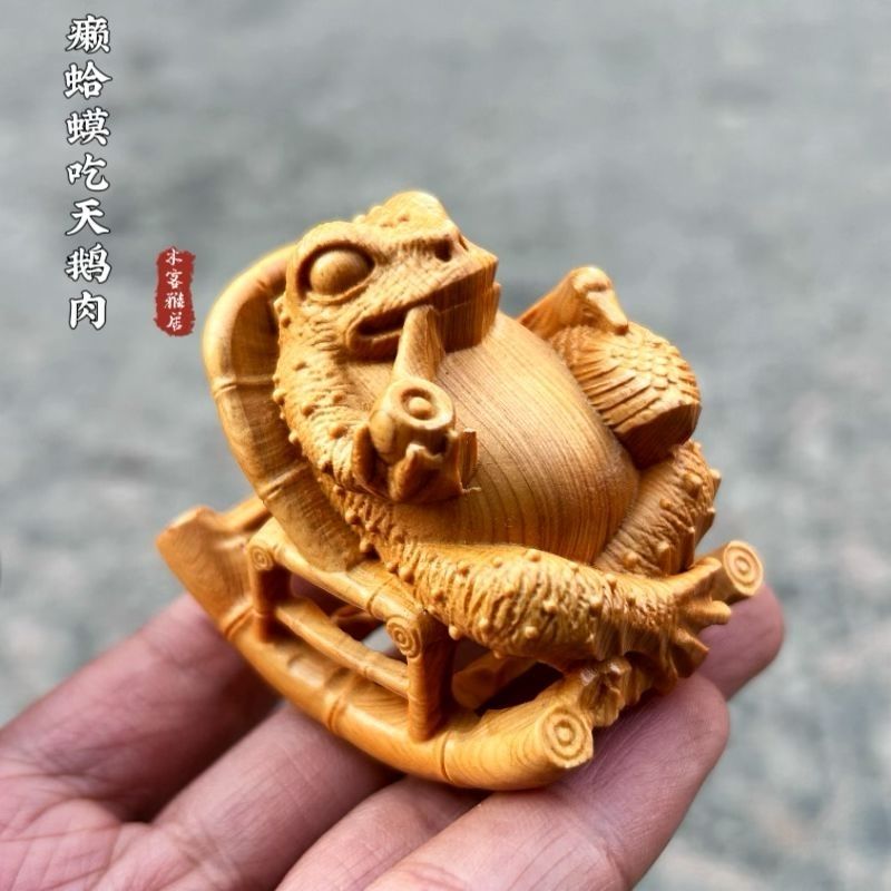 崖柏木人生赢家蟾蜍实木雕刻招财随身文玩悠然自在摆件手把件古风