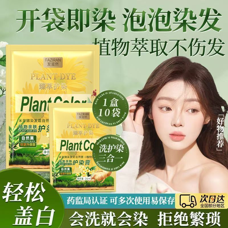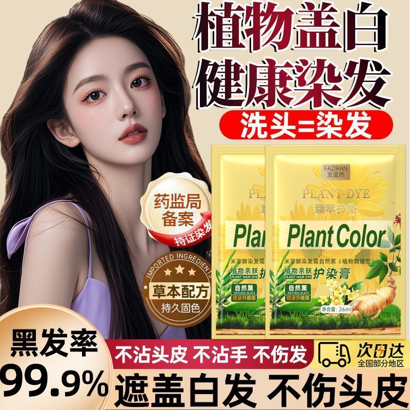 发滋然植萃护染膏臻萃护染植物亲肤染发膏染发剂染头发染膏盖白发