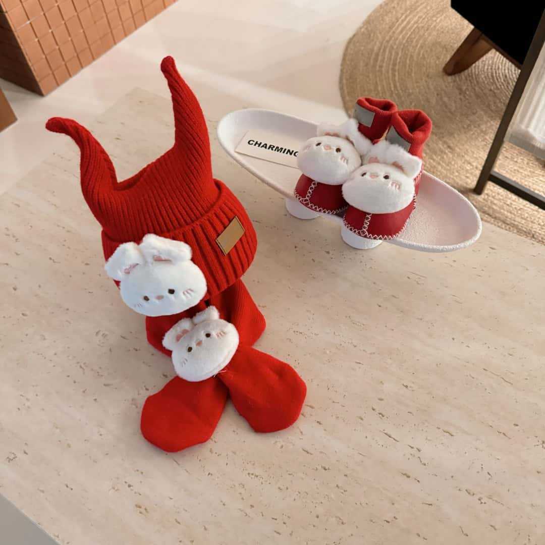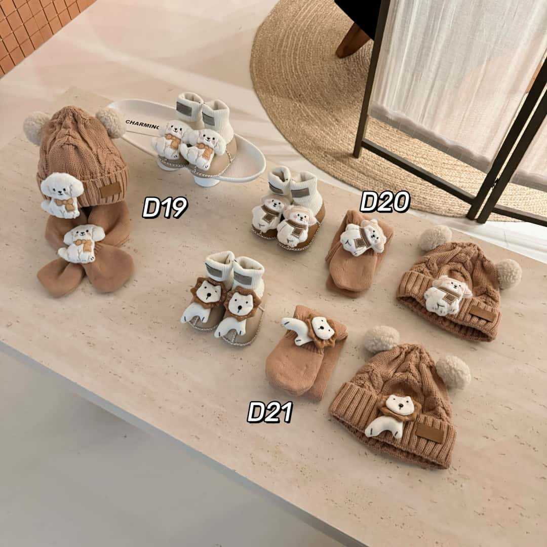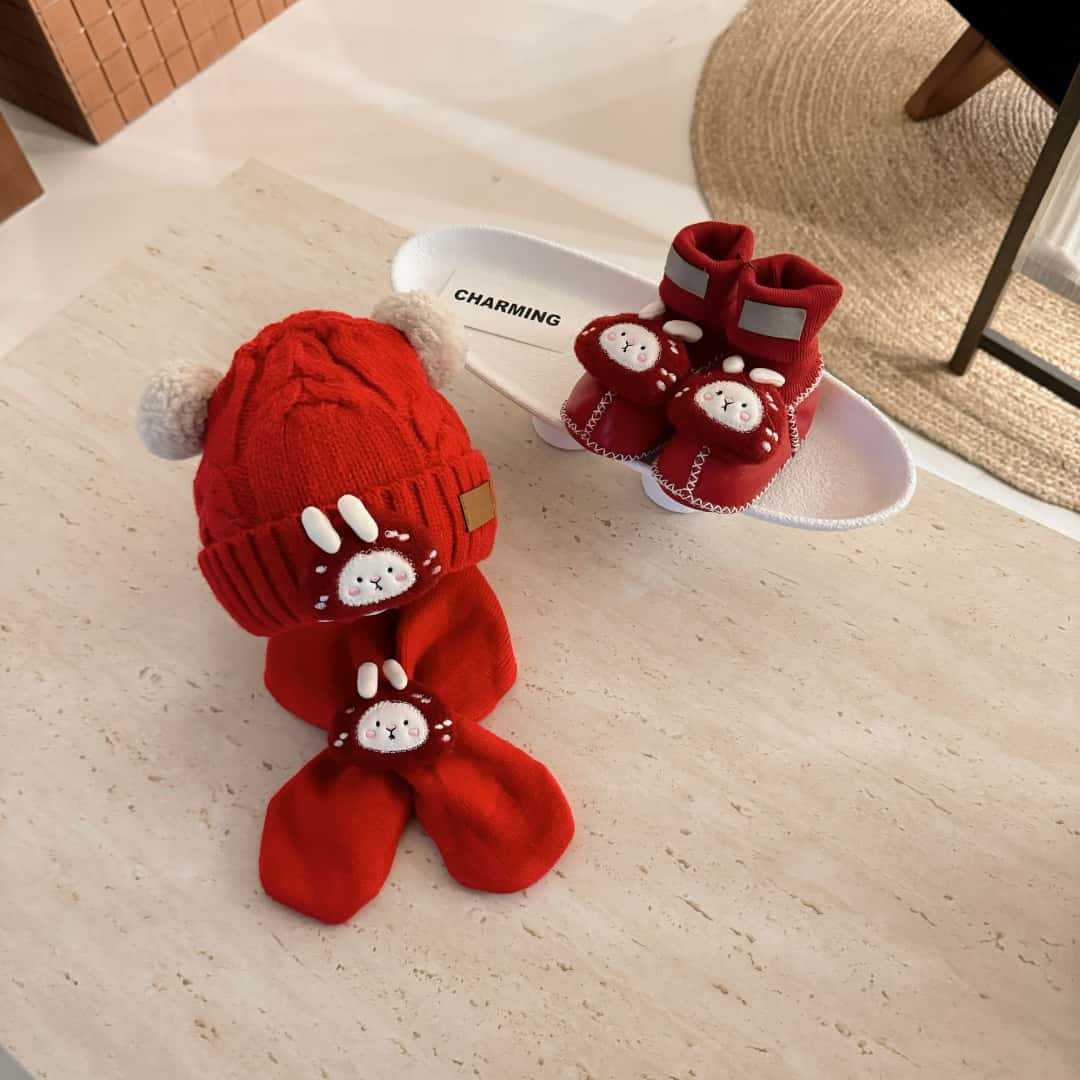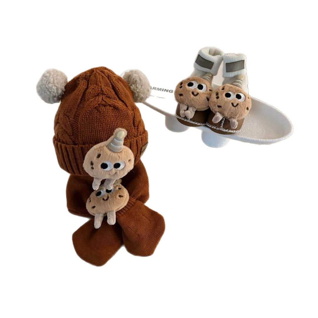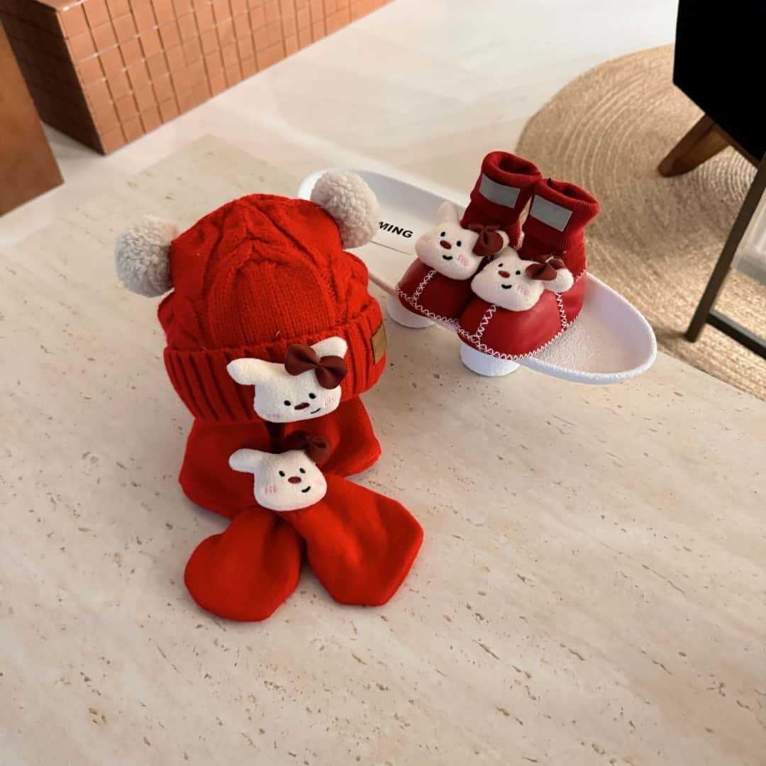 桑坡新款秋冬宝宝三件套D系列5男女童帽子围巾皮毛一体婴儿套装