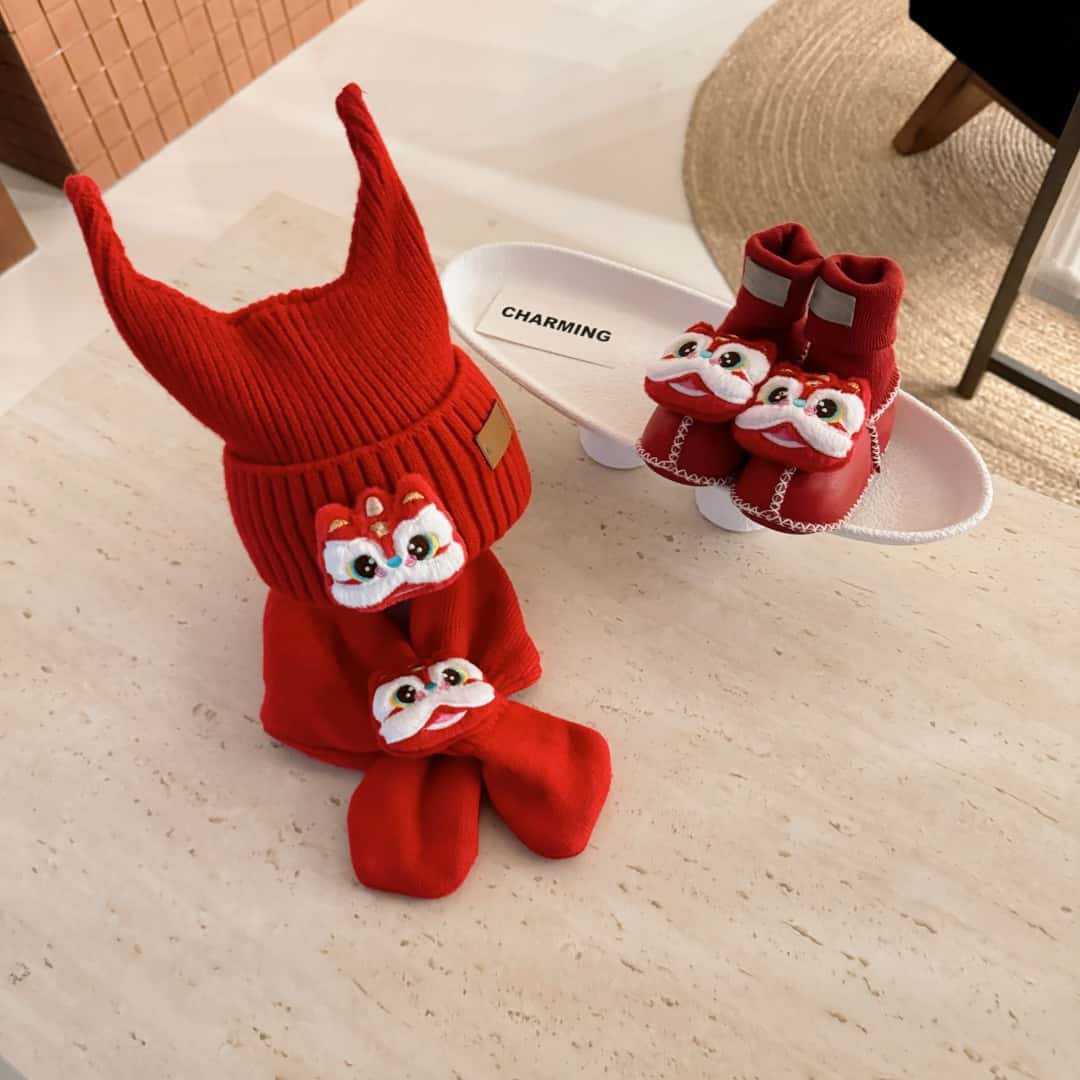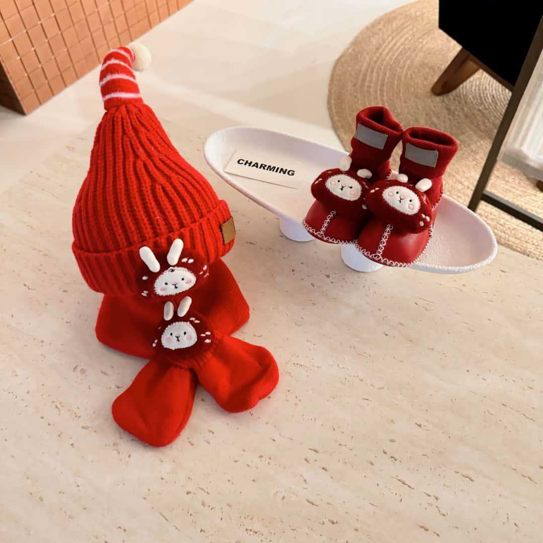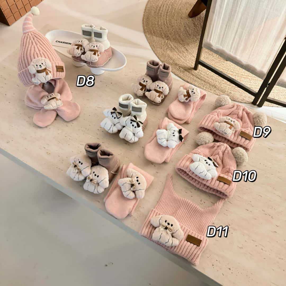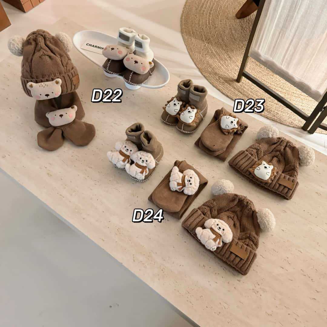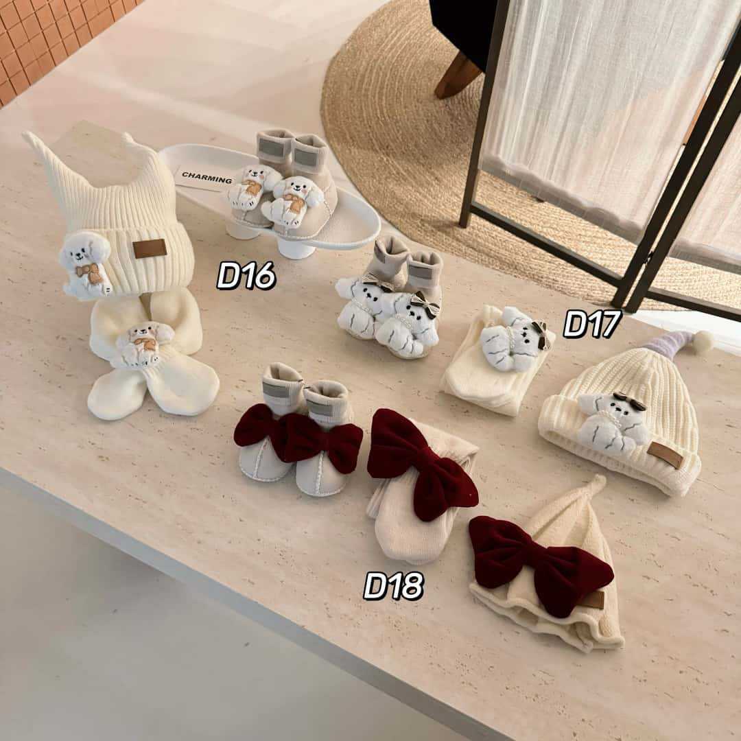 桑坡新款秋冬宝宝三件套D系列5男女童帽子围巾皮毛一体婴儿套装