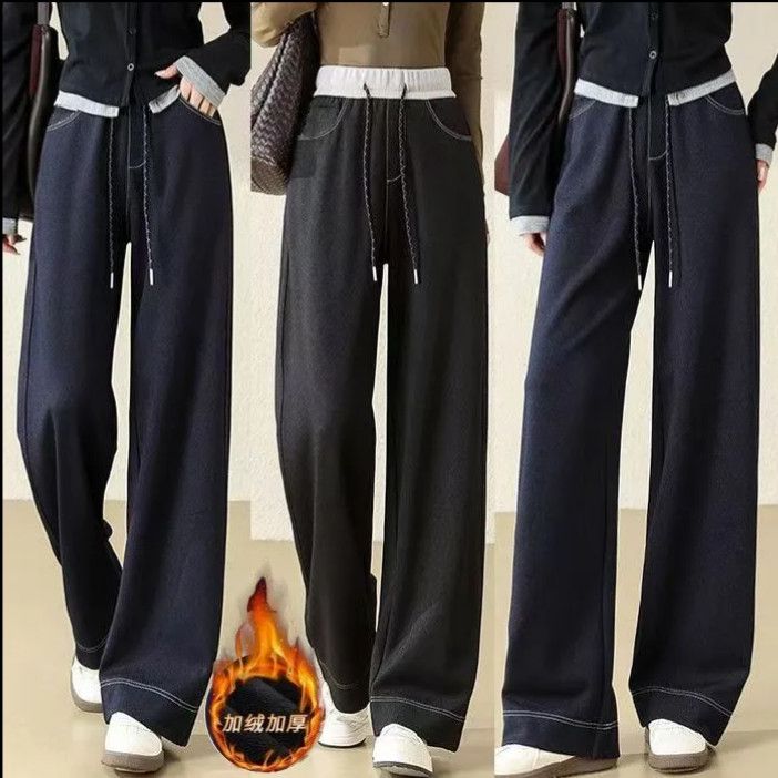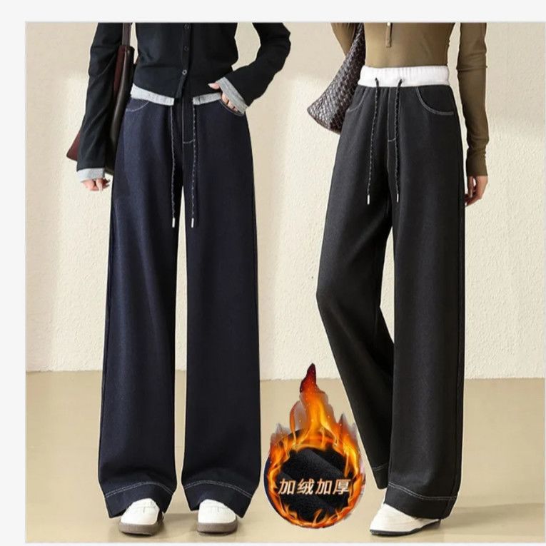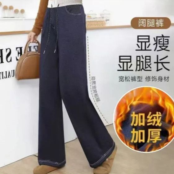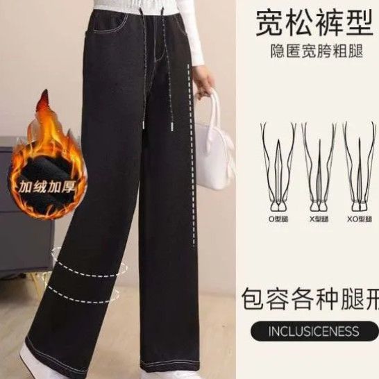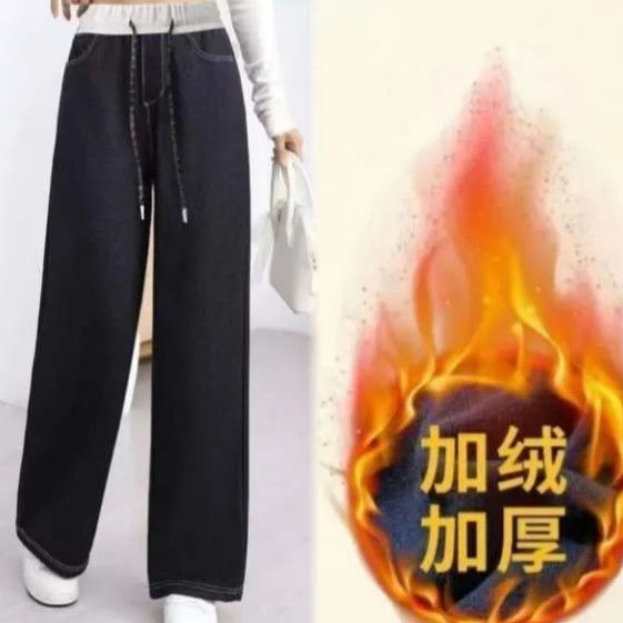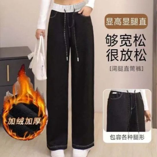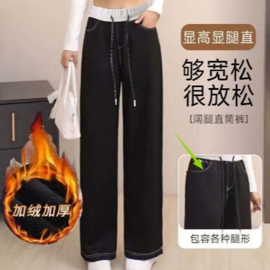 冬季时尚布料2025仿牛仔裤加绒筒裤显瘦宽松新款高腰休闲裤外穿女【3天内发货】