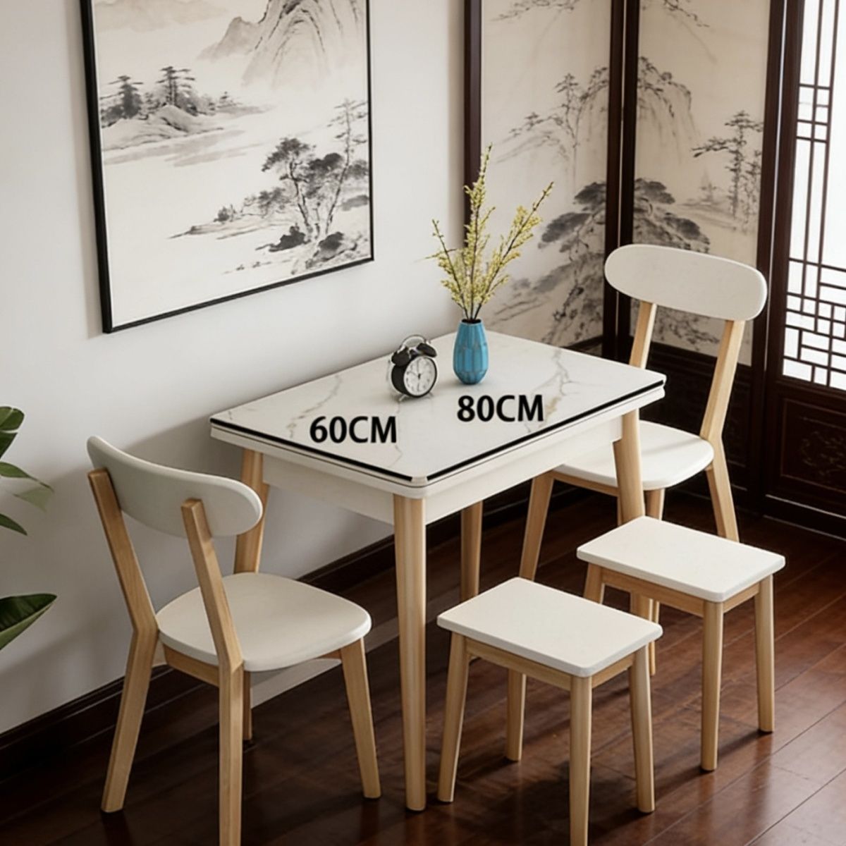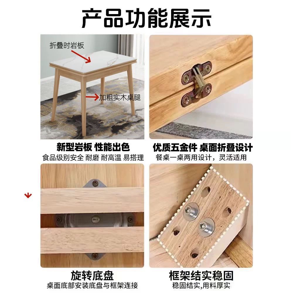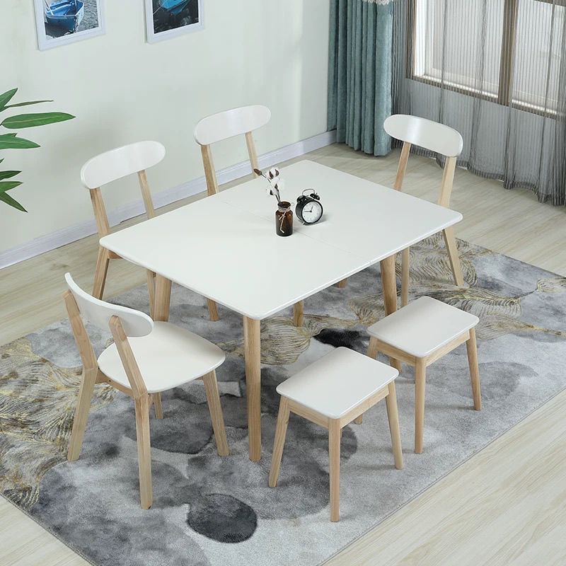 折叠餐桌小户型家用现代简约可伸缩长方形北欧实木餐桌椅组合桌子