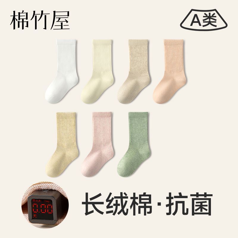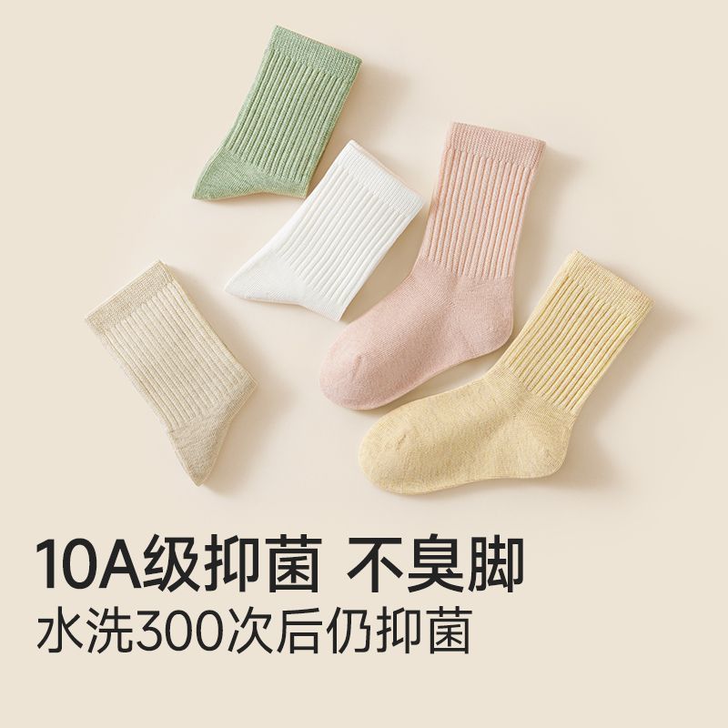 儿童袜子女童棉a类10A抗菌秋冬季防臭吸汗男童大童学生中筒棉袜