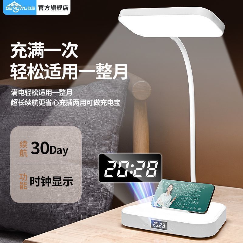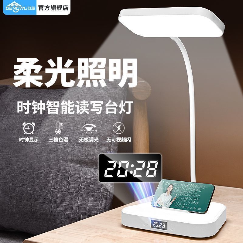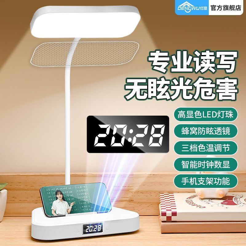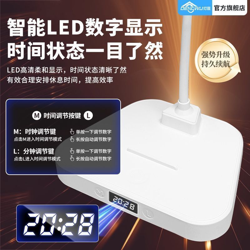 灯屋智能时钟功能护眼学习大学生LED台灯大学生宿舍床头阅读台灯