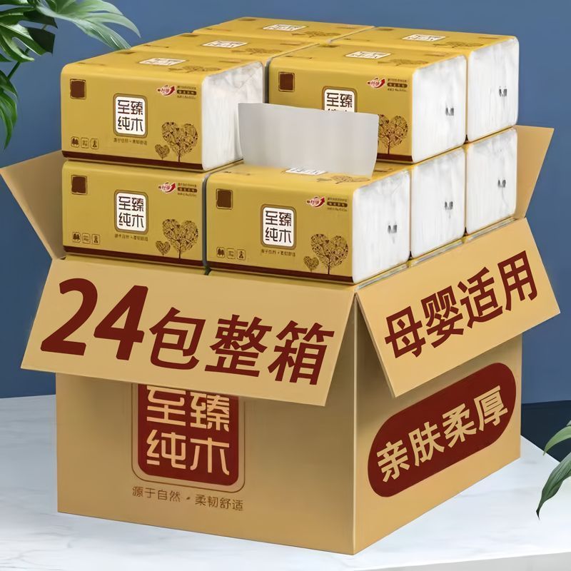 整箱金装实惠原木纸巾家用批发餐巾纸面巾纸抽纸卫生纸【12月31日发完】